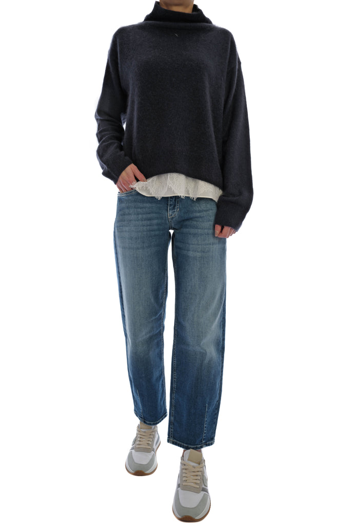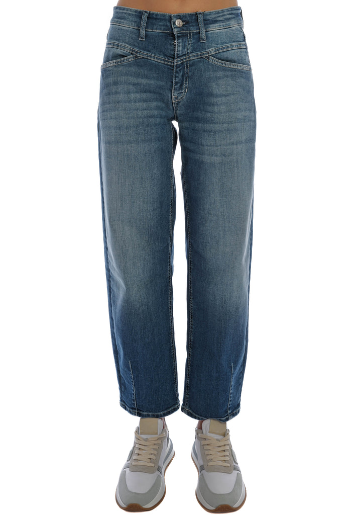 Die O-Shape Jeans ELIN überzeugt mit stilvollem Design und höchstem Tragekomfort – der graue Denim mit dunkler Waschung betont die Figur auf elegante Weise. Durch die sanfte Rundung, die verkürzte Passform und den elastischen Stretchanteil bietet sie eine moderne Silhouette und außergewöhnliche Bequemlichkeit.