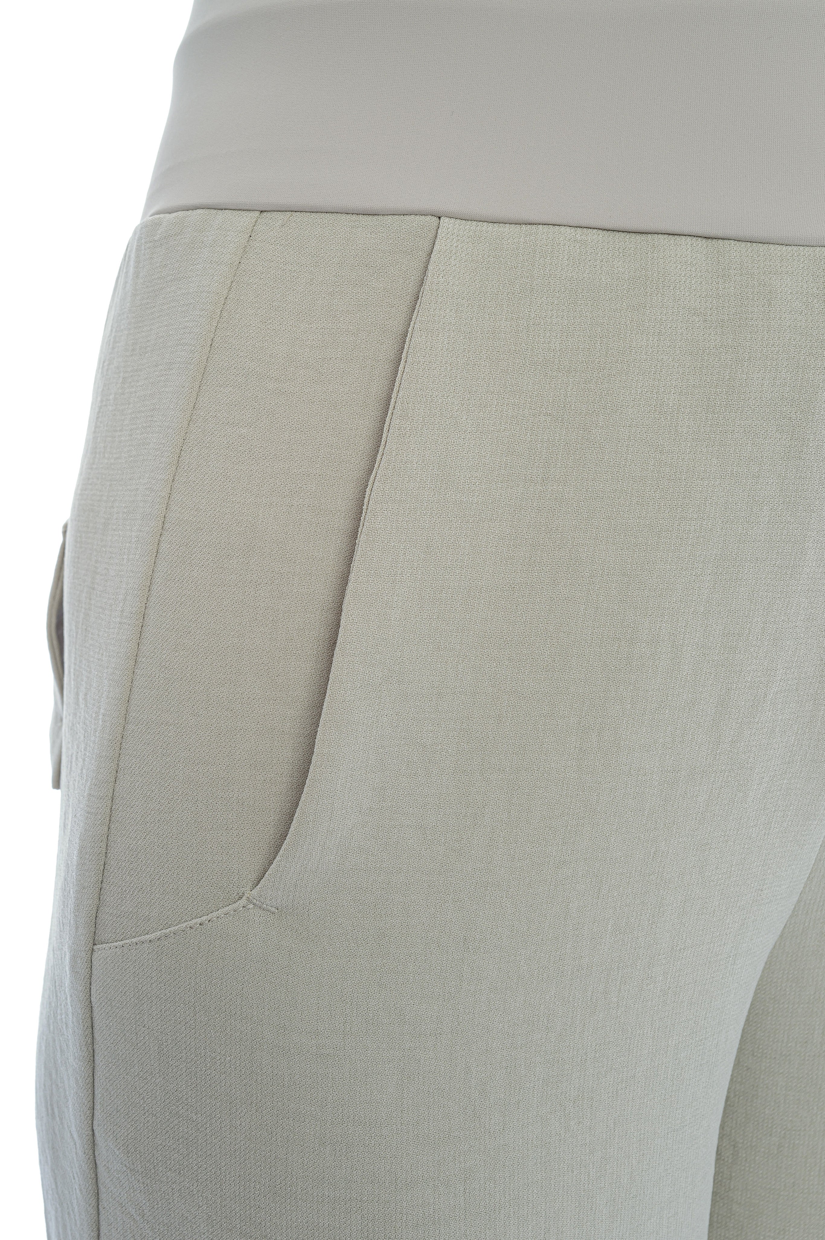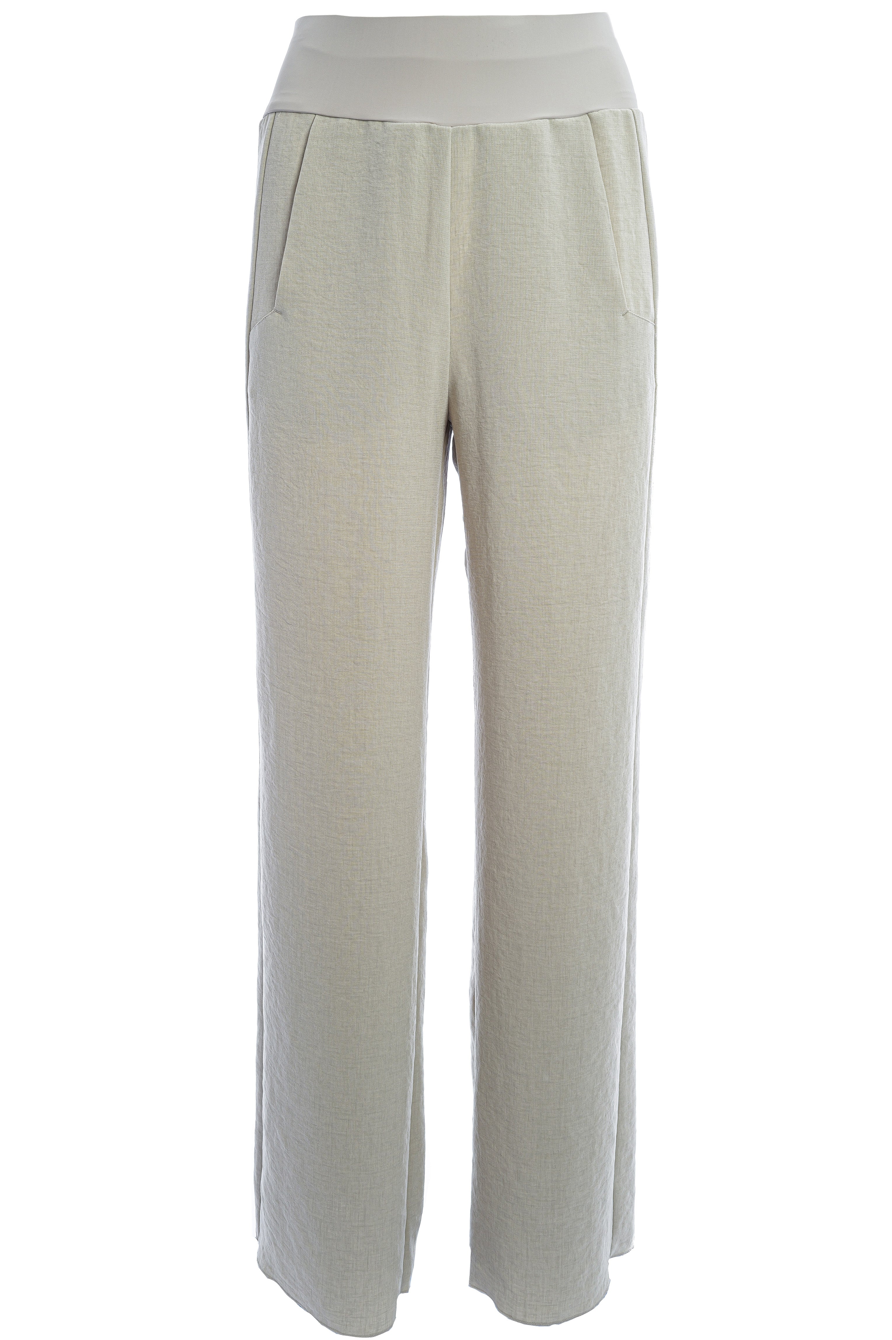 Diese Stoffhose besticht durch einen breiten Gummibund und lange, gerade geschnittene Beine, die eine moderne Silhouette schaffen. Dank des Elasthananteils bietet sie nicht nur eine bequeme Passform, sondern auch maximale Bewegungsfreiheit für jeden Tag.