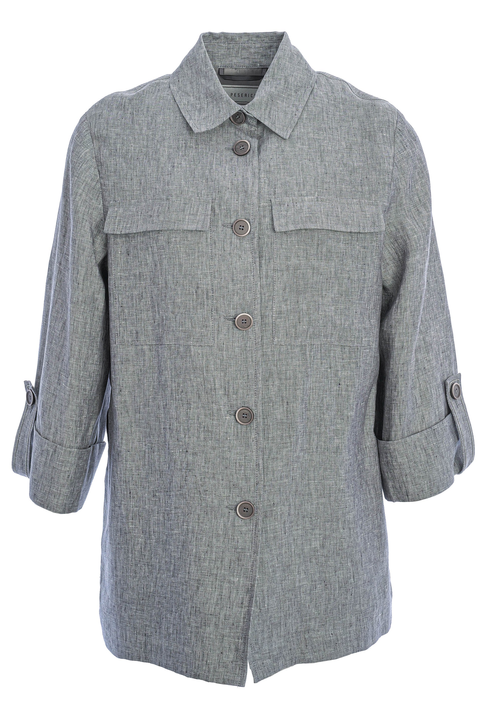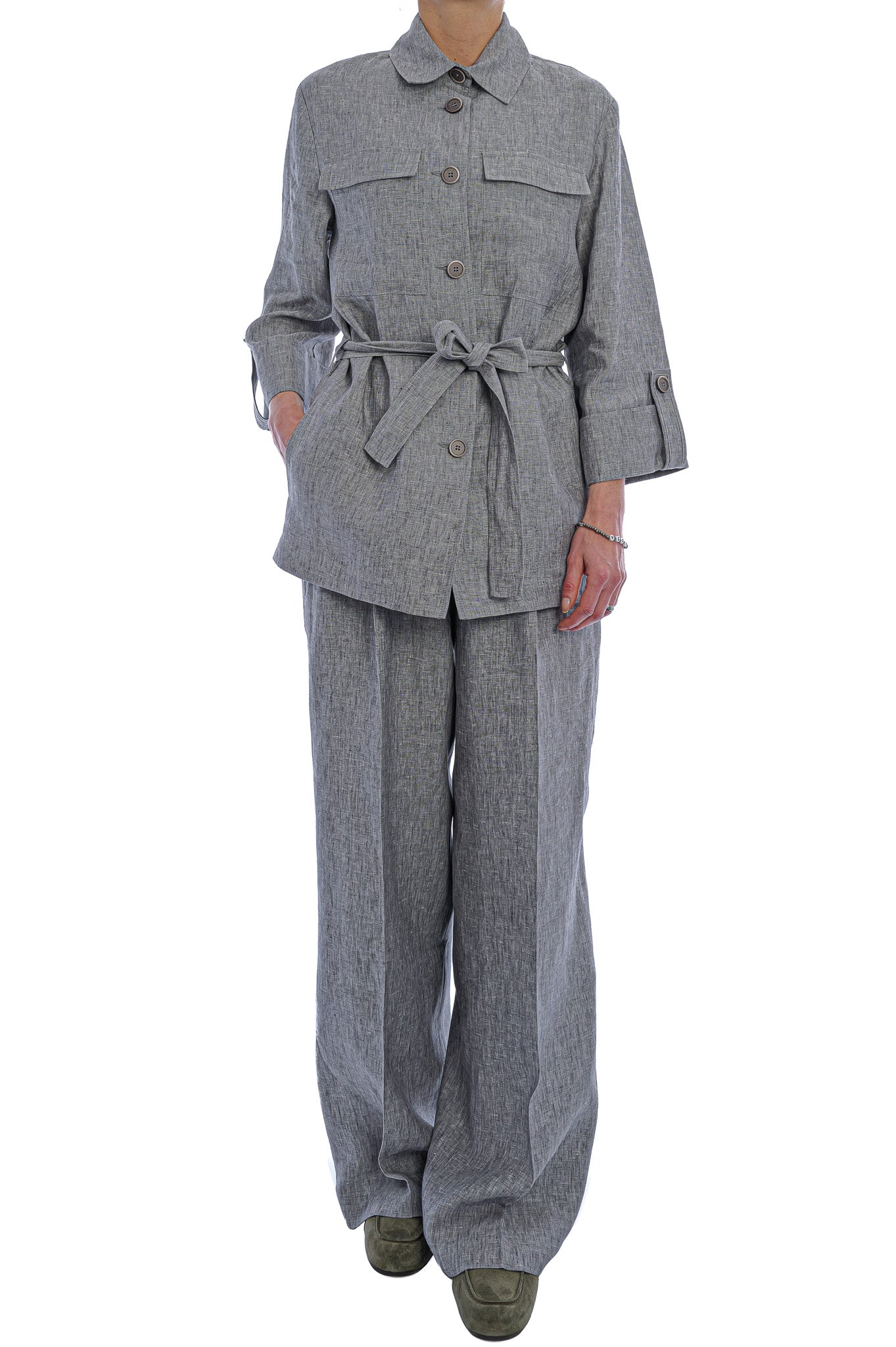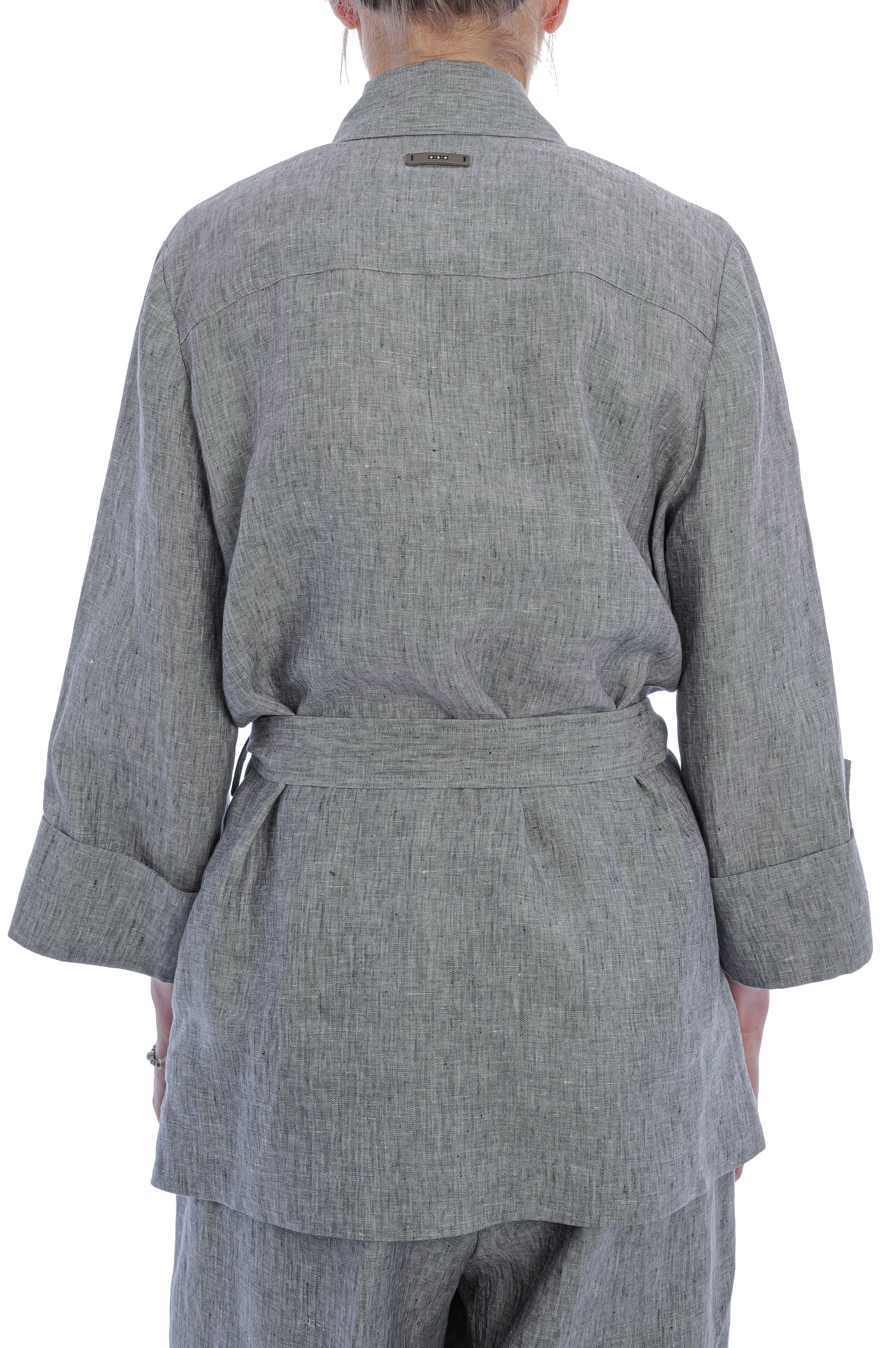 Dieser hochwertige Leinenblazer überzeugt durch seine natürliche, leicht strukturierte Oberfläche und eine elegante, taillierte Silhouette mit Bindegürtel, die die Figur stilvoll betont. Klassische Details wie der Hemdkragen, aufgesetzte Brusttaschen und die edlen Knöpfe verleihen dem Design eine zeitlose Raffinesse und machen ihn zum idealen Begleiter für anspruchsvolle Sommer-Looks.