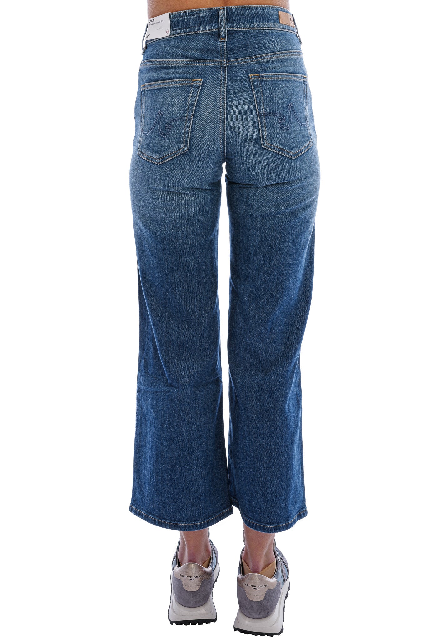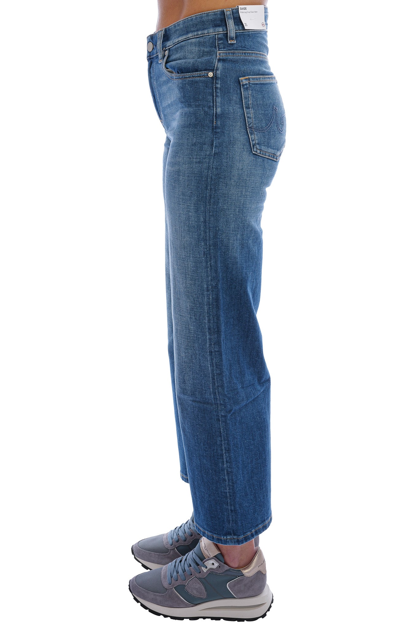 Die Saige Wide Leg Crop Jeans besticht durch ihren mittelhohen Sitz, weite, gekürzte Beine und saubere Abschlüsse für einen modernen Look. Aus 11,75 oz Vintage Comfort Stretch Denim gefertigt, bietet sie hohen Tragekomfort bei zeitloser Eleganz. Klassische Five-Pocket-Details und hochwertige Verarbeitung machen sie zum vielseitigen Begleiter für jeden Tag, hier in einem dunklen Waschton mit dezentem Wiskering.