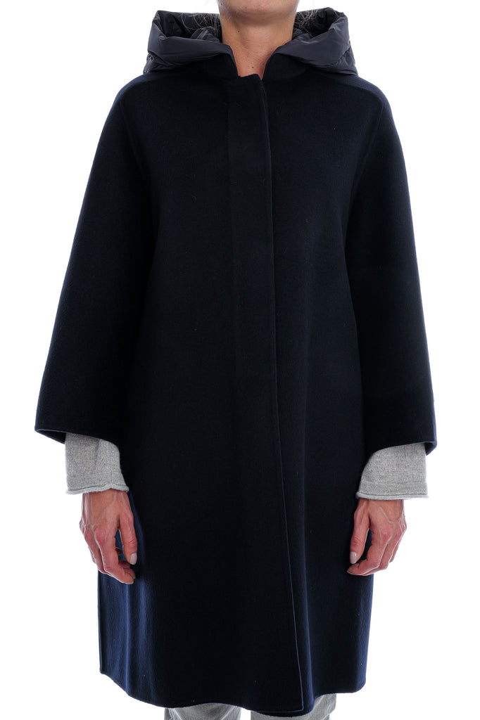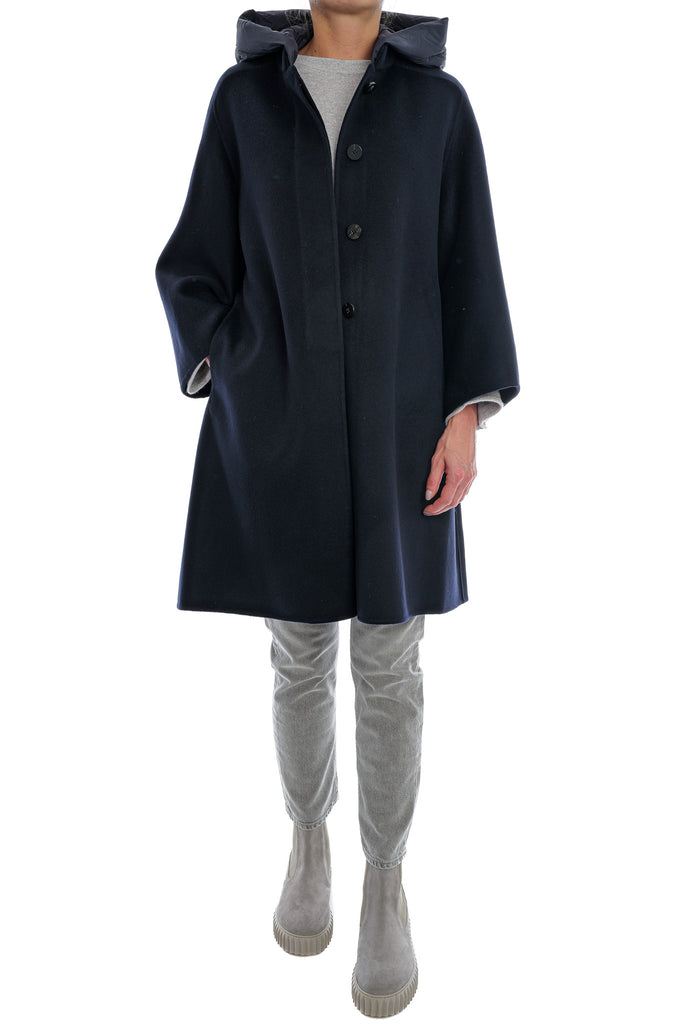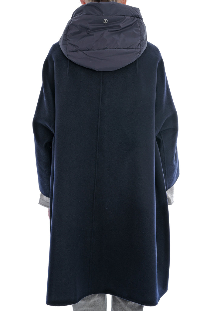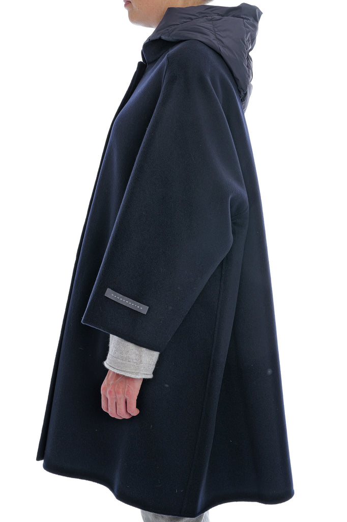 Dieser egg-förmige Oversize-Mantel aus DUNO’s „ATTIC“ Projekt besticht durch Kimonoärmel, handwerkliche Verarbeitung in Woll-Cashmere-Doppellage und komplett ungefüttertes Design. Ein Stehkragen, verdeckte Knopfleiste, seitliche Taschen und abnehmbare Daunen-Kapuze aus ultraleichtem Technostoff verleihen dem luxuriösen Mantel Funktionalität und Stil zugleich.
