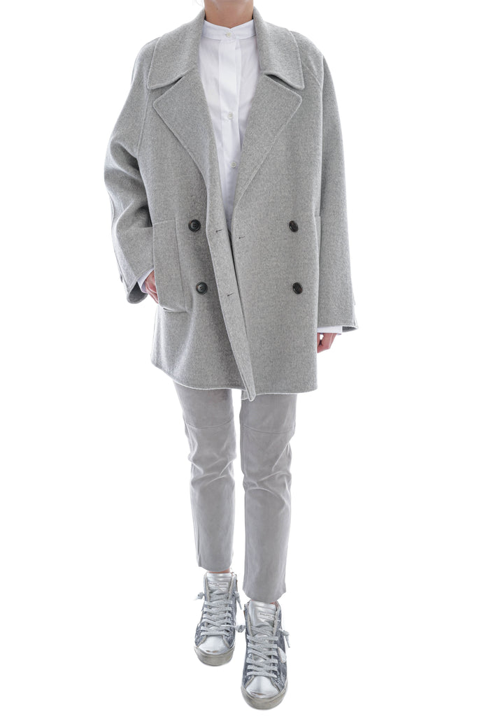 Die Kaila Cabanjacke von Arma in hellem Grau überzeugt durch hochwertige Woll-Qualität, die ein weiches Tragegefühl und ein elegantes Erscheinungsbild garantiert. Das zeitlose Design mit zweireihiger Knopfleiste macht die Jacke zum stilvollen und trendsicheren Favoriten für jeden Tag.