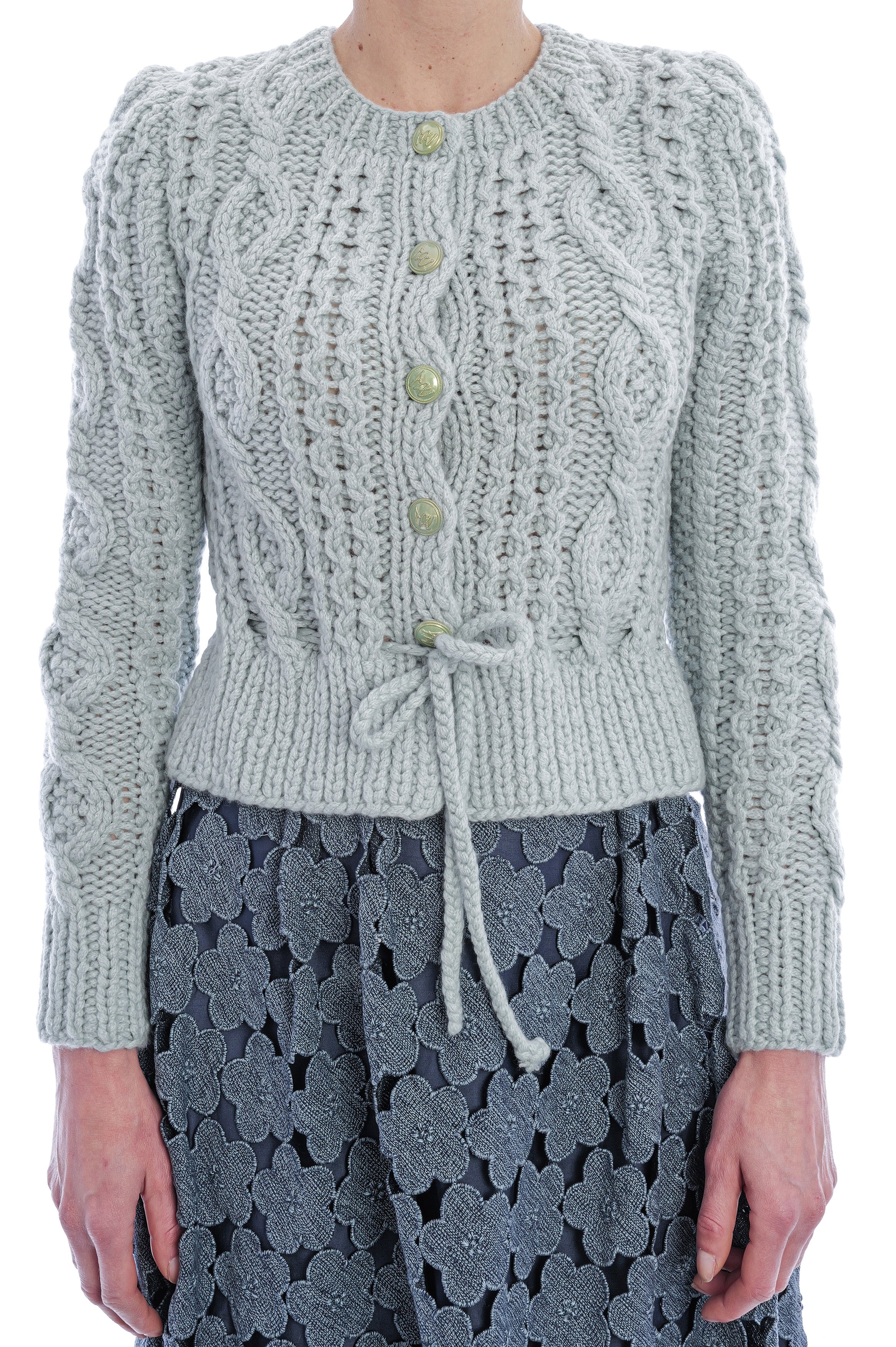 Diese luxuriöse Kaschmirstrickjacke von Antonia Zander begeistert mit einem aufwendig gearbeiteten Zopfmuster, das dem Design eine elegante Struktur und handwerkliche Raffinesse verleiht. Gefertigt aus edlem, besonders weichem Kaschmir, sorgen die klassische Knopfleiste, der runde Ausschnitt und der feine Taillenzug für eine feminine Silhouette und höchsten Tragekomfort.