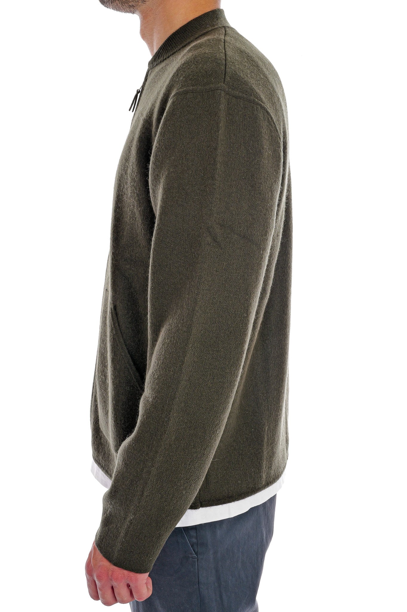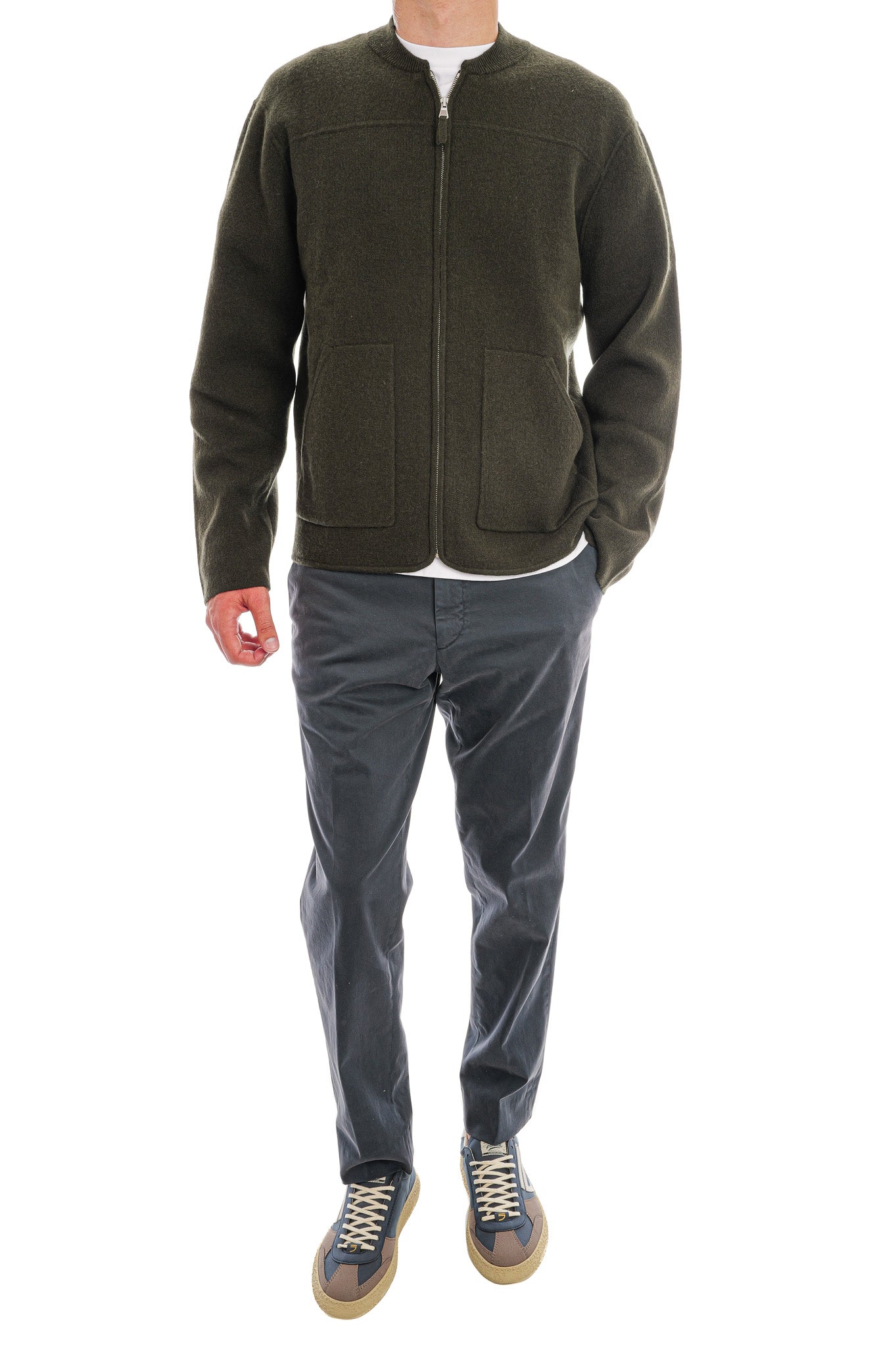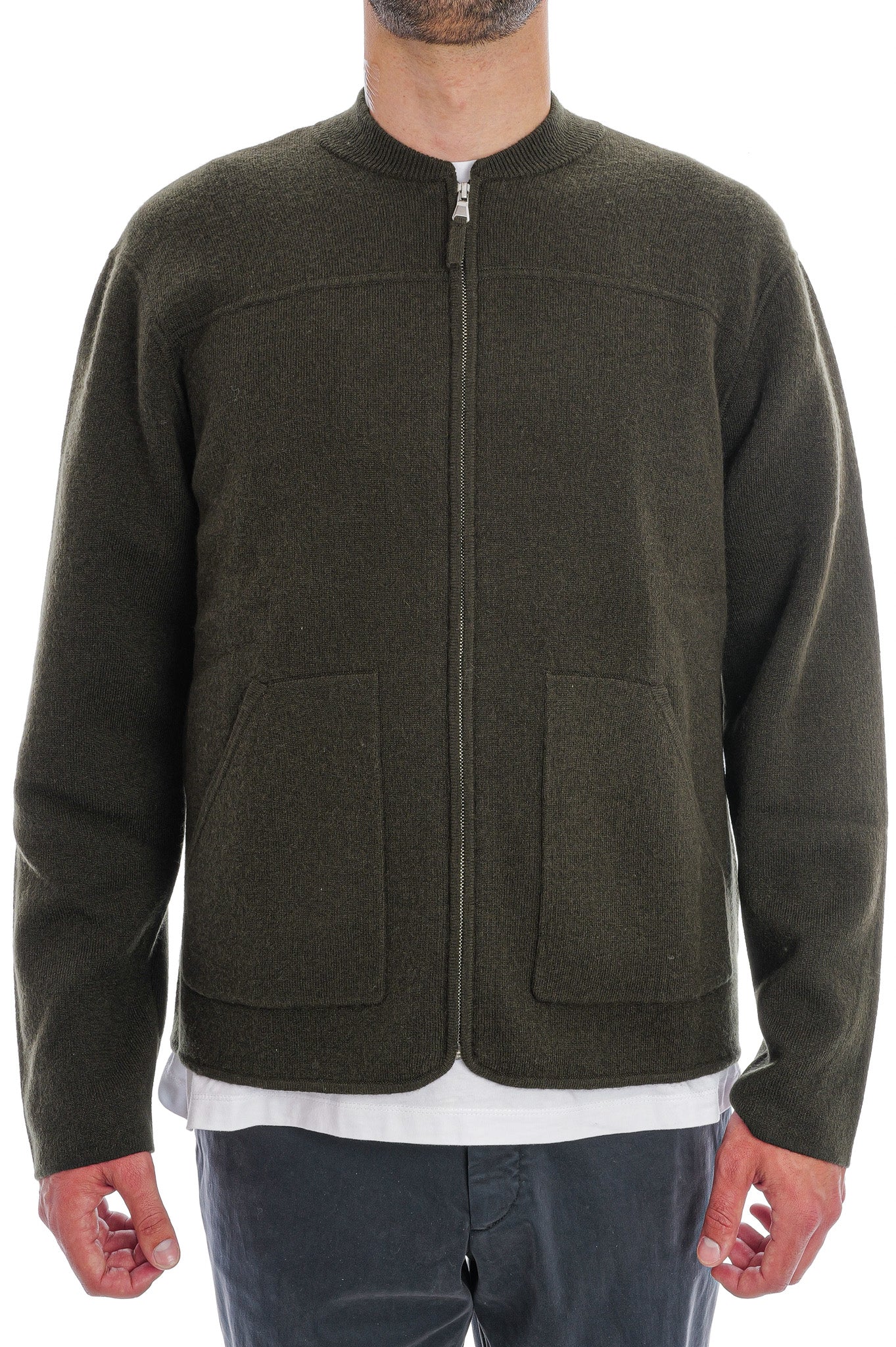 Die Herrenjacke aus einem luxuriösen Mix aus 70 % Wolle und 30 % Cashmere zeigt sich in lockerem Schnitt und mittelschwerem Strick. Ein dezentes Uni-Jacquardmuster unterstreicht die hochwertige Struktur, während der Reißverschluss und aufgesetzte Taschen dem Design eine lässig-elegante Note verleihen.