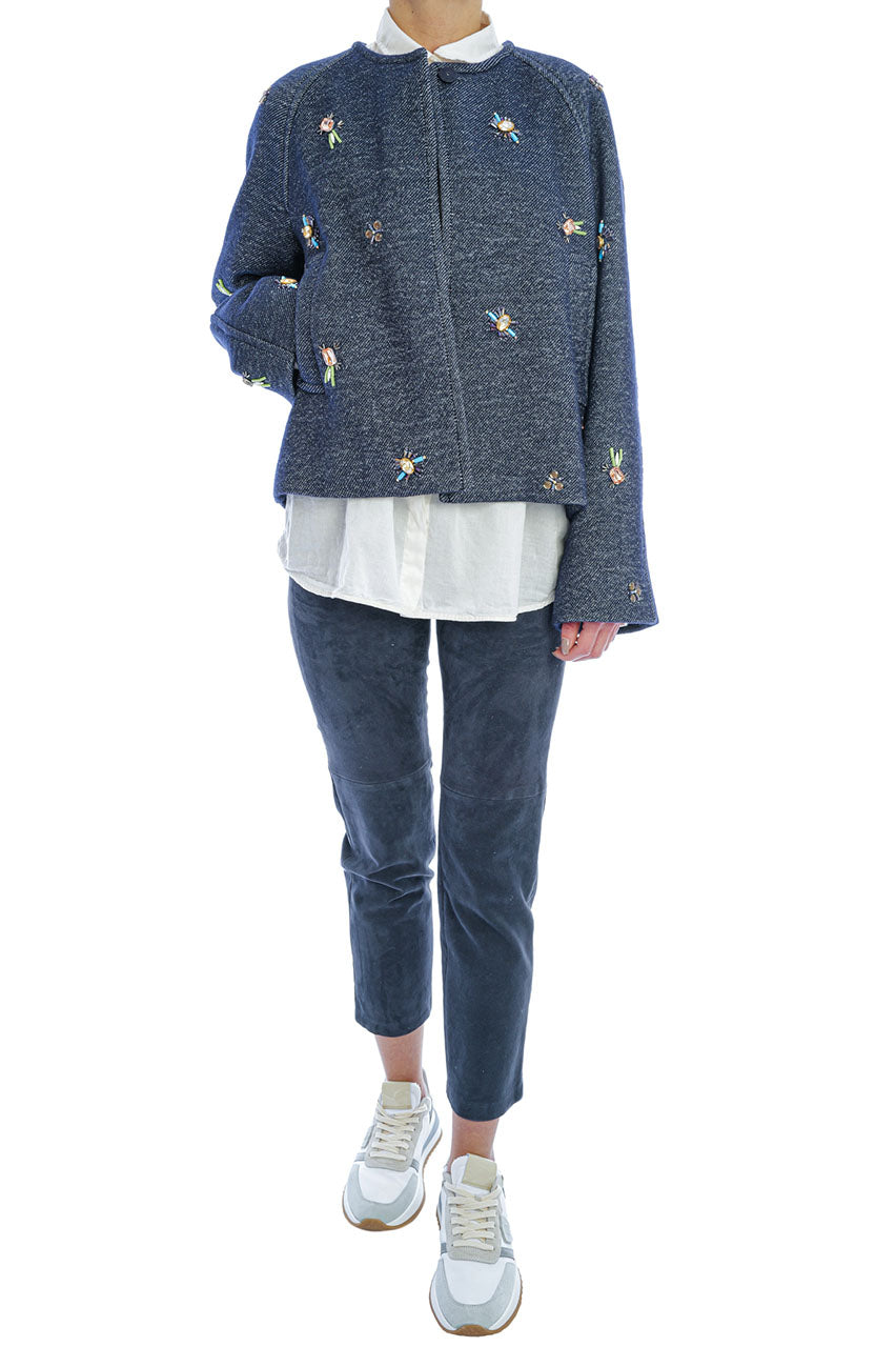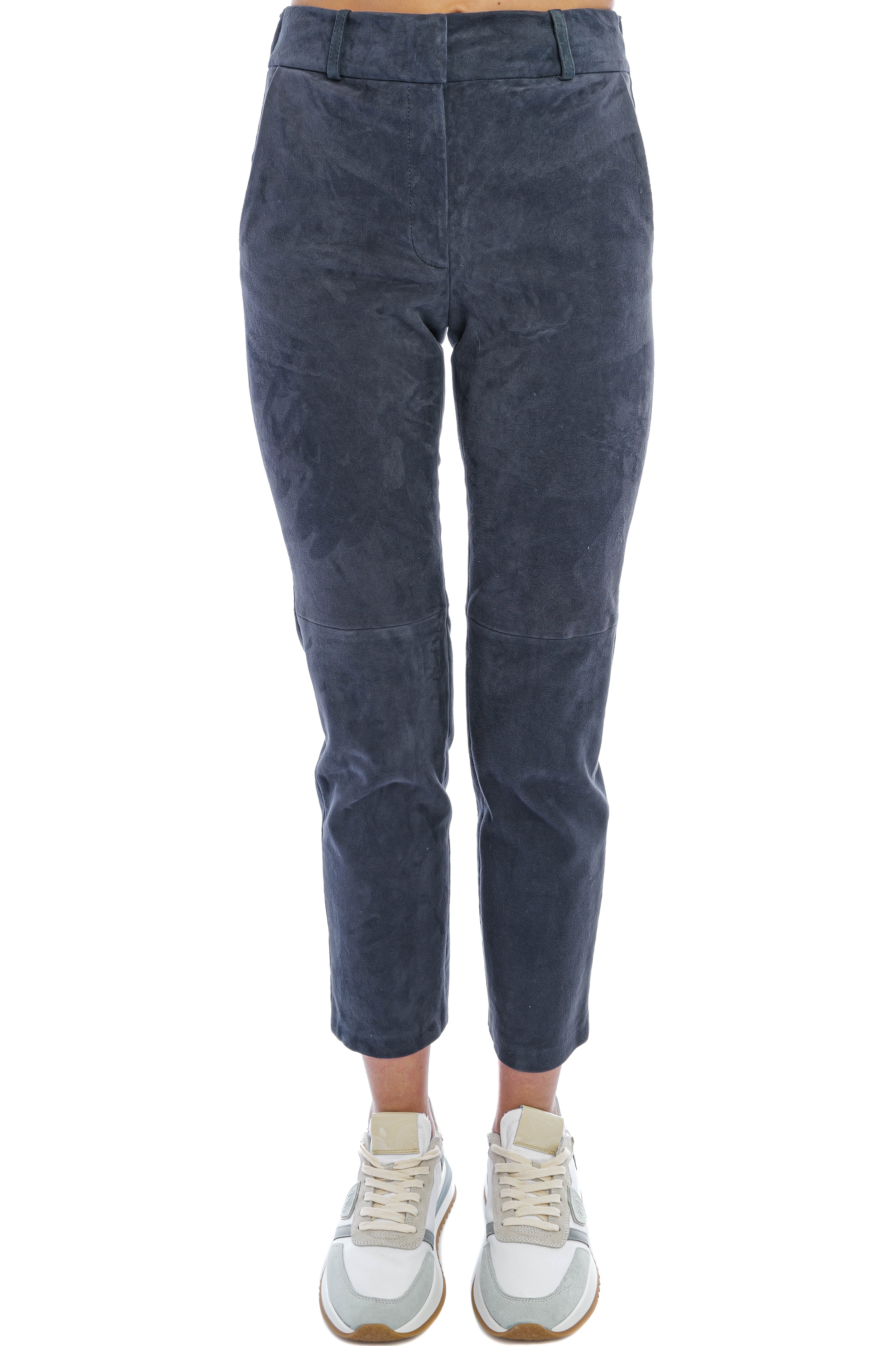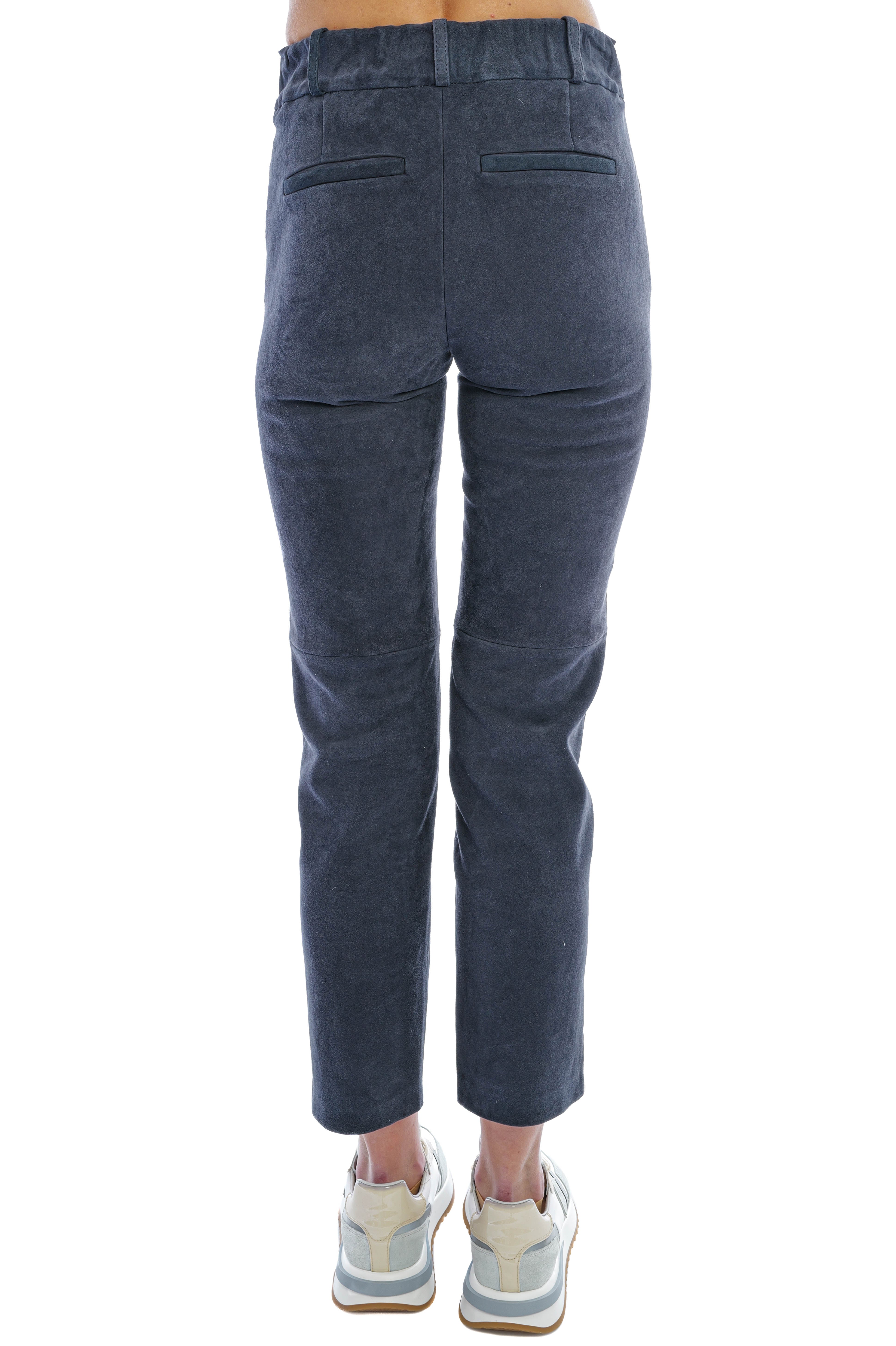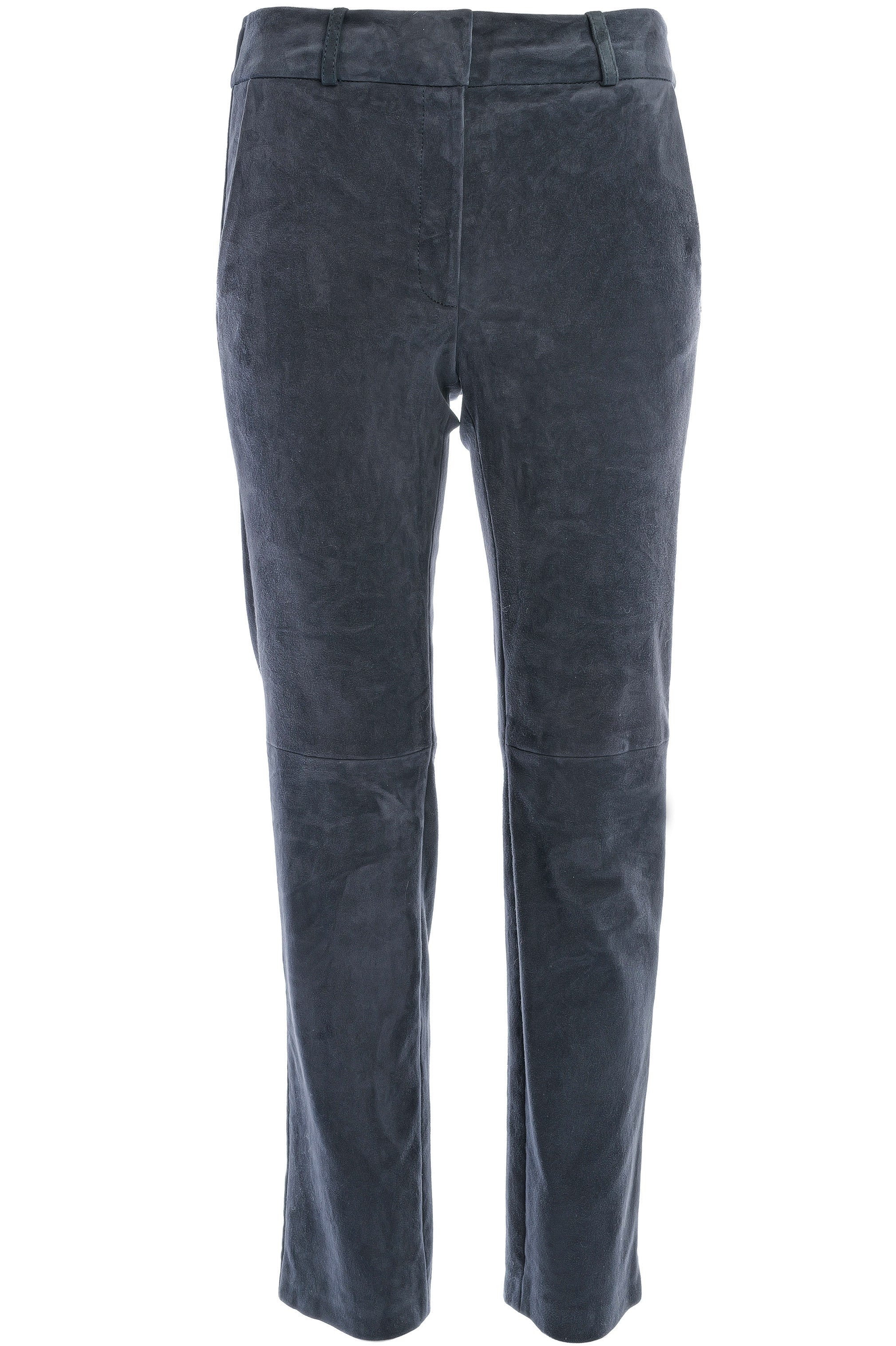 Diese Slim-Fit-Pantalonhose aus Wildleder hat eine normale Taille und ist leicht verkürzt. Die schmal zulaufenden Beine sorgen für eine schlanke Silhouette, während das Stretchmaterial für eine bequeme Passform sorgt.