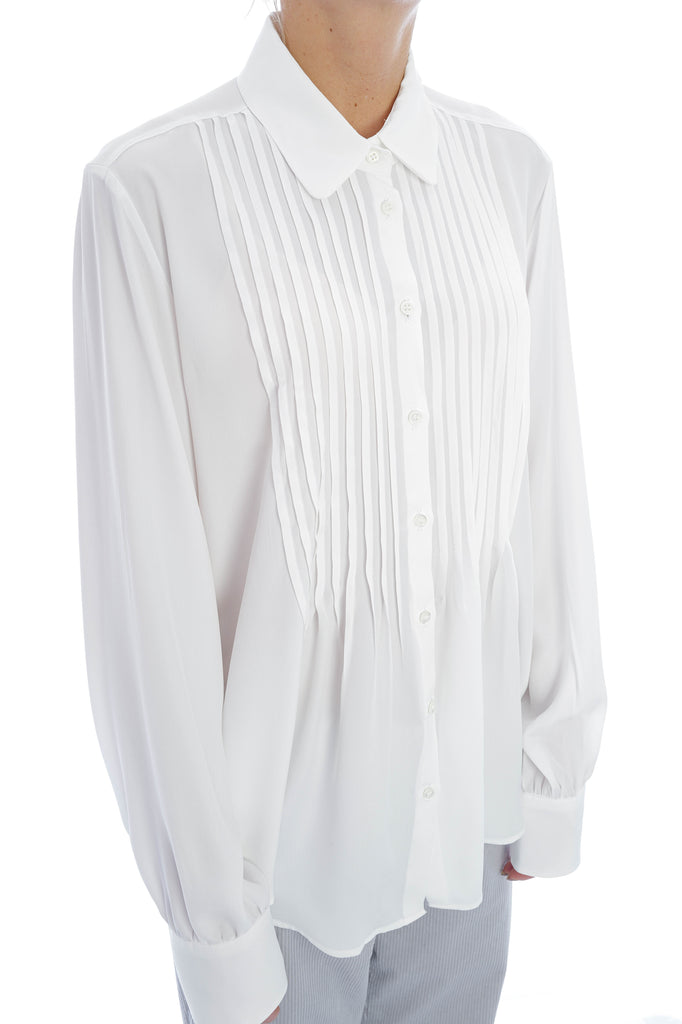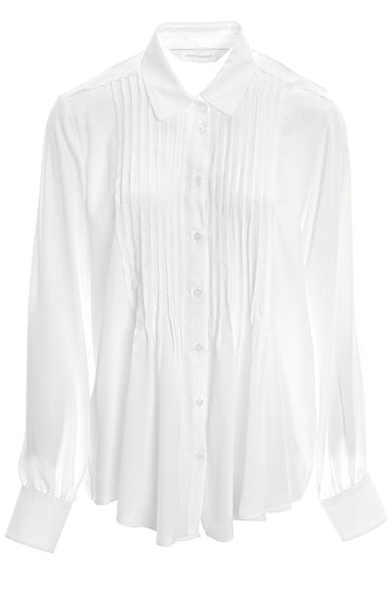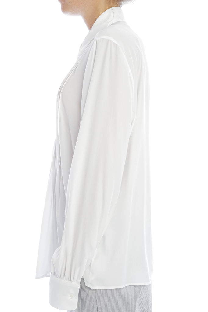 Die Bluse von Robert Friedmann aus feinem Material überzeugt mit eleganten Biesenfalten im Brustbereich und einer femininen Silhouette. Die Ärmel enden in einer praktischen 1-Knopf-Manschette, während der leicht abgerundete Saum den lässig-eleganten Look harmonisch abrundet.