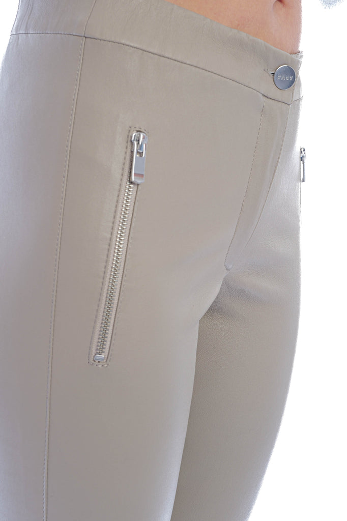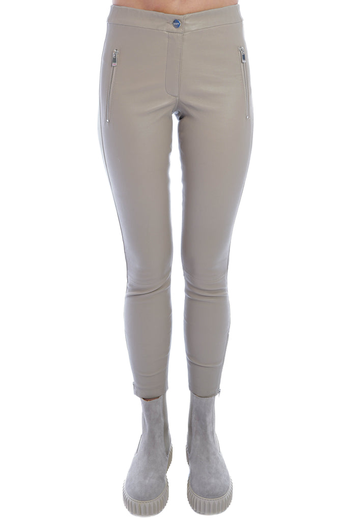 Die weiche Stretch-Lederhose von ARMA hat bei dem Modell 'Cadiz' stylische Reißverschlüsse am Bündchen und an den Fußknöcheln.