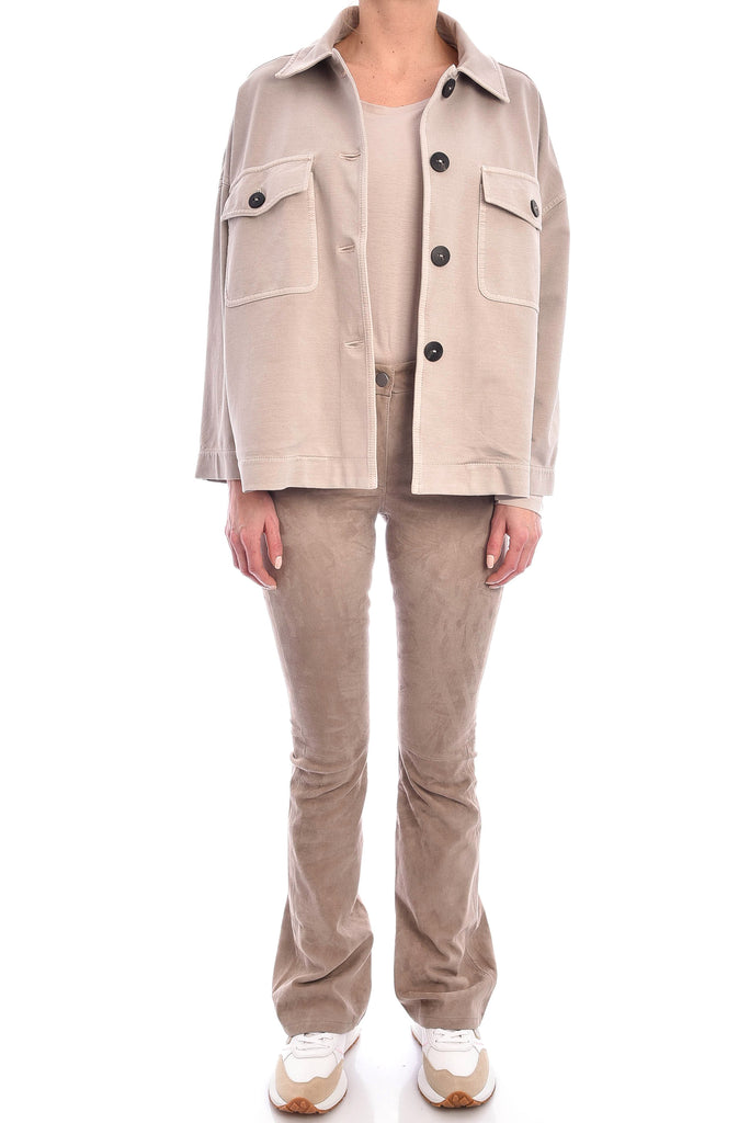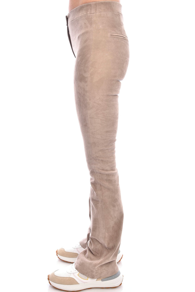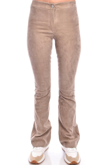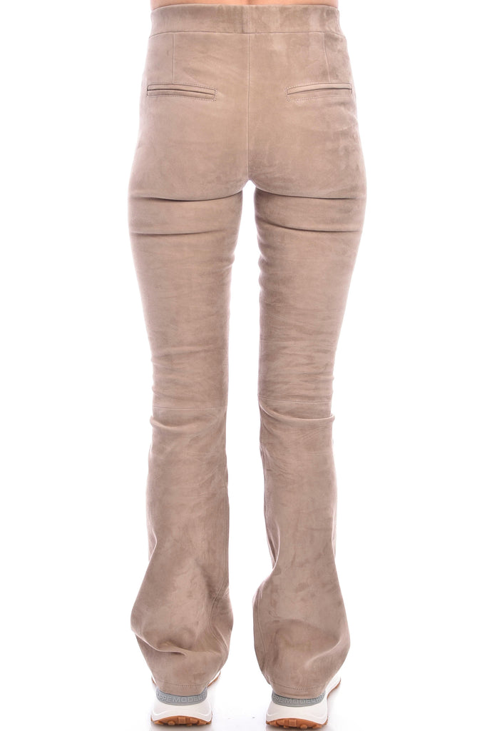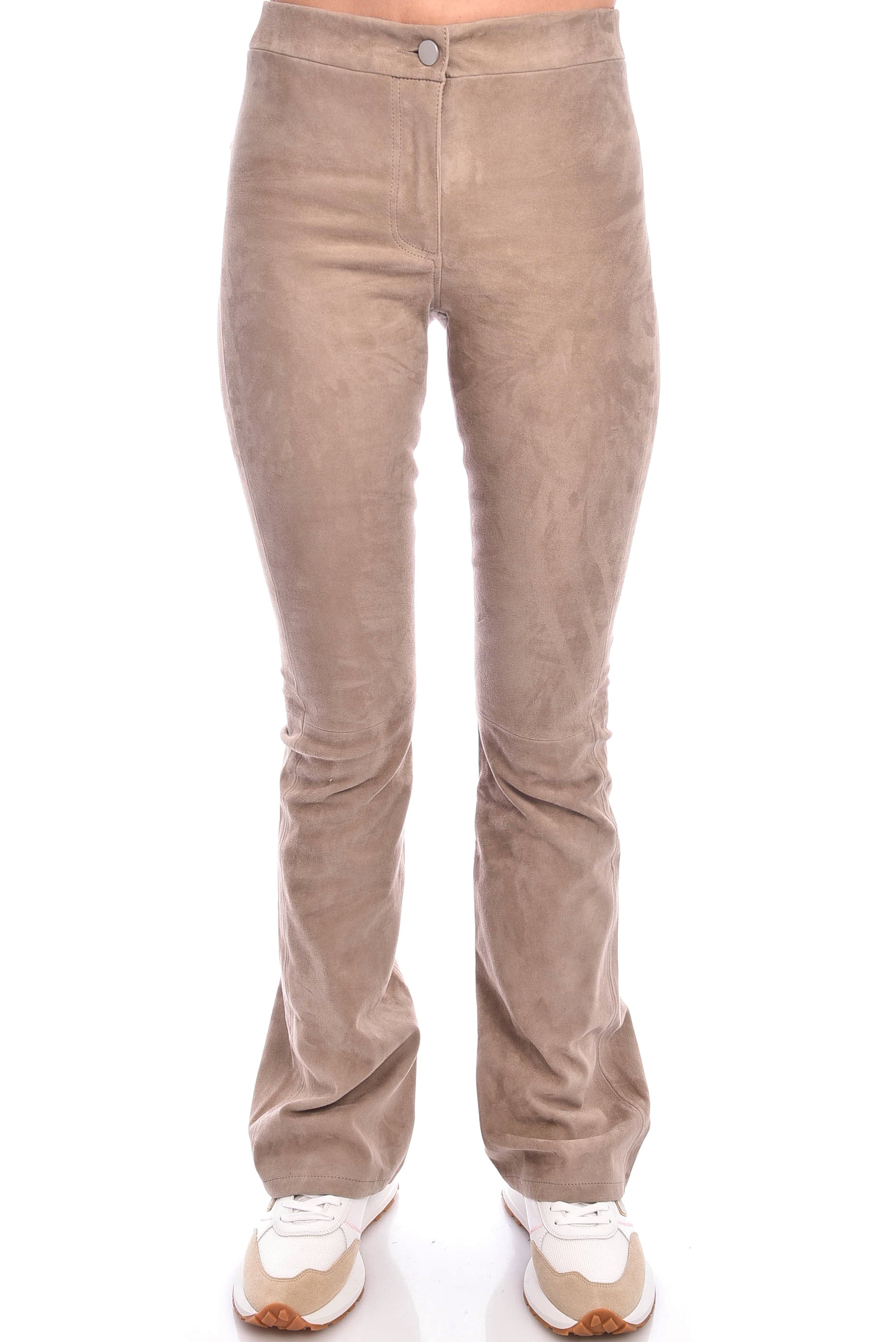 Velourslederhose mit modisch, ausgestelltem Bein. Der elastische Bund macht die Hose super bequem und perfekt für den Alltag.