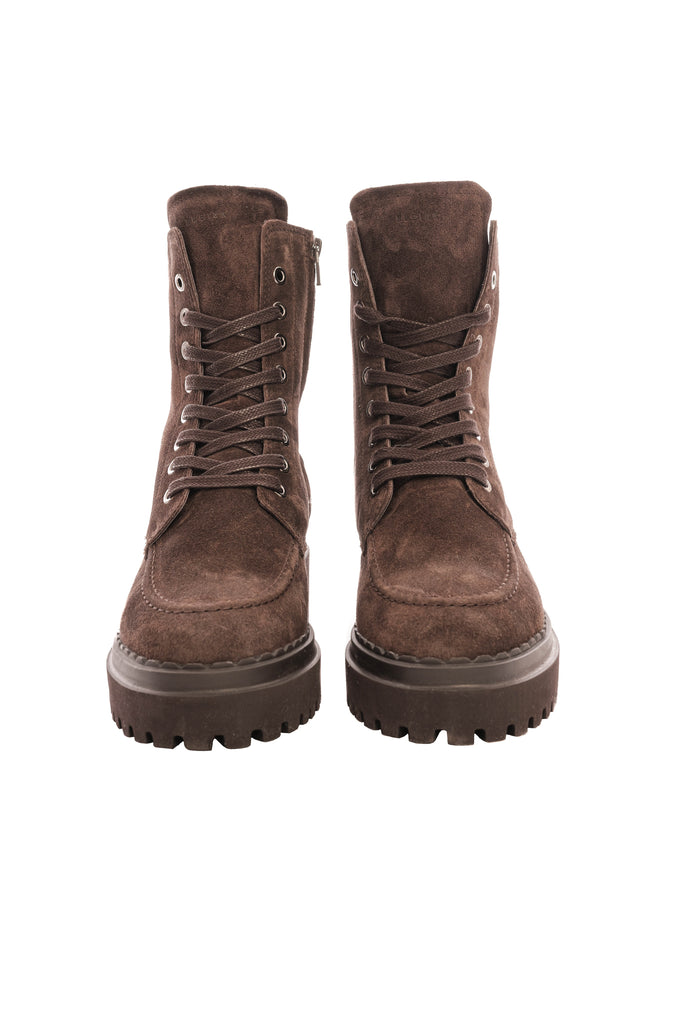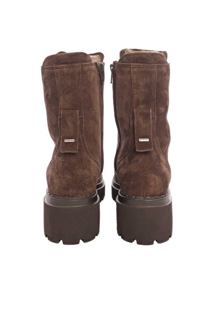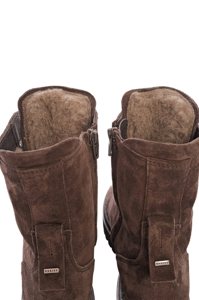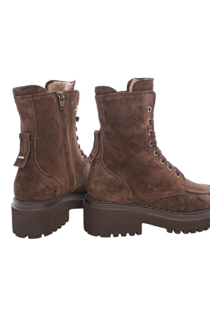 - Material: Hochwertiges dunkelbraunes Wildleder und Wollfutter