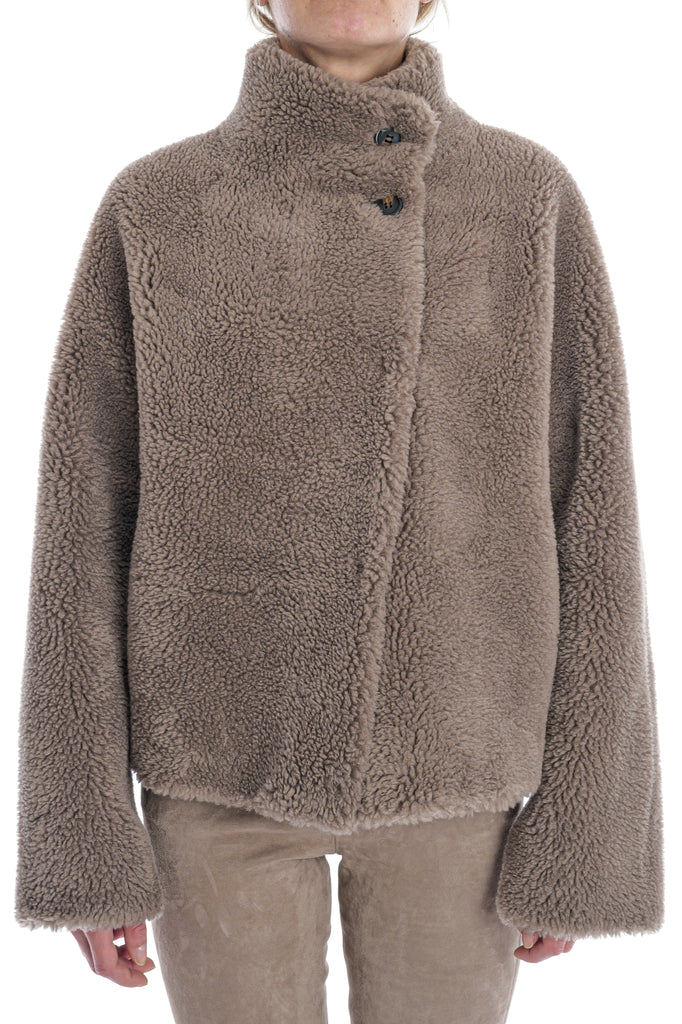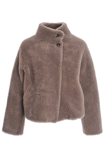 Die Mallow Jacke ist ein vielseitiges Outerwear-Piece, das jedem Outfit im Handumdrehen Stil verleiht. Mit ihrem weichen, leicht lockigen Look, der leicht verkürzten Passform und auffälligen Statement-Knöpfen wird sie zum Must-have dieser Wintersaison.