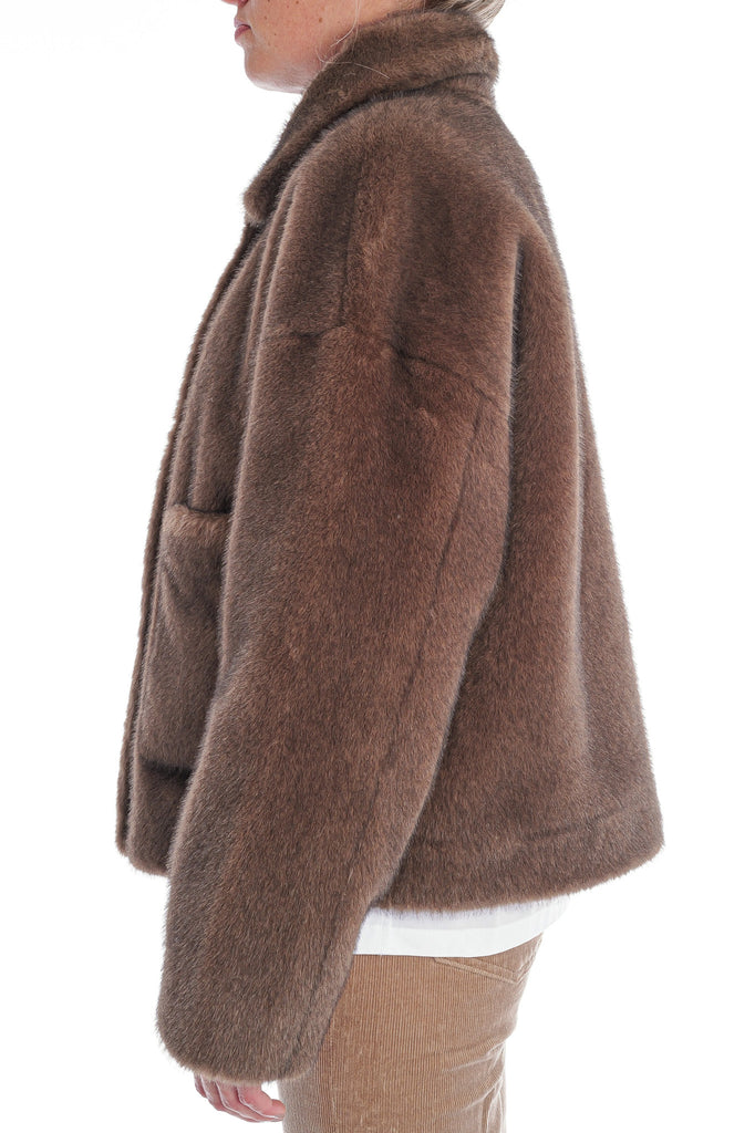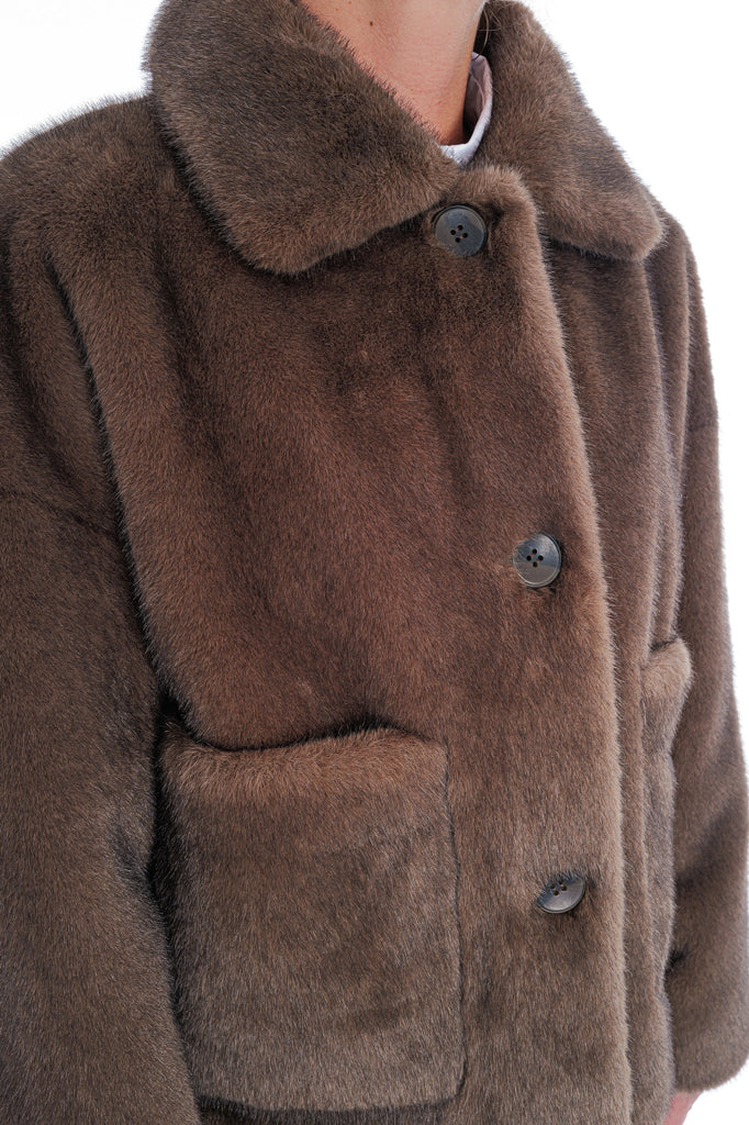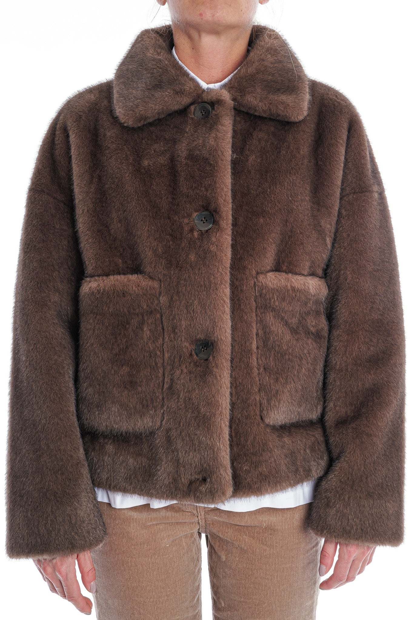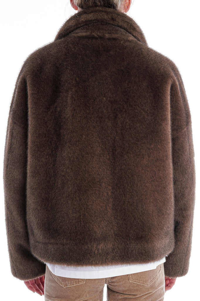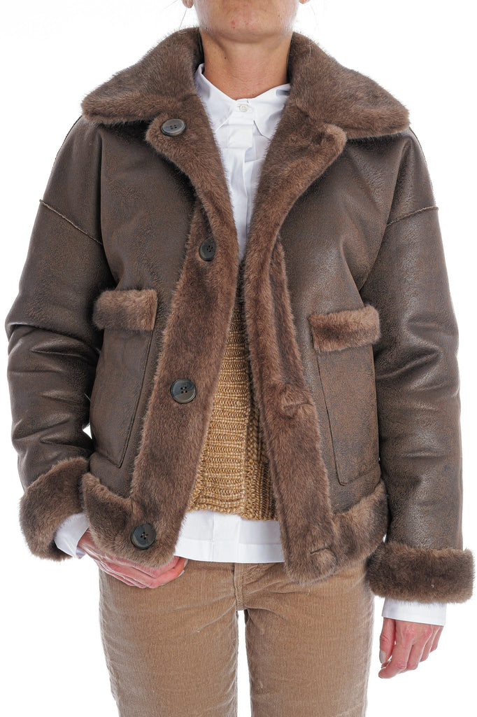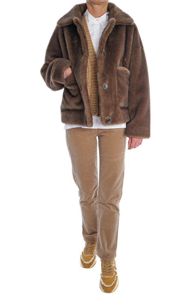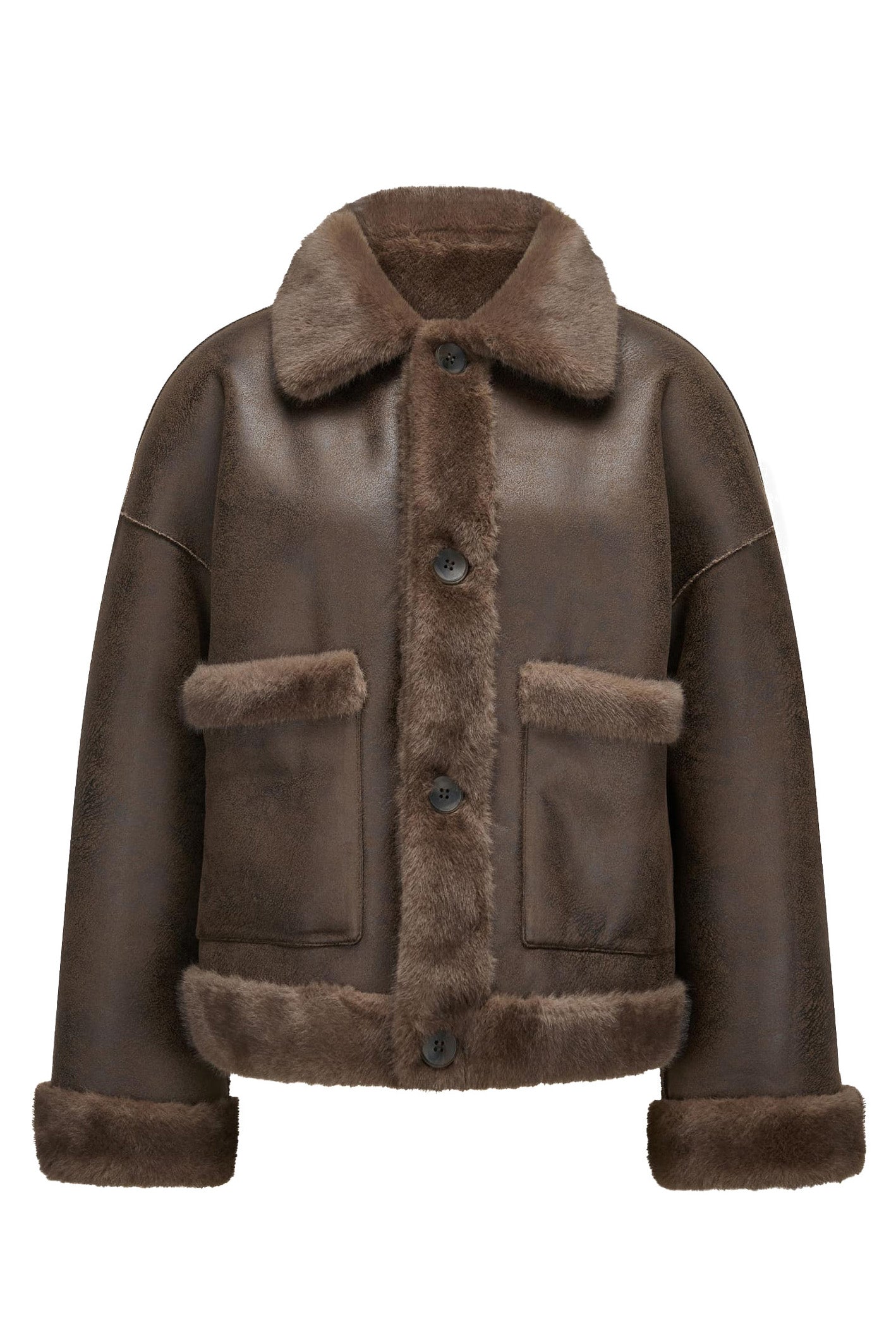 Die Faje Wende-Kunstfelljacke für Damen von Studio AR in Braun vereint Vielseitigkeit und modernen Chic. Das 2018 gegründete Label steht für feminine, coole und unkompliziert tragbare Designs. Dieses locker geschnittene Modell überzeugt mit einer cleveren Wende-Funktion, die zwei unterschiedliche Looks in einem bietet: Die kuschelige Kunstfellseite begeistert mit besonders softer Haptik, während die gewandte Rückseite mit einer melierten Leder-Optik einen modischen Akzent setzt.