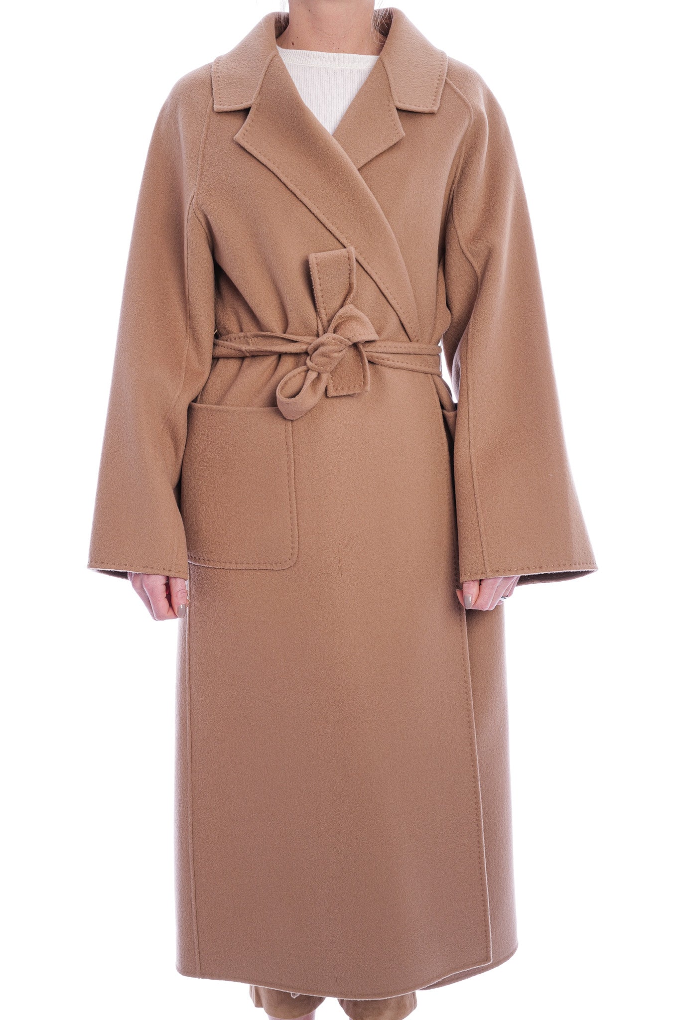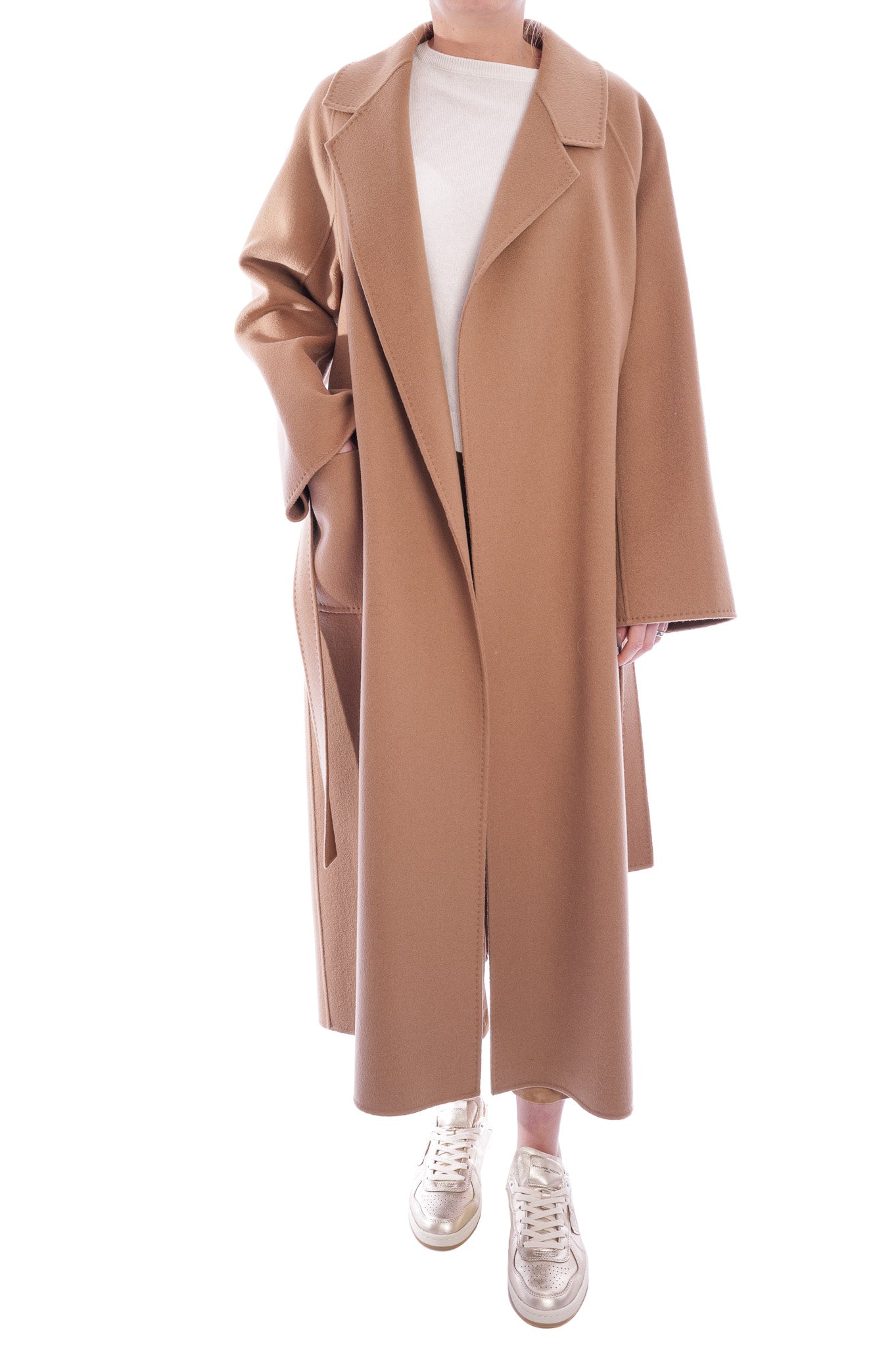 Der 'Suza' Wollmantel aus 100 % hochwertiger Wolle vereint wärmenden Komfort mit zeitloser Eleganz. Der lange Schnitt und der taillierende Gürtel zaubern eine schmeichelhafte Silhouette, während der Mantel perfekt zum Layering geeignet ist – ein stilvolles Must-have für die kälteren Monate.