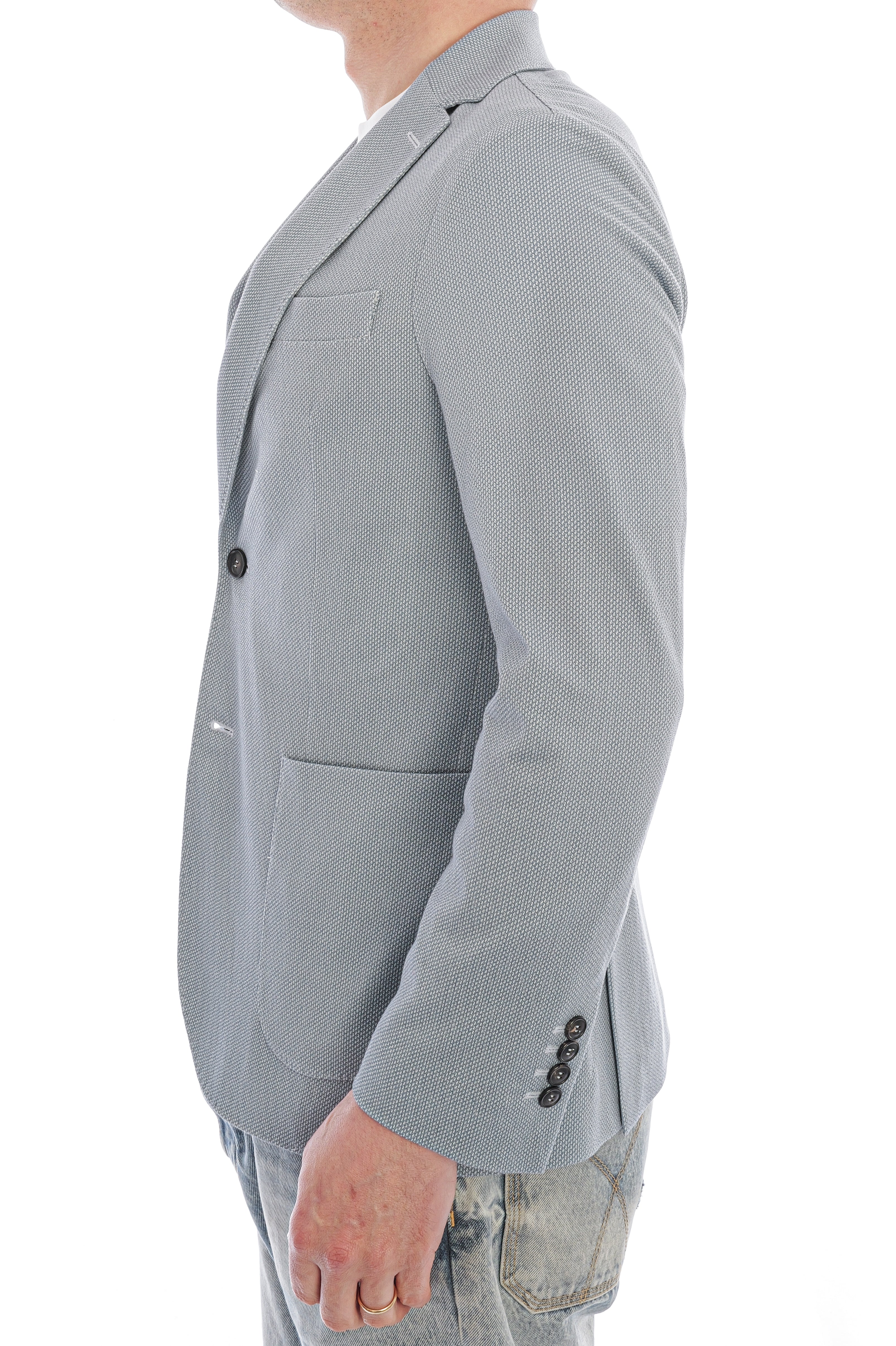 Diese Oxford-Sakko vereint zeitlose Eleganz mit modernen Details. Der Reverskragen mit Öse und die Hornknöpfe verleihen ihr eine raffinierte Note, während die Manschetten mit Knopf und die praktischen Taschen Funktionalität bieten. Ein doppelter Rückenschlitz sorgt für Bewegungsfreiheit und einen stilvollen Fall.