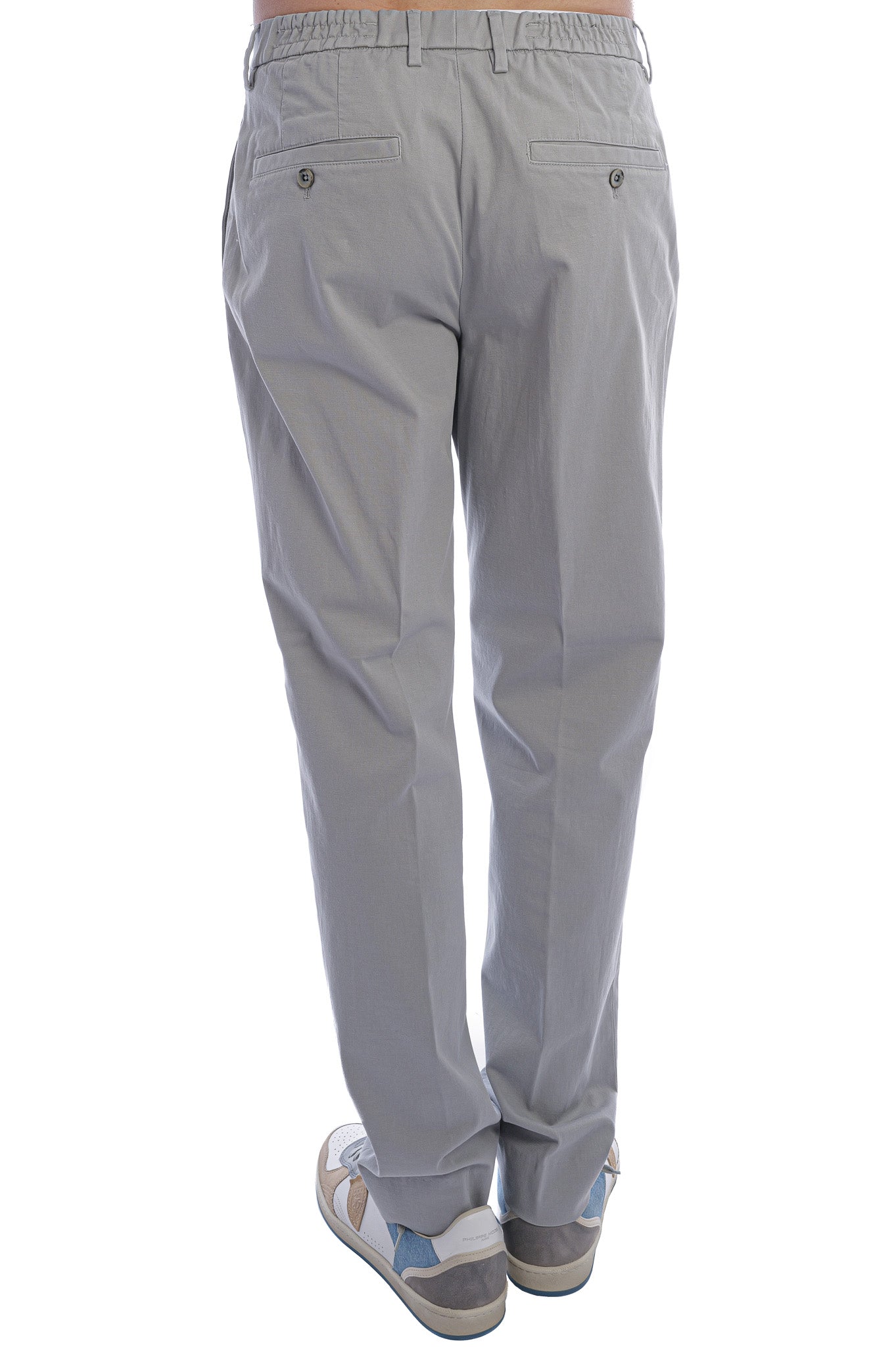 Diese Chino besticht durch ihre figurschmeichelnde Passform mit leicht schmal zulaufendem Bein, mittlerer Leibhöhe und elastischem Taillenbund für komfortables Tragen. Dezente Bügelfalten, Gürtelschlaufen sowie seitliche Eingriffs- und Gesäßtaschen runden das stilvolle Design aus soften Materialien perfekt ab.