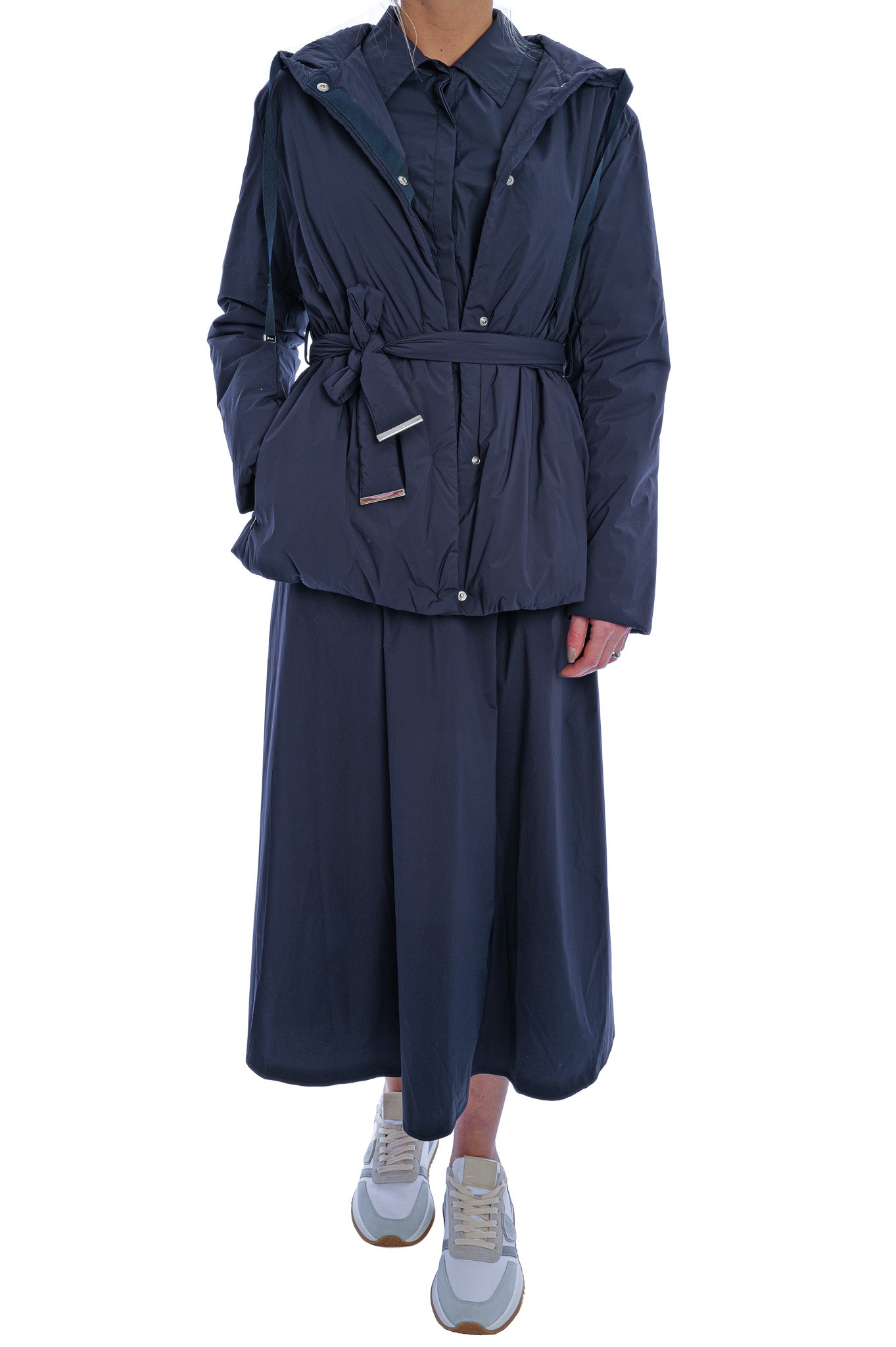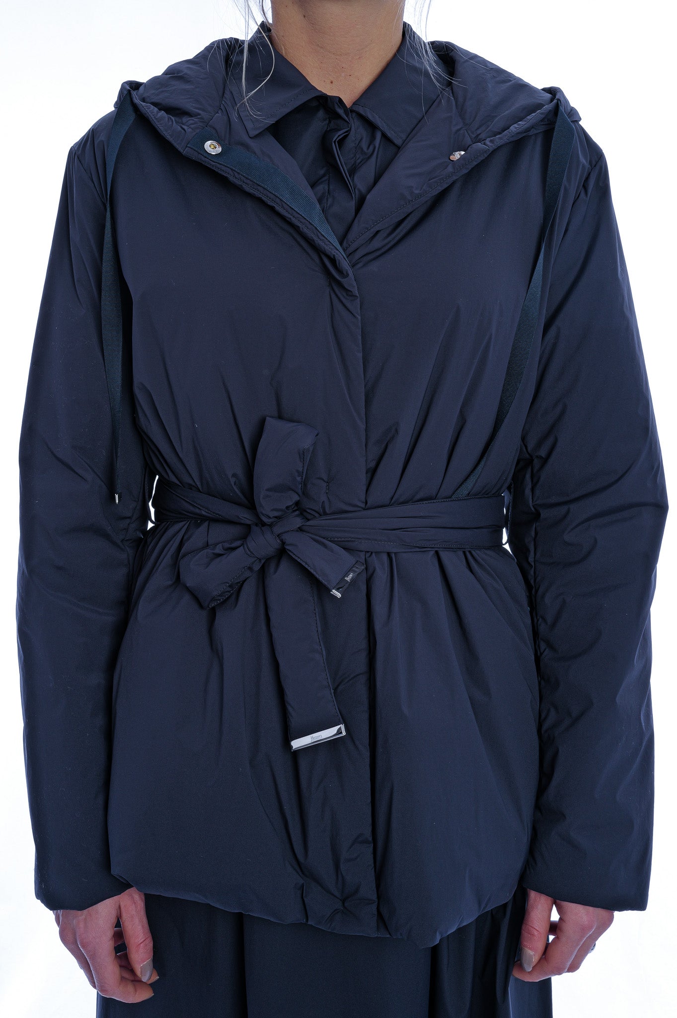Die Herno Jacke mit Kapuze ist aus technischem Gewebe mit hohem Nylonanteil und einem Elastananteil für optimale Performance und Tragekomfort gefertigt. Das gerade, mittellange Modell verfügt über eine feste Kapuze, lange Ärmel, einen Frontverschluss mit Druckknöpfen, einen taillierenden Gürtel sowie funktionale Leistentaschen auf Hüfthöhe.
