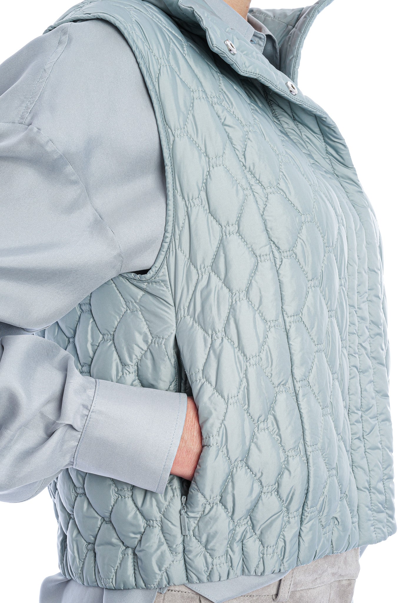 Diese leichte Steppweste überzeugt mit ärmellosem Design, sportiver Optik und einem hohen Kragen für zusätzlichen Schutz. Ideal als wärmende Zwischenschicht unter der passenden Jacke getragen, ergänzt sie jedes Outfit funktional und stilvoll zugleich.