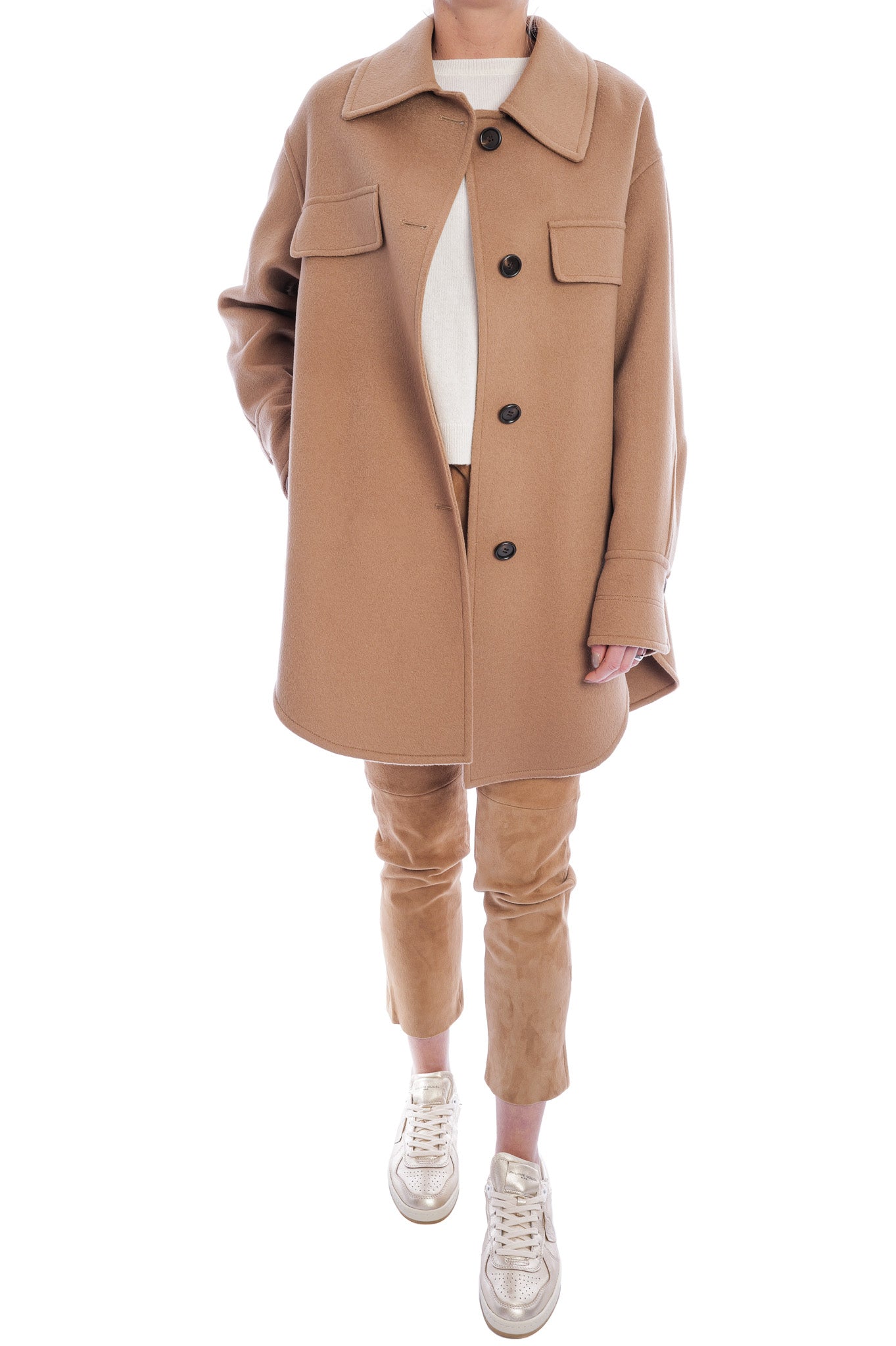 Diese Wolljacke im Hemd-Style vereint klassische Eleganz mit lässigem Flair. Sie besticht durch Brusttaschen und kontrastierende Knöpfe für einen stilvollen Akzent.