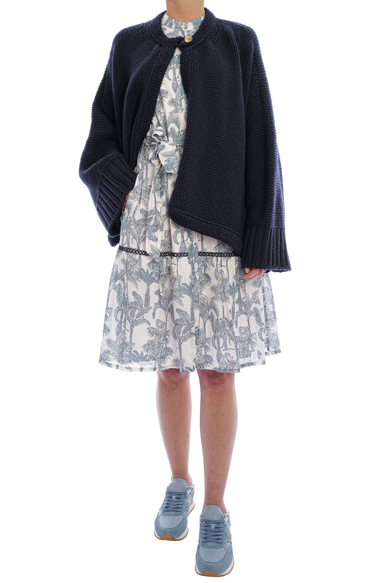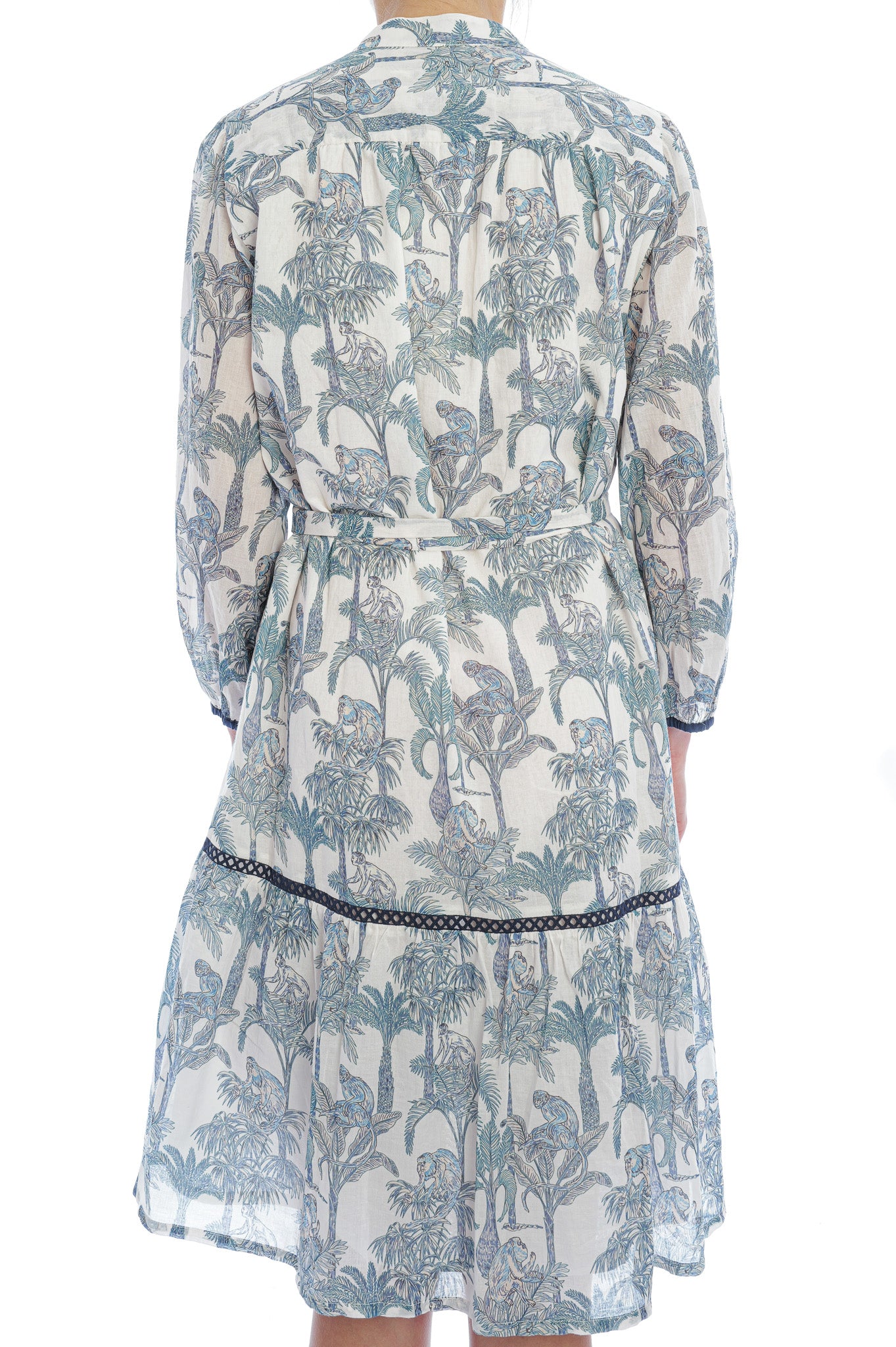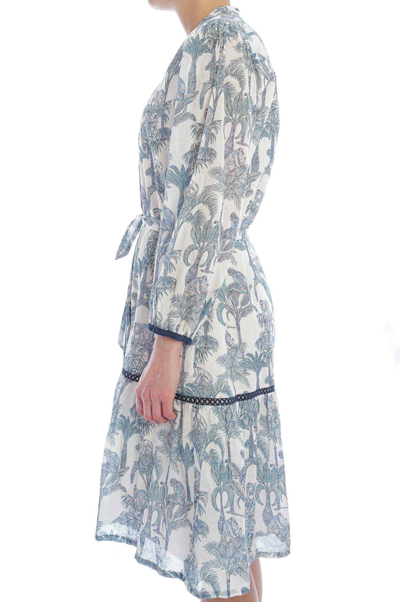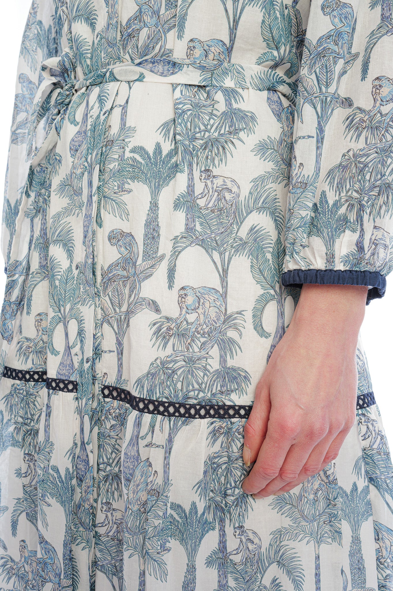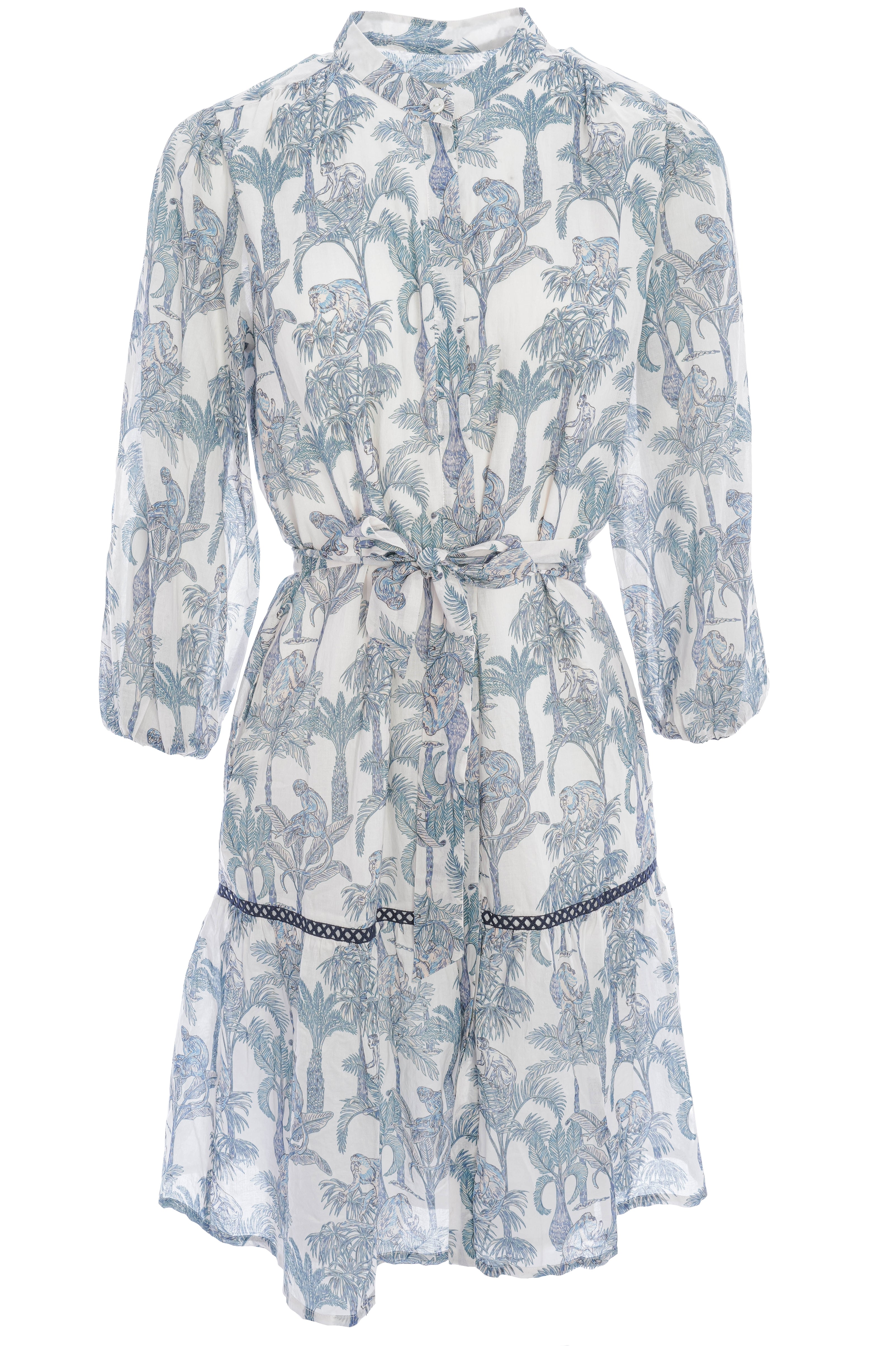 Dieses Sommerkleid vereint mühelosen Stil mit femininer Eleganz. Der lockere Schnitt unterstreicht eine individuelle Ausstrahlung, während der tief angesetzte, geraffte Rock und die verkürzten Ballonärmel einen Hauch von romantischem Boho-Flair verleihen.