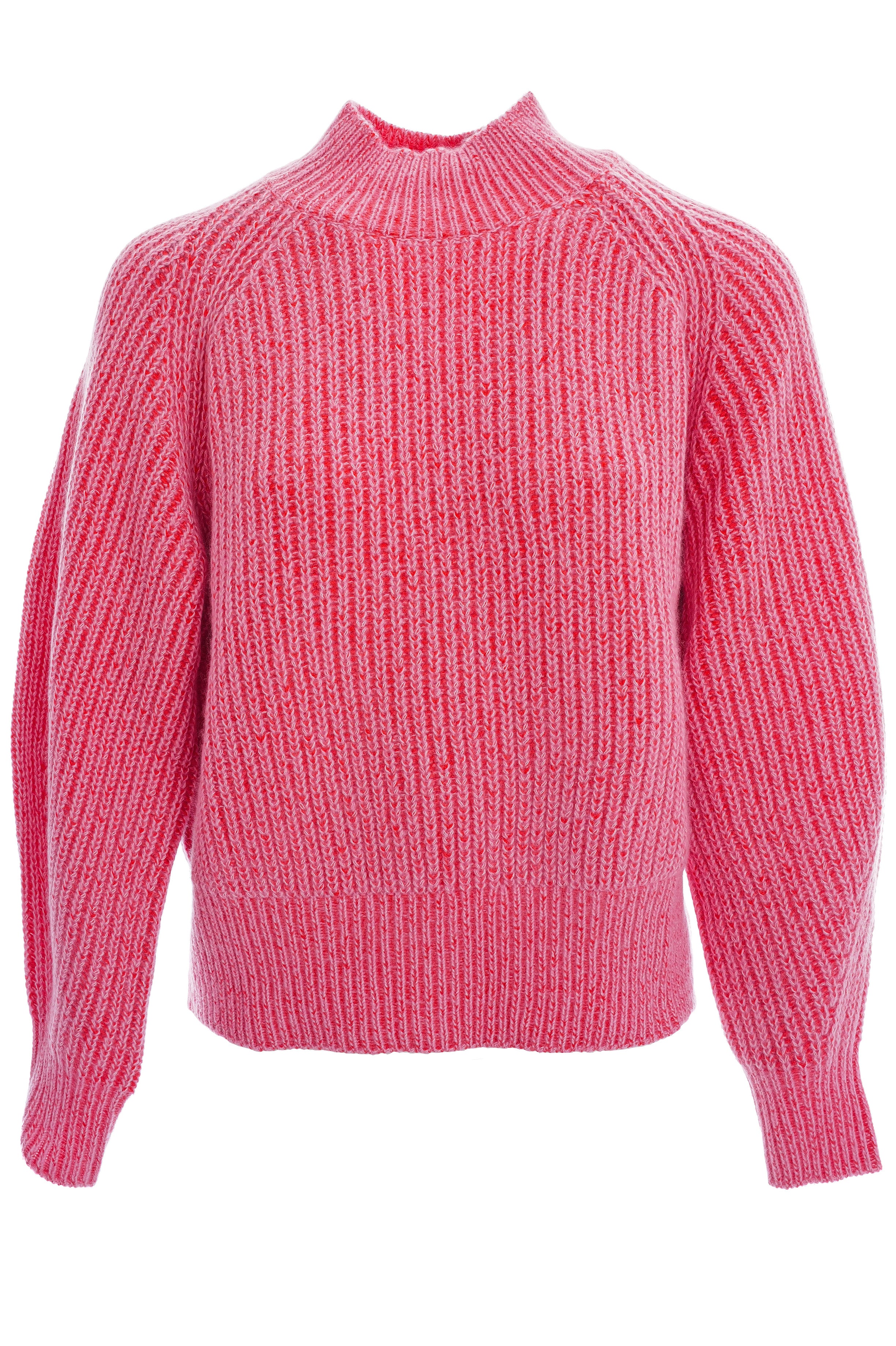 Pullover von Odeeh in Rosa und Rot mit weiter Silhouette und modernem Bicolor-Rippstrick-Design. Der hochwertige Schurwoll-Cashmere-Mix sorgt für einen besonders weichen Griff und luxuriösen Tragekomfort, während der Stehkragen das Modell elegant abrundet.