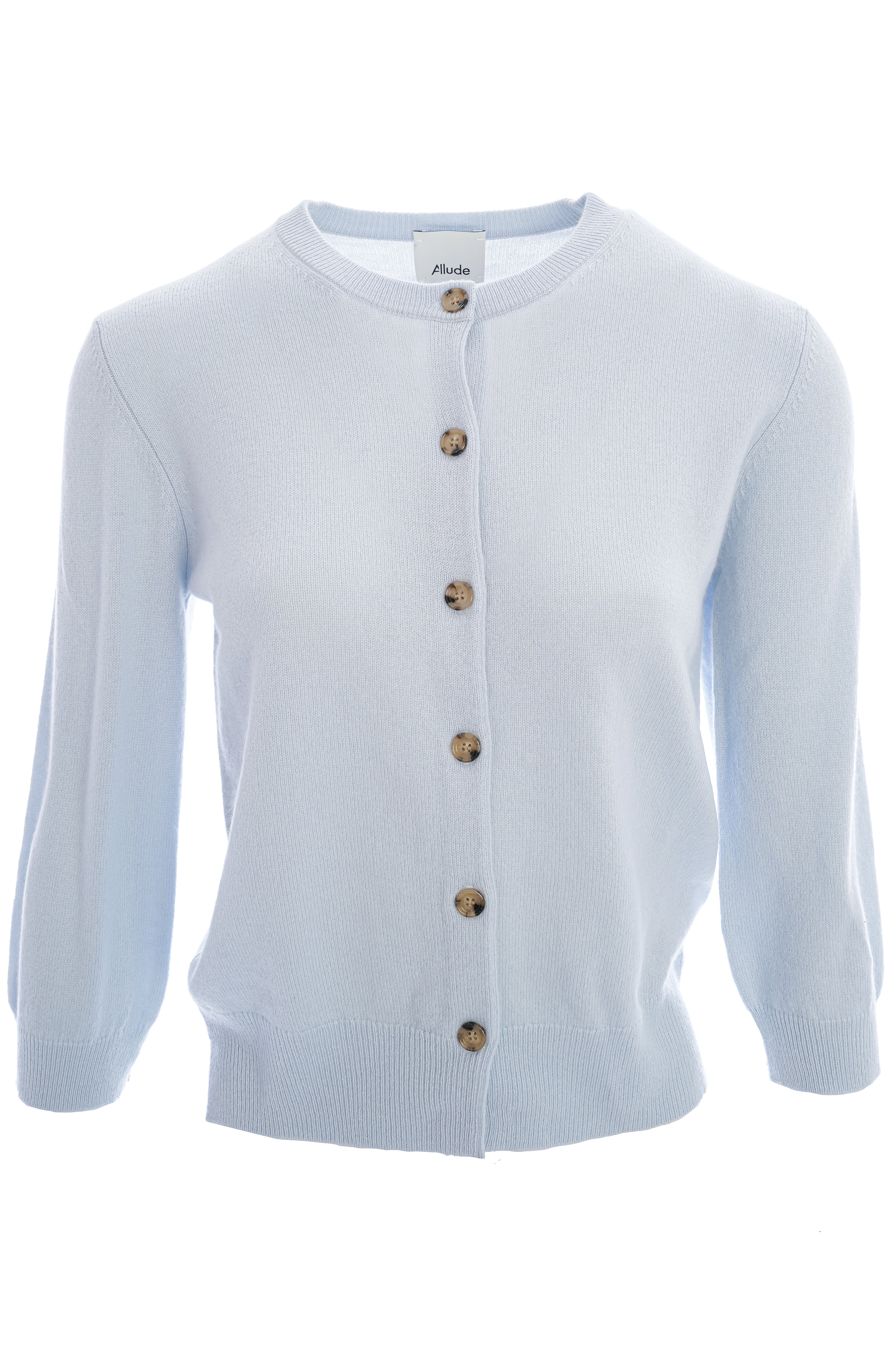 Diese taillierte Feinstrick-Strickjacke aus 100 % Cashmere überzeugt mit 3/4-Ärmeln, Rundhalsausschnitt und edlen Knöpfen in Hornoptik. Dank Flachstrick wirkt sie besonders leicht, weich und elegant.