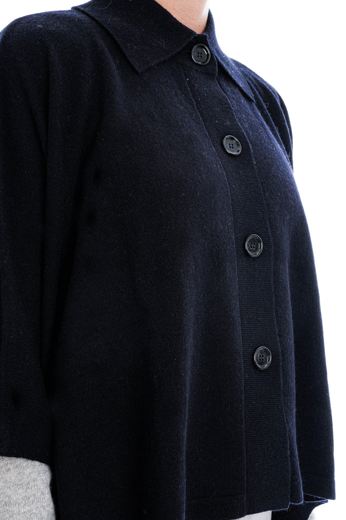 Diese Strickjacke aus edler Schurwolle-Cashmere-Mischung überzeugt mit ihrem glatten Maschenbild, geradem Schnitt und klassischem Umlegekragen. Raffinierte Details wie die Kellerfalte am Rücken, seitliche Riegel mit Knopf und feine Rippbündchen am Saum verleihen dem Modell eine elegante Note.
