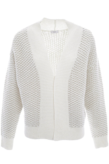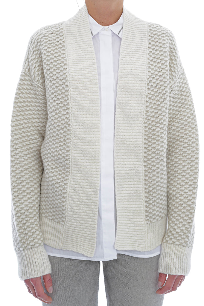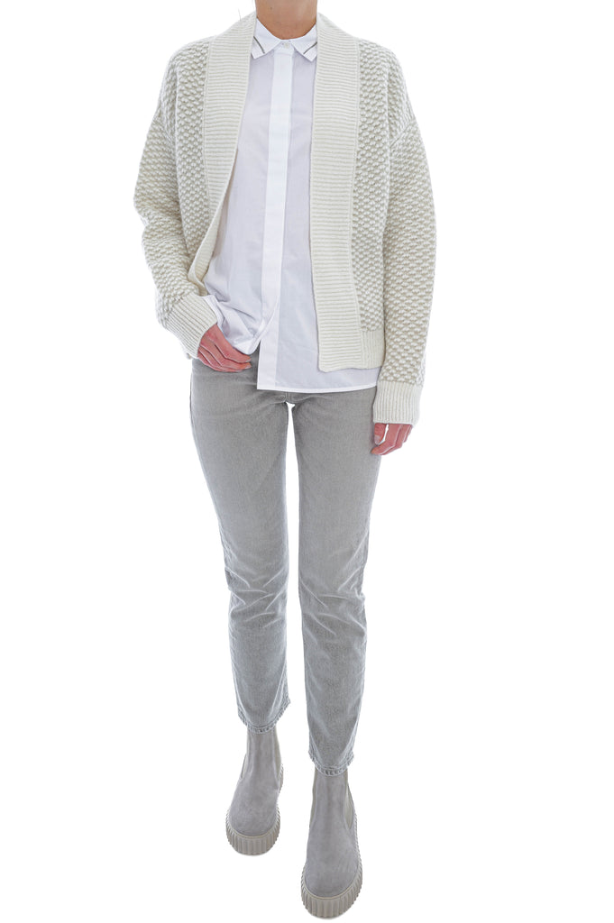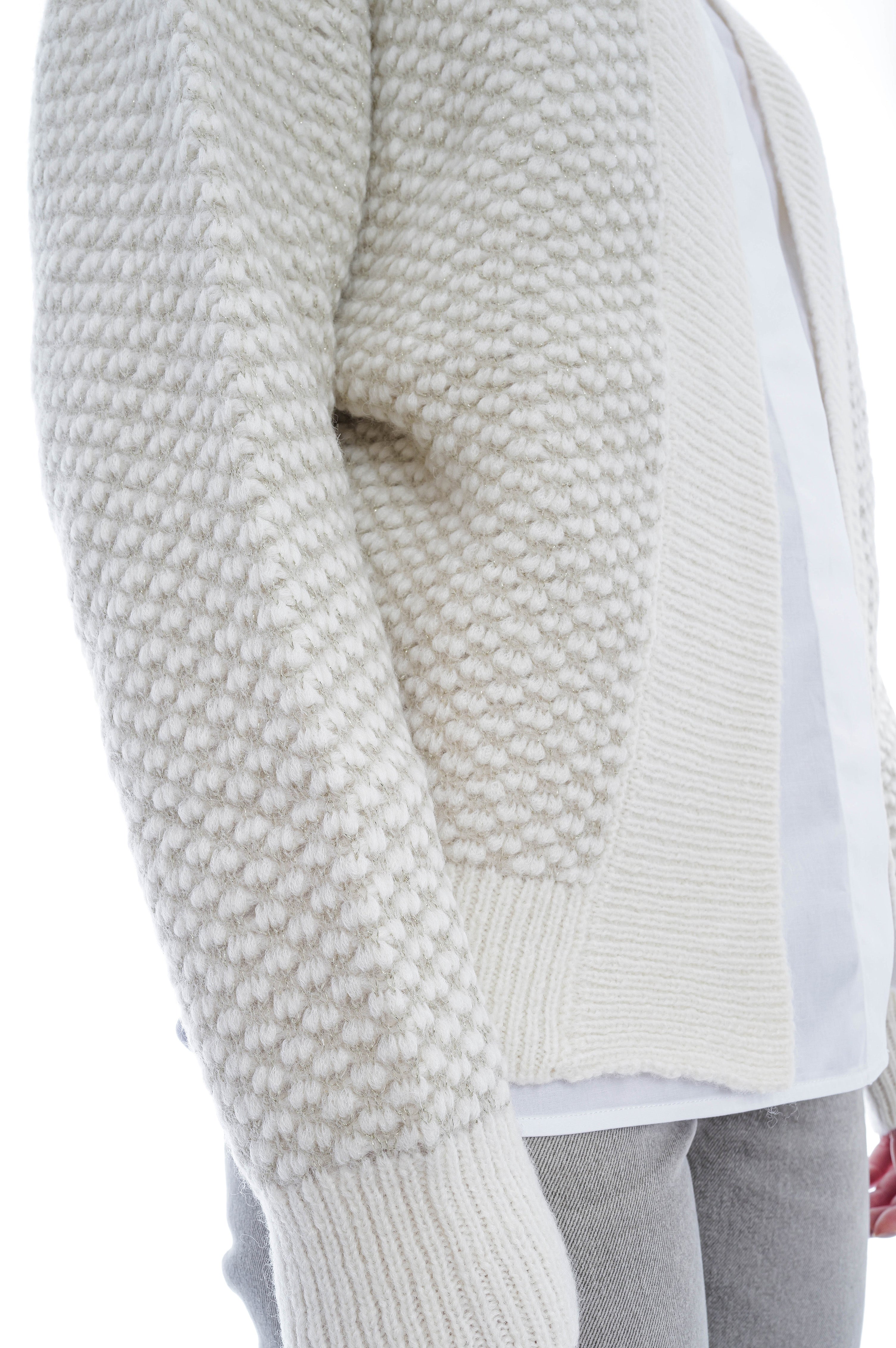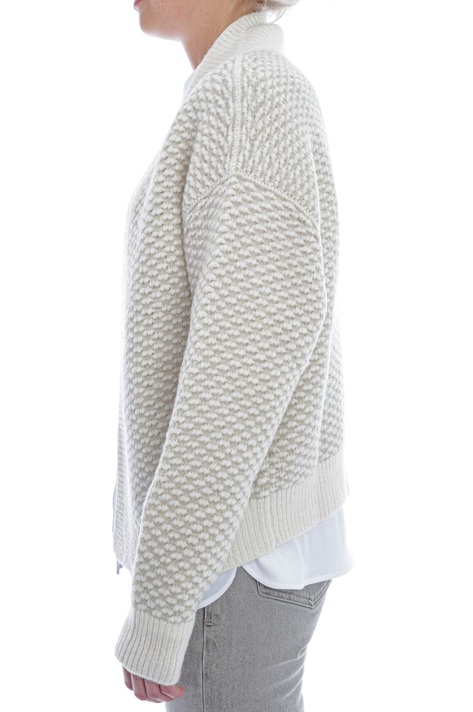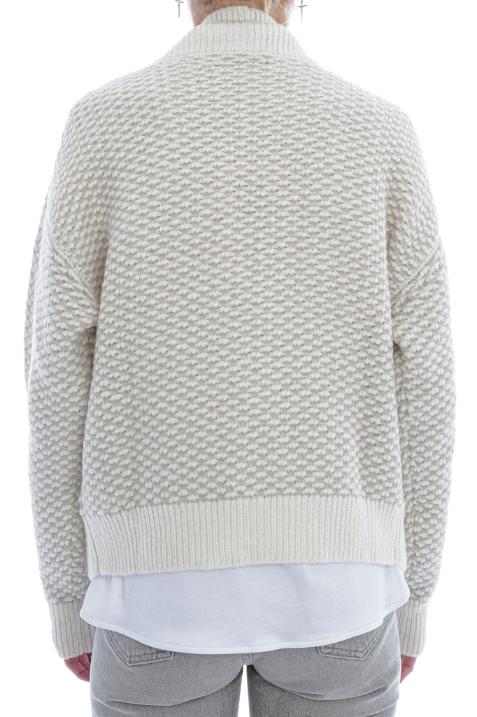 Dieser Pullover aus Alpaka besticht durch weichen Strukturstrick mit melierter Optik und dezentem Glitzergarn allover. Der weite Schnitt, offene Silhouette, überschnittene Schultern und Rippbündchen an Kragen, Ärmelenden und Saum verleihen ihm lässige Eleganz und hohen Tragekomfort.
