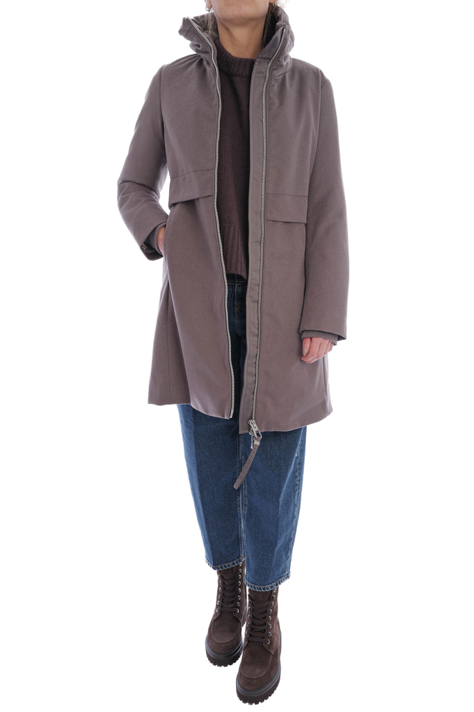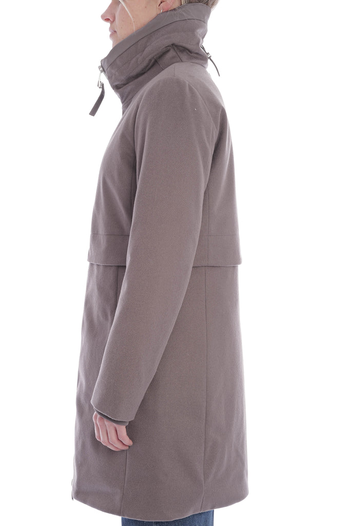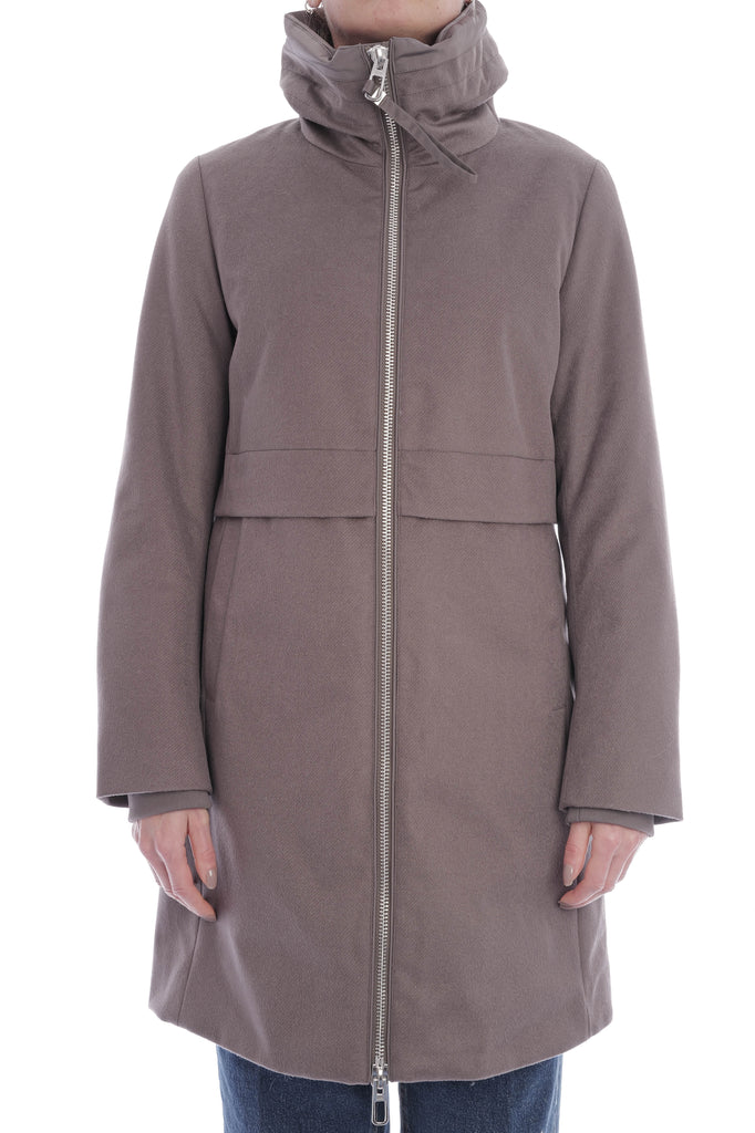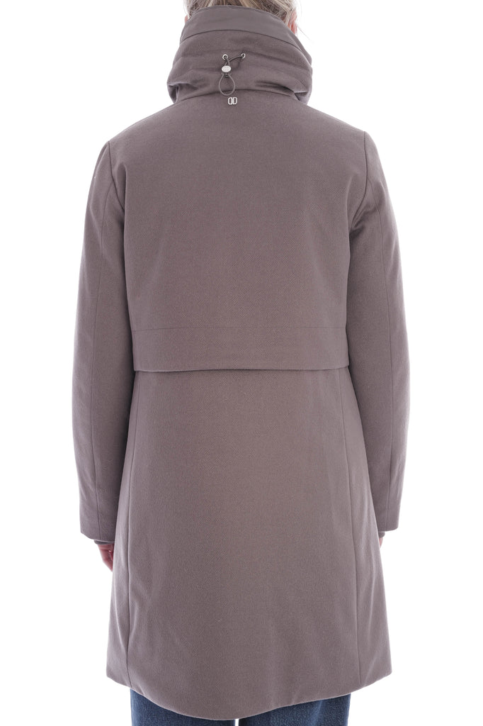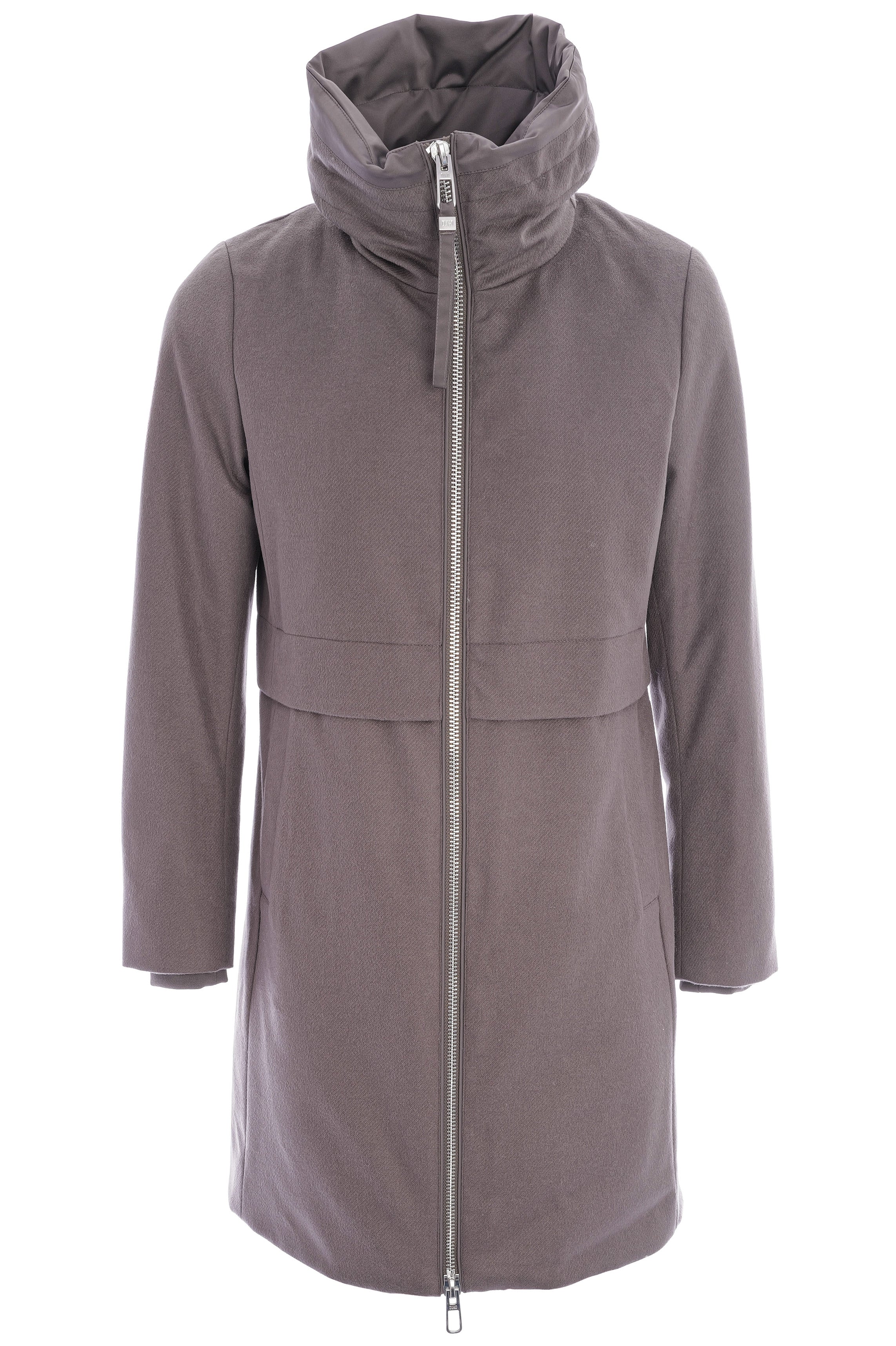 Stylische Steppjacke mit geradem Schnitt, Stehkragen und Zwei-Wege-Reißverschluss, gefertigt aus weicher Wolle und gefüllt mit hochwertigen Daunen und Federn für optimalen Wärmekomfort. Praktische Details wie seitliche Eingrifftaschen, elastische Ärmelbündchen, Tunnelzug an Taille und Kragen sowie ein gestepptes Innenfutter runden das hochwertige Design ab.