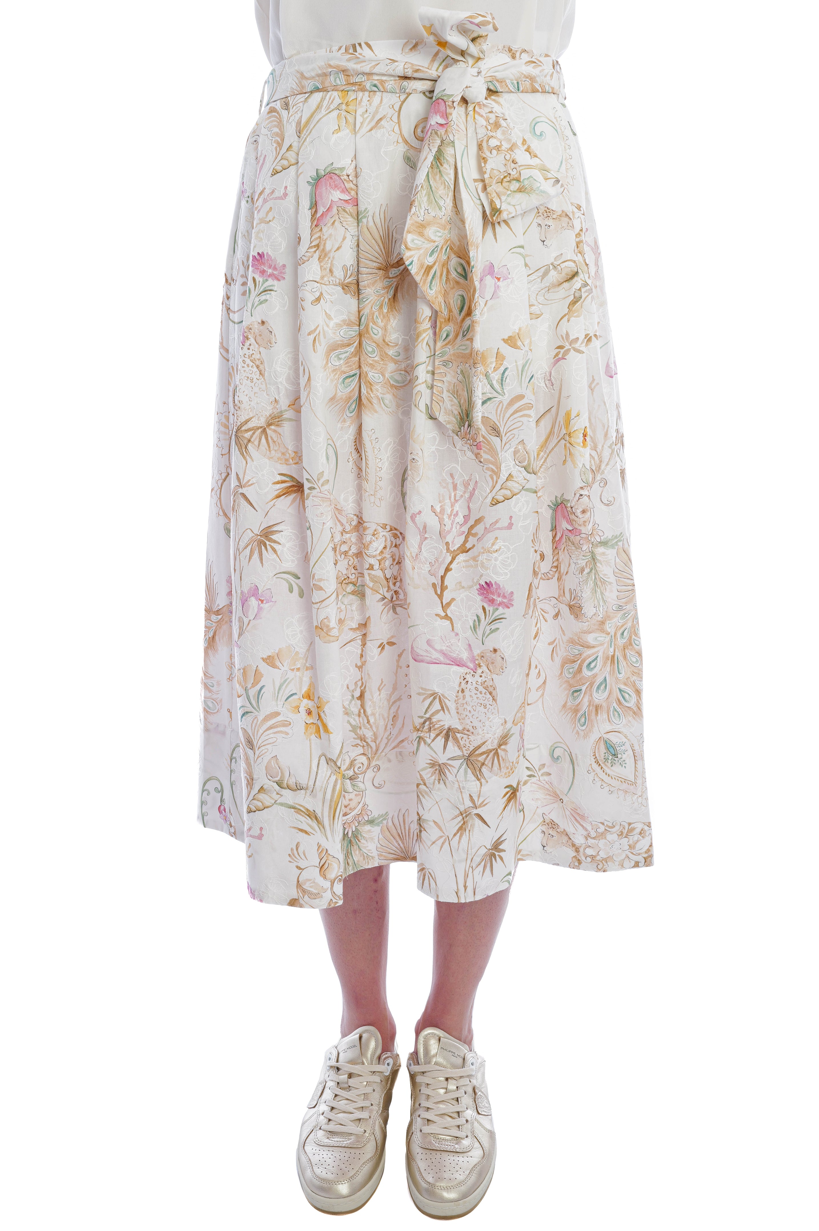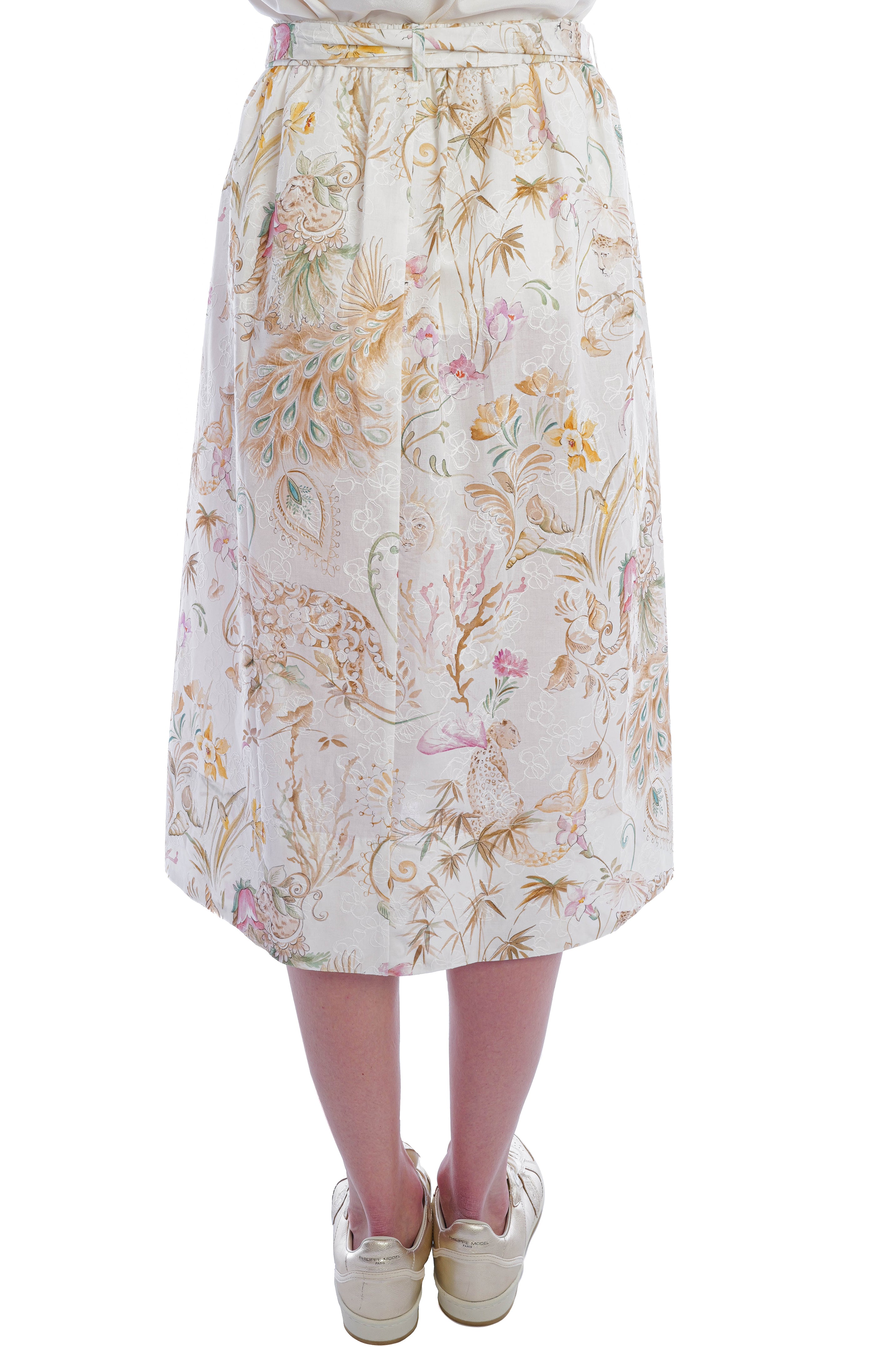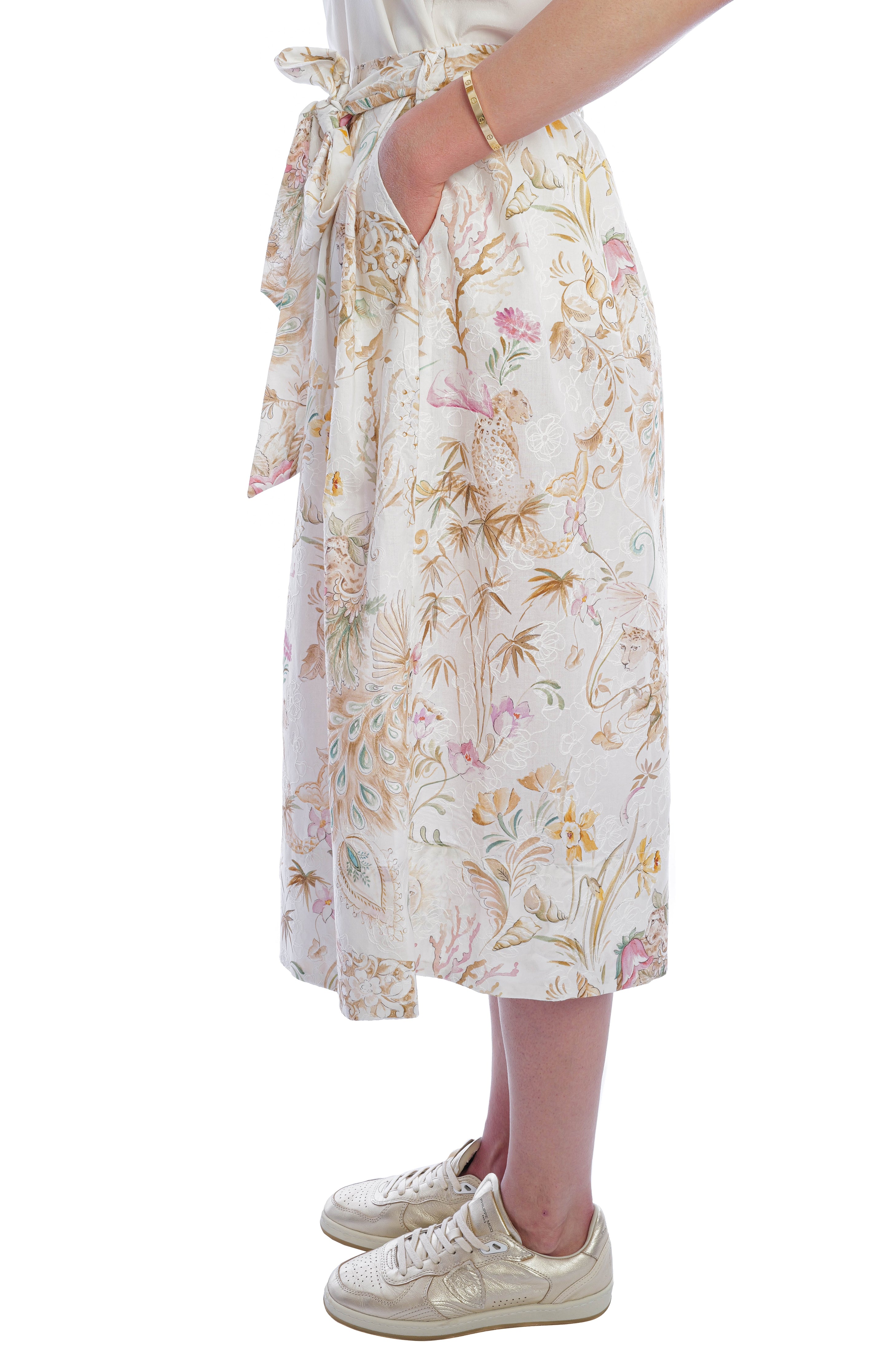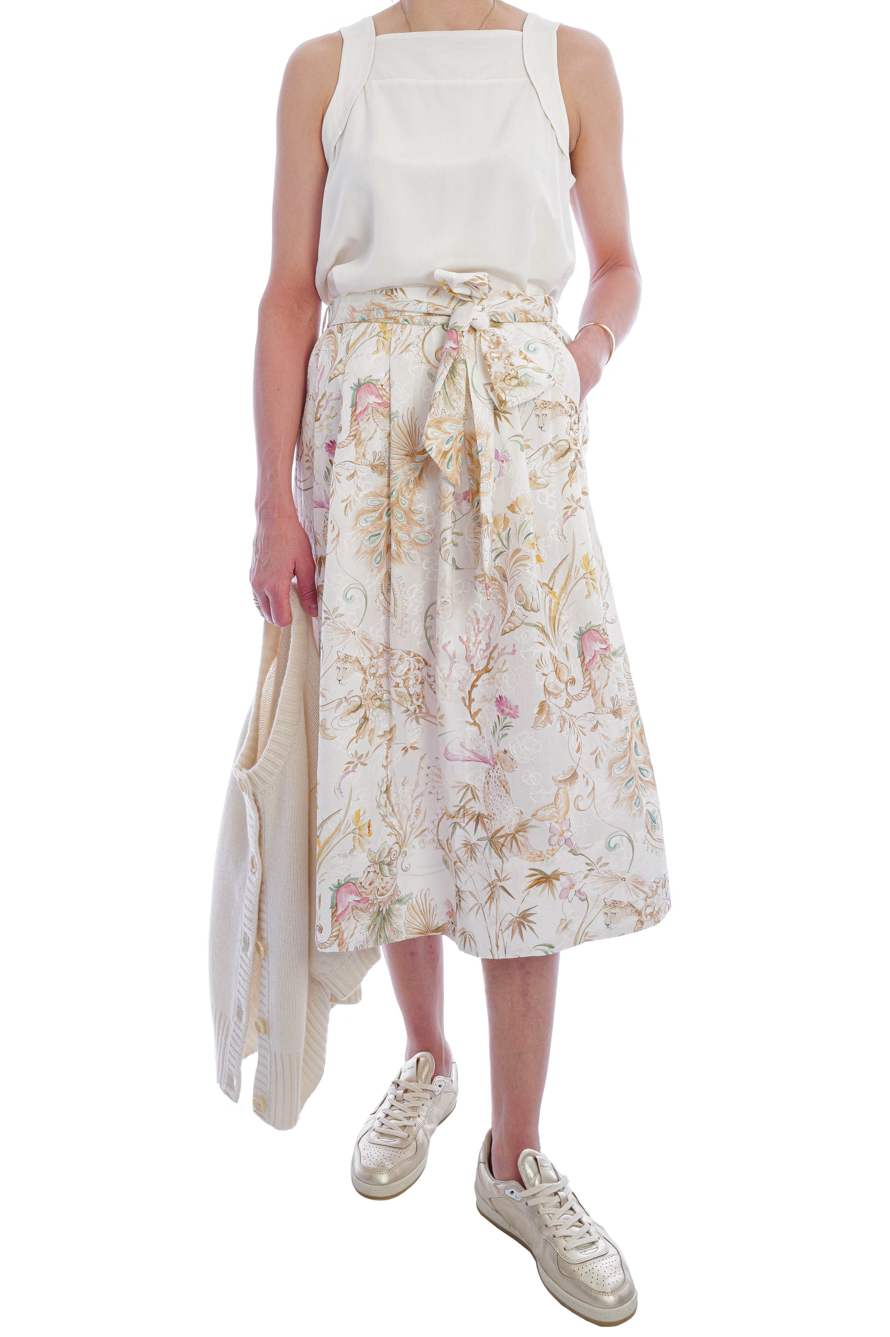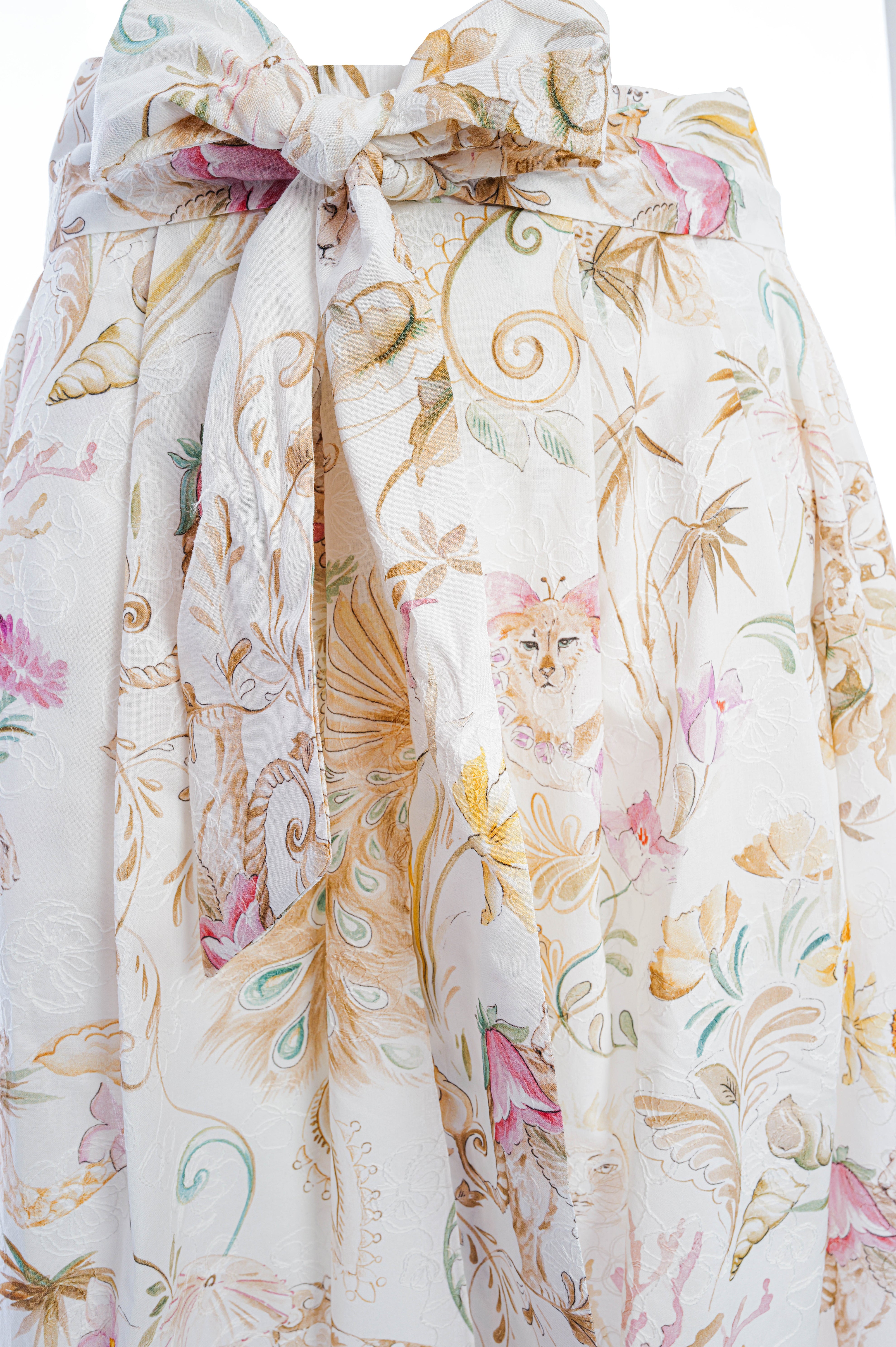 Edelle ist ein junges deutsches Modelabel, das sich auf elegante, feminine Designs in hochwertiger Verarbeitung konzentriert. Es steht für zeitlose Modernität und tragbare Raffinesse. Dieses Modell besticht durch seinen leichten Baumwollstoff und die stilvollen Details. Der abnehmbare Bund und der tropische Print mit feiner Blumenstickerei verleihen ihm eine feminine Note und einen romantischen Touch.