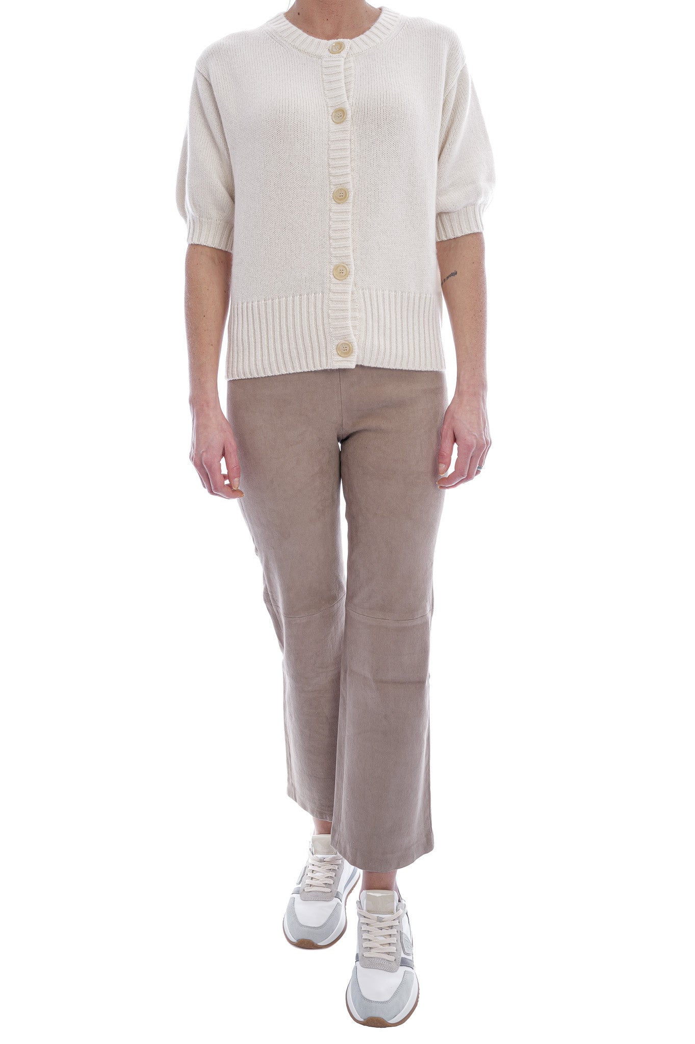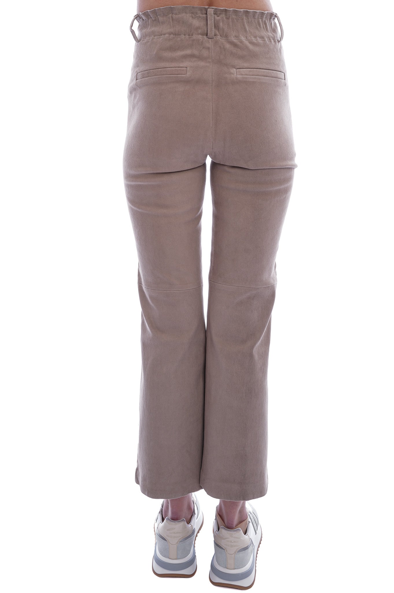 Ferrara 7/8-Lederhose für Damen von Arma in Grey Taupe. Dank dem hochwertigen Veloursleder erhält das Modell nicht nur eine moderne Optik, sondern auch eine weiche Haptik, während der elastische Bund für einen besonders hohen Tragekomfort sorgt. Zudem unterstreicht der leicht verkürzte Flared-Schnitt den Gesamt-Look harmonisch.