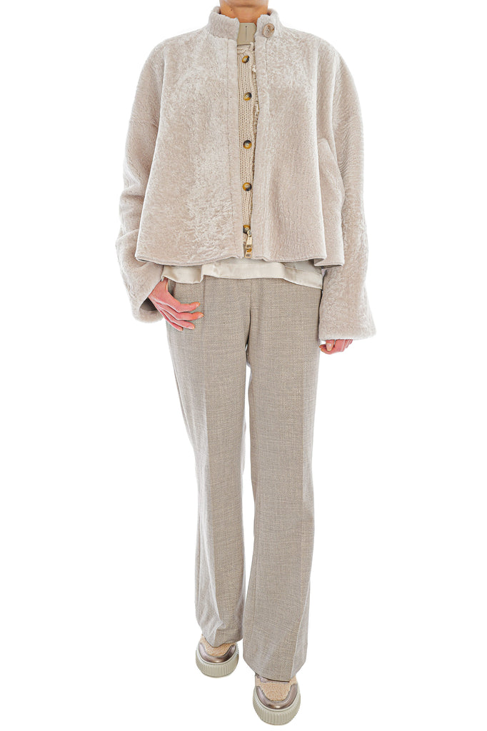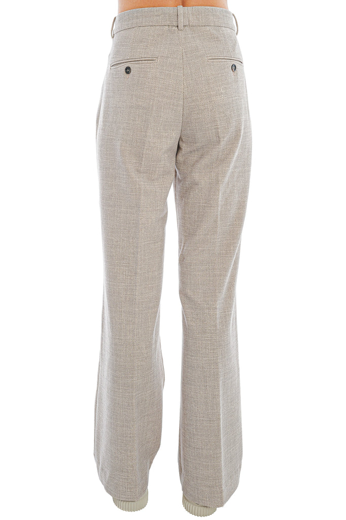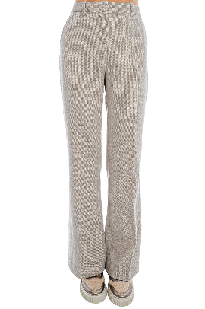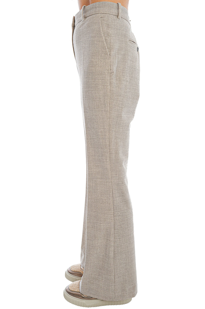 Diese Hose besticht durch einen mittleren Bund und schmal ausgestellte Beine in modernem Fischgrätenmuster. Seitliche Eingrifftaschen und stretchiges Material sorgen für Komfort und eine perfekte Passform.