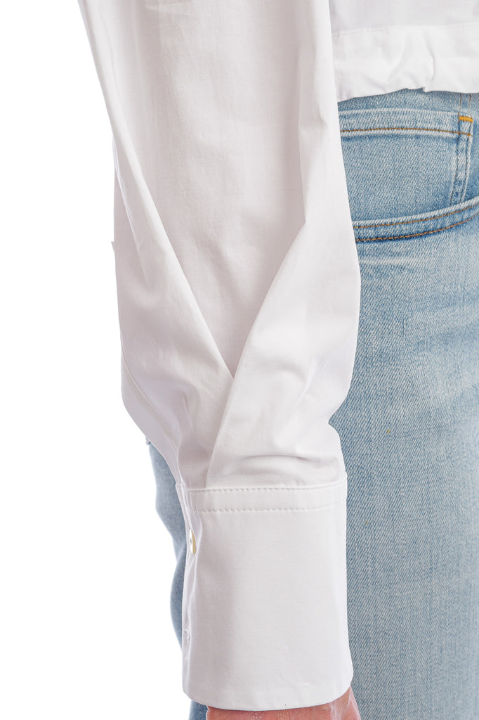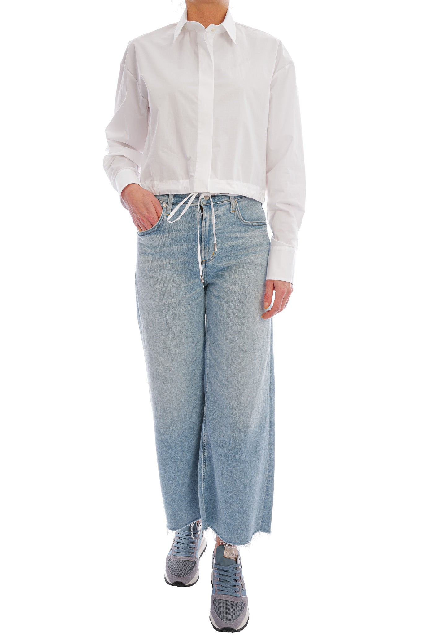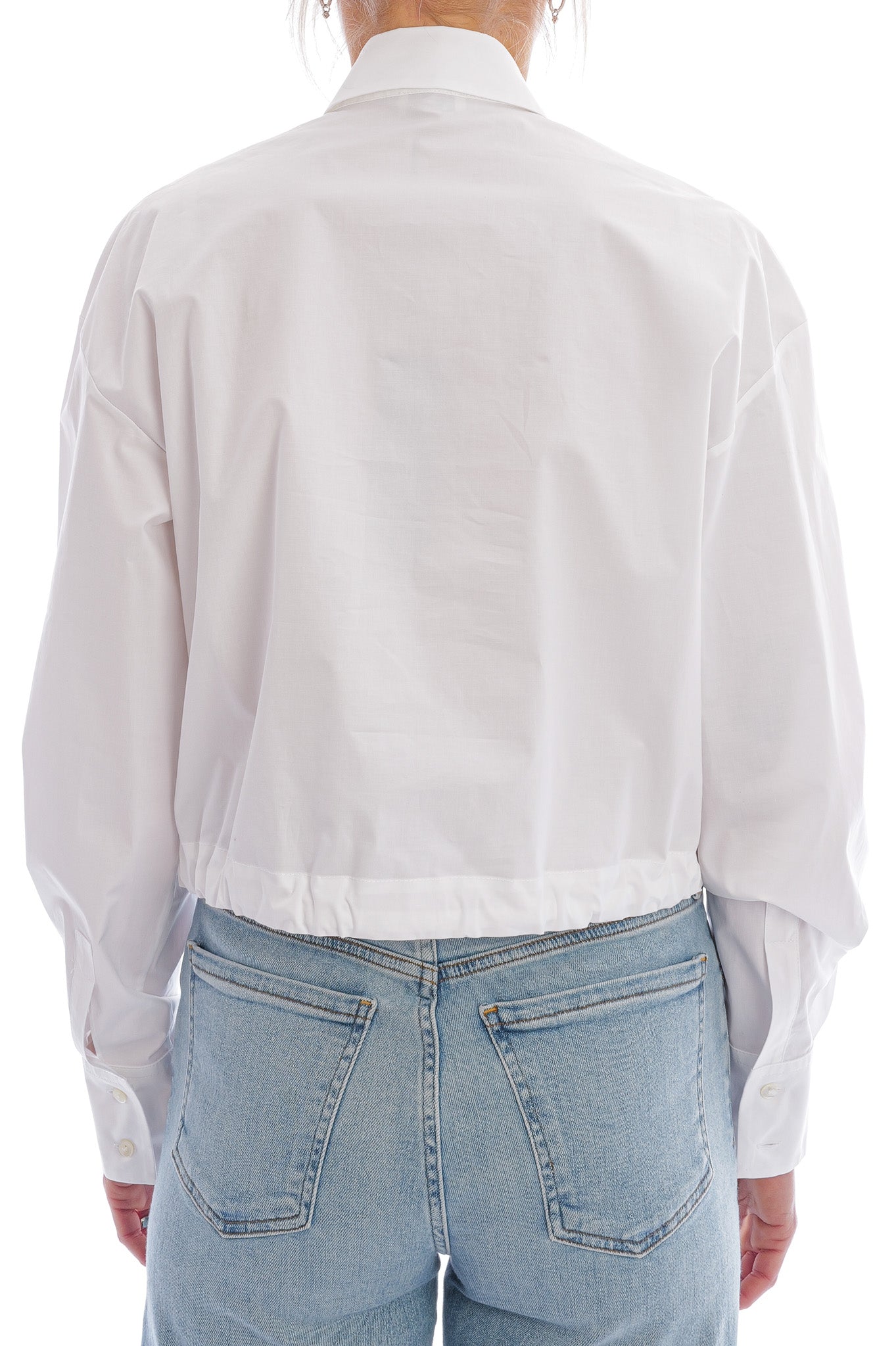 Leichte Baumwollbluse mit Hemdkragen, kurzem Schnitt und breiten Manschetten, veredelt durch einen lässigen Schnürzugbund für einen modernen Look.
