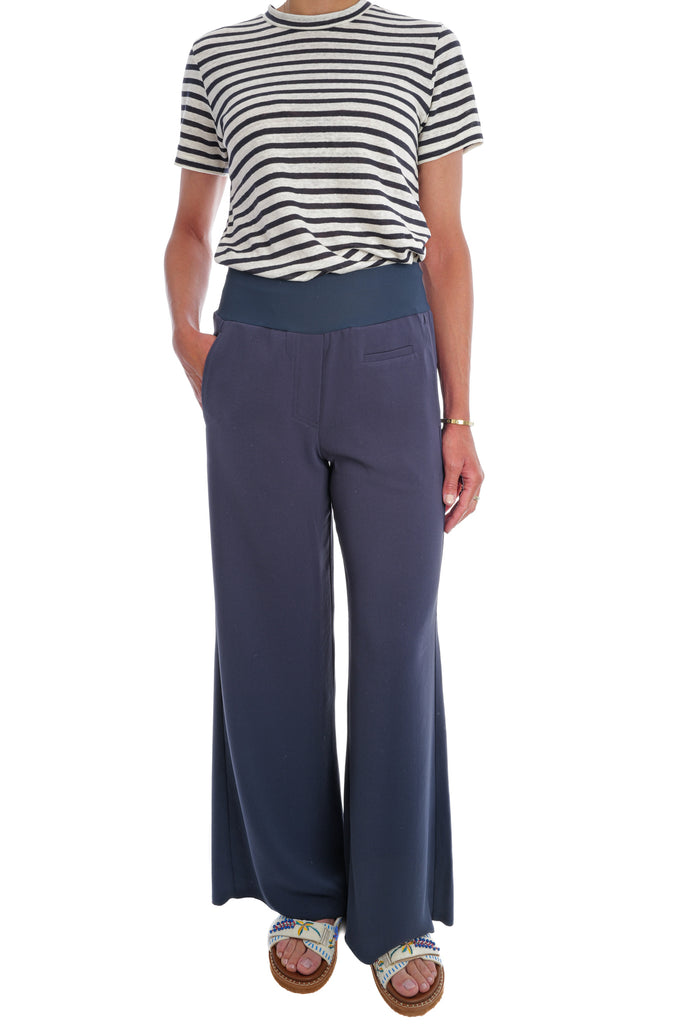Diese dunkelblaue Hose aus der neuen Ania Schierholt Kollektion kombiniert klassische Eleganz mit einem modernen Schnitt und hochwertigem Material, das für eine langanhaltende Form sorgt.