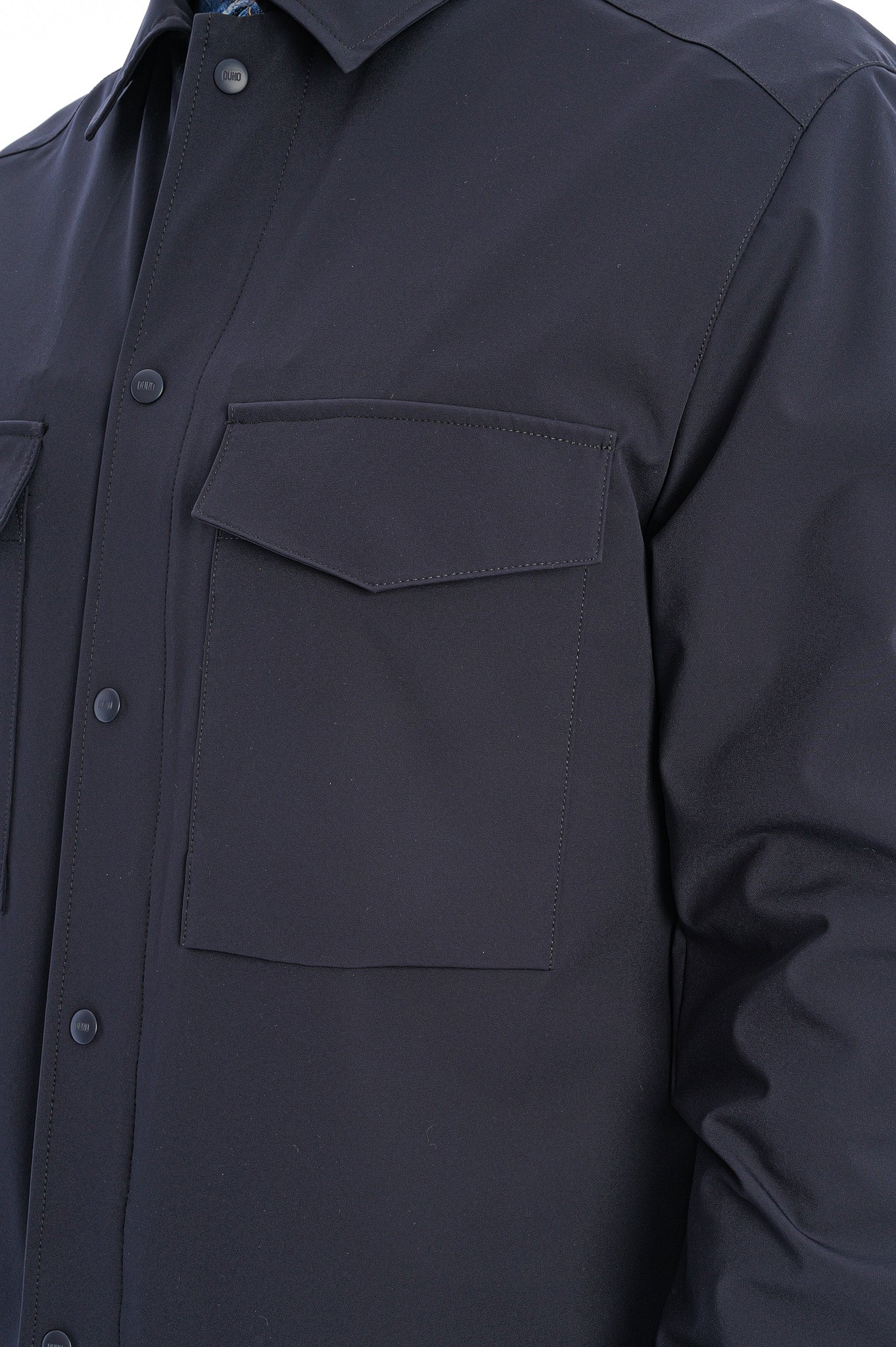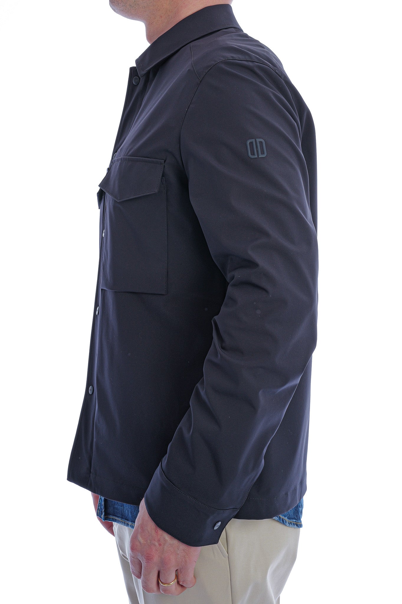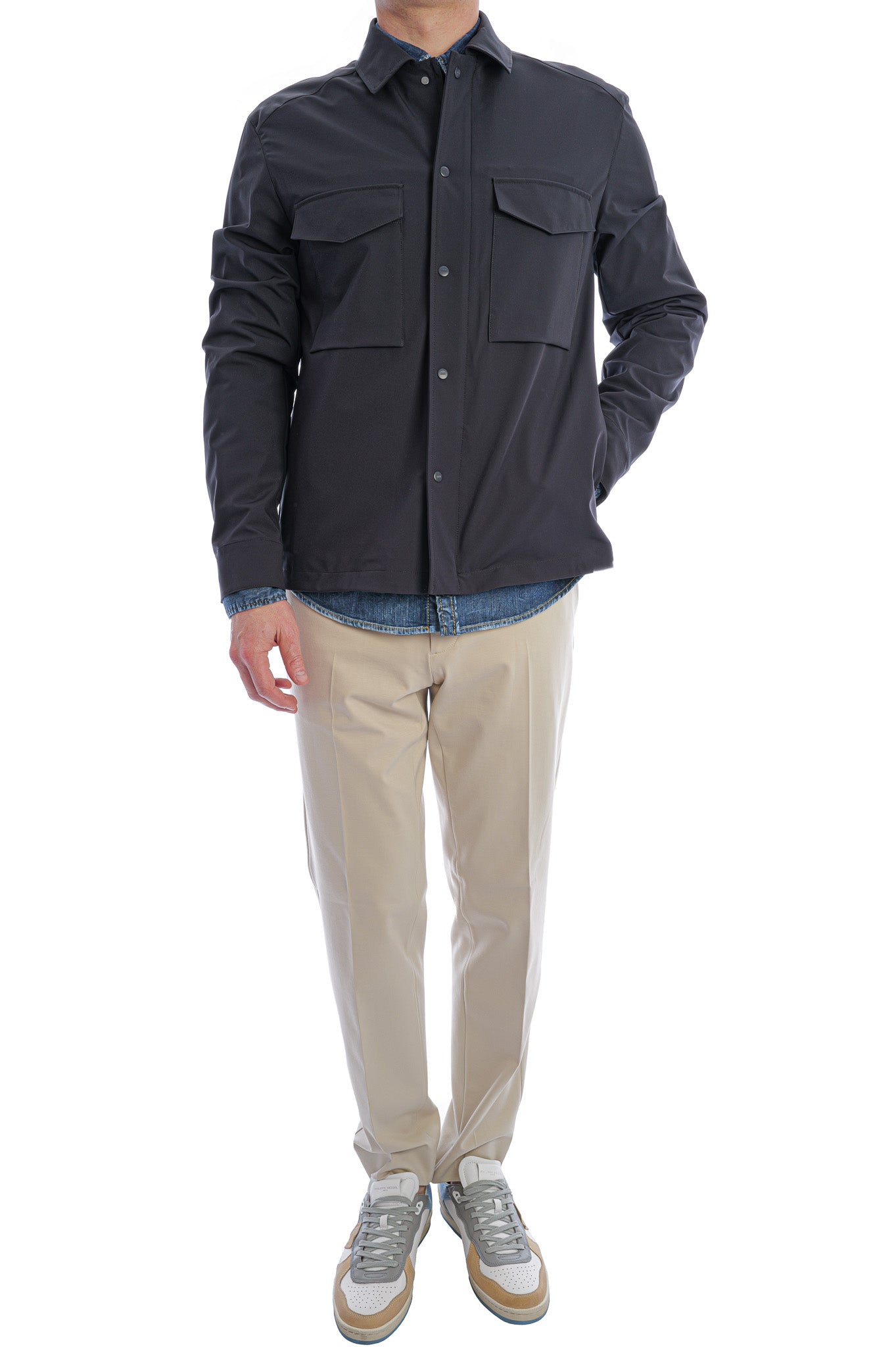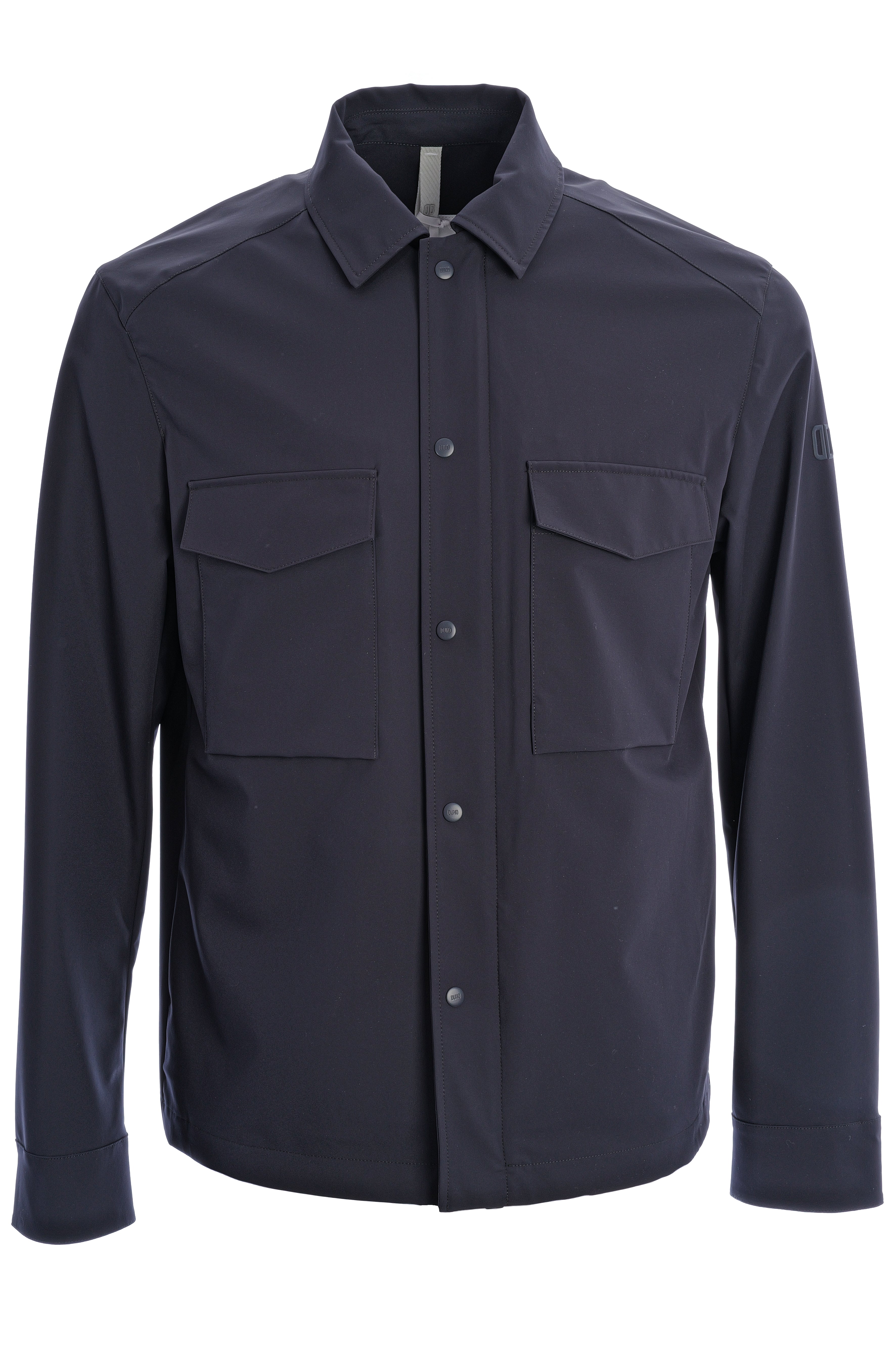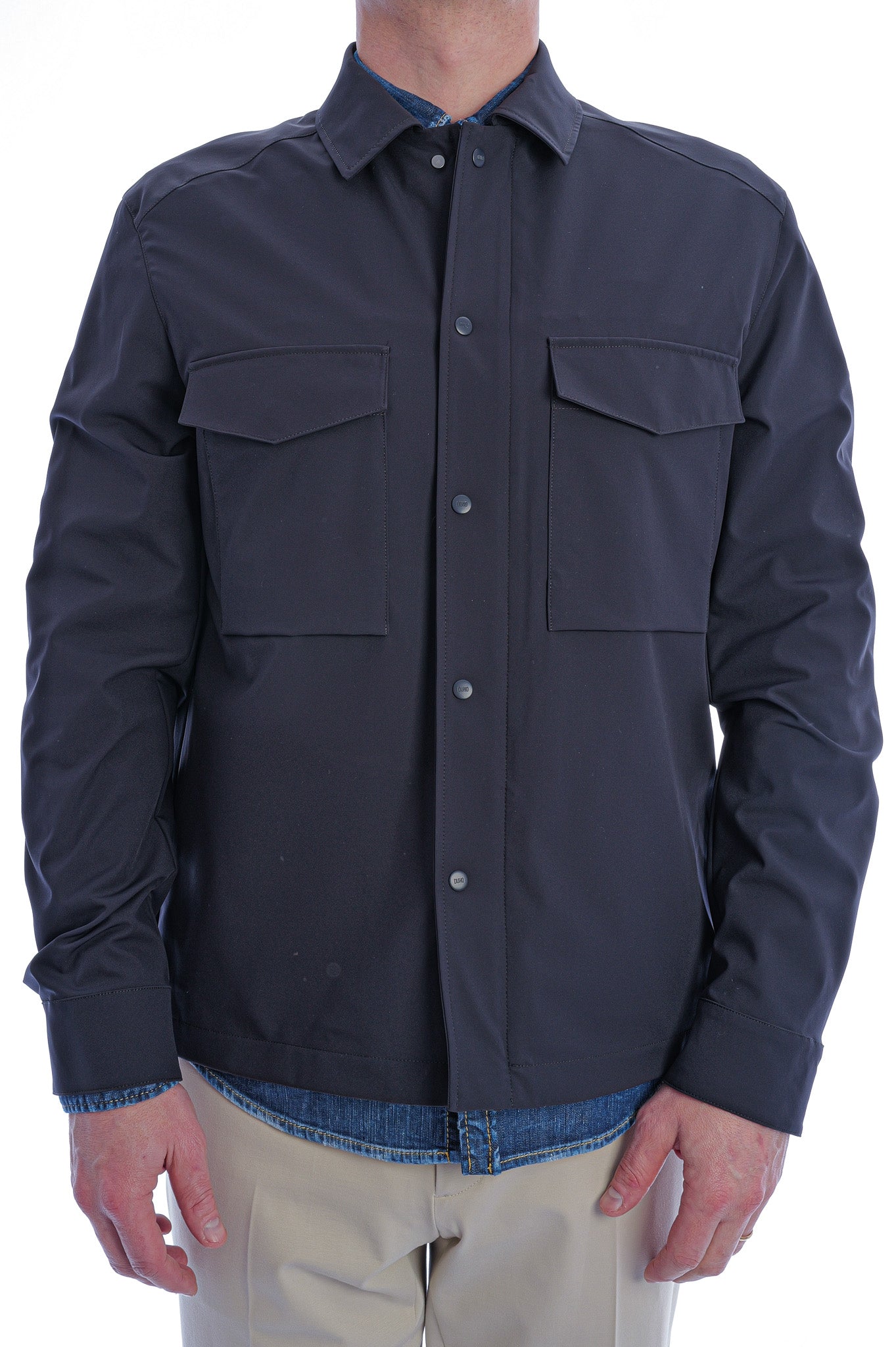 Diese minimalistische Overshirt-Jacke überzeugt mit klarer Silhouette, verdeckter Druckknopfleiste und zwei aufgesetzten Brusttaschen für einen modernen, funktionalen Look. Das hochwertige, glatt strukturierte Material in tiefem Navy verleiht ihr eine edle Anmutung und macht sie zum vielseitigen Essential für stilvolle Casual- und Business-Outfits.