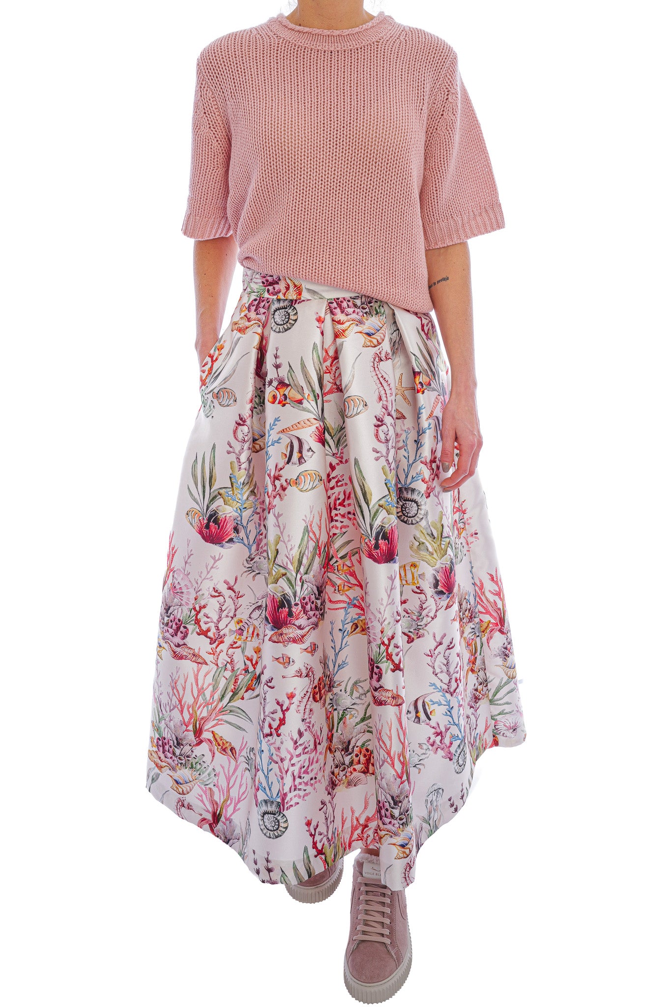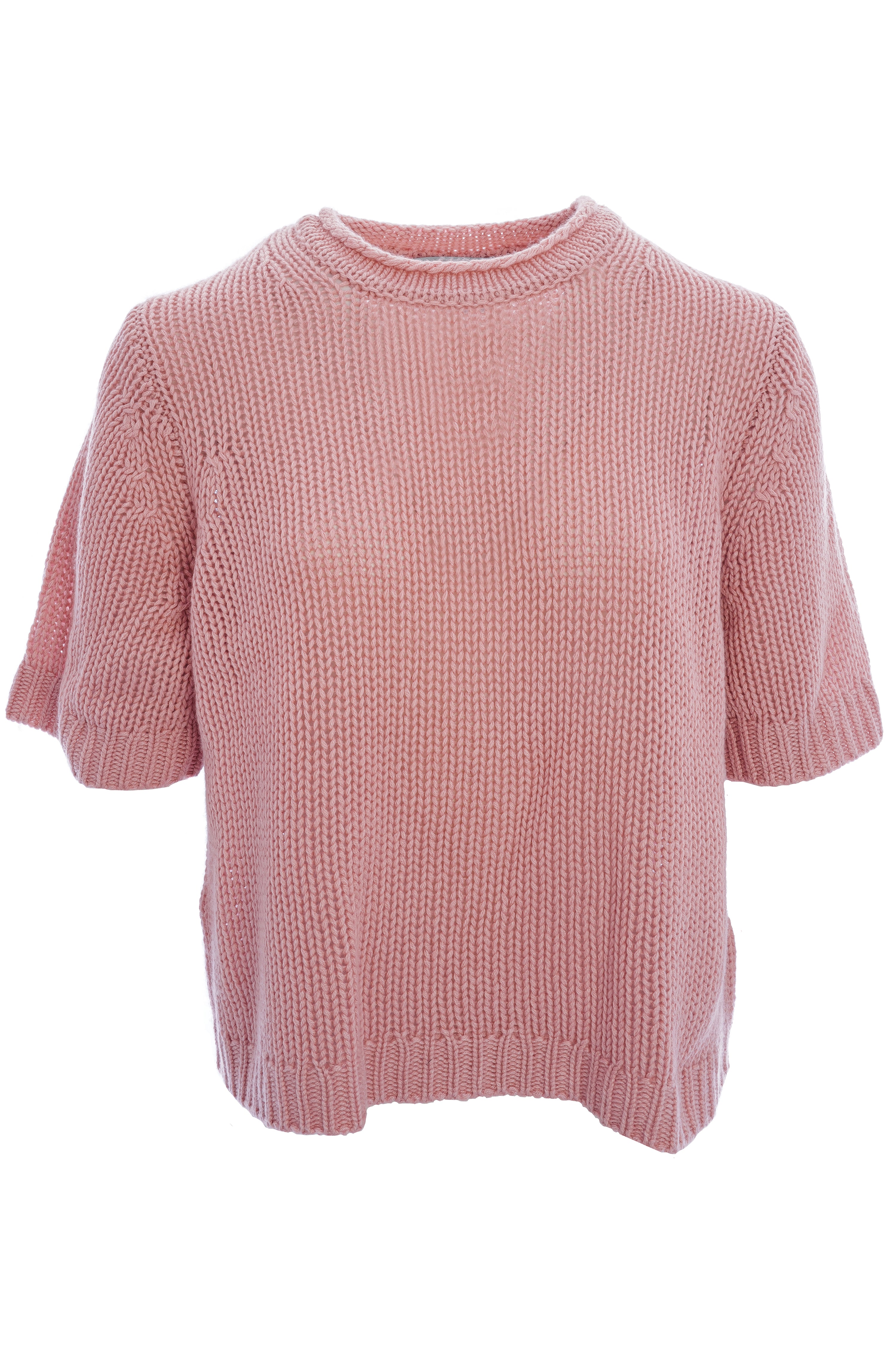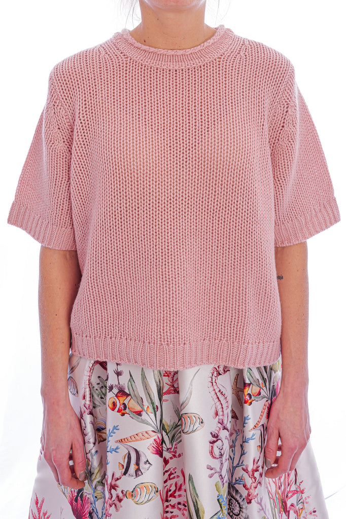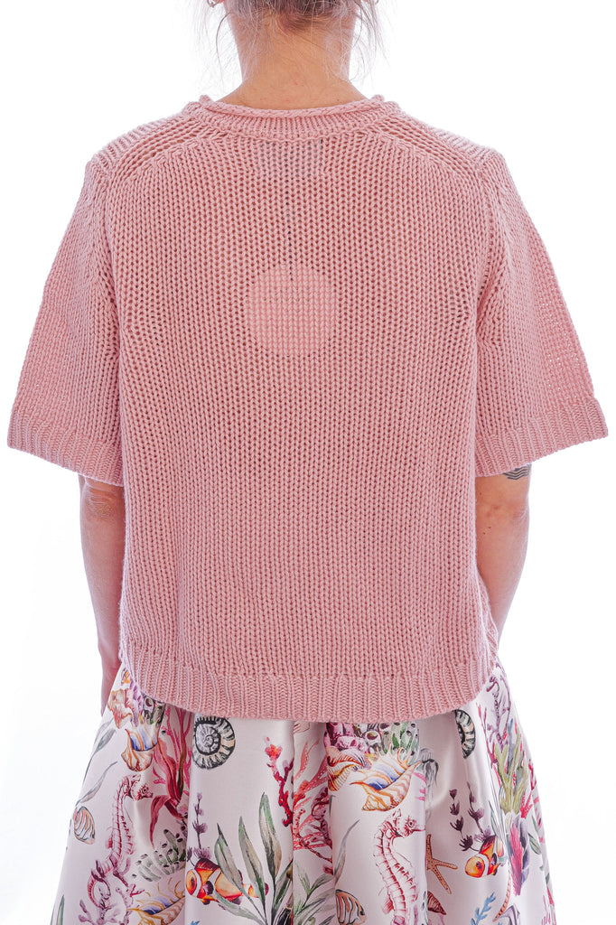 Der feine Glattstrick mit weichem Griff sorgt für angenehmen Tragekomfort und eine klare Optik. Kurze Ärmel und Rundhalsausschnitt mit Rollkante schaffen eine luftige, moderne Silhouette. Der gerade Saum rundet das Design sauber und minimalistisch ab.