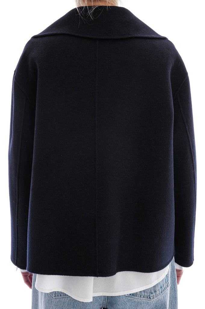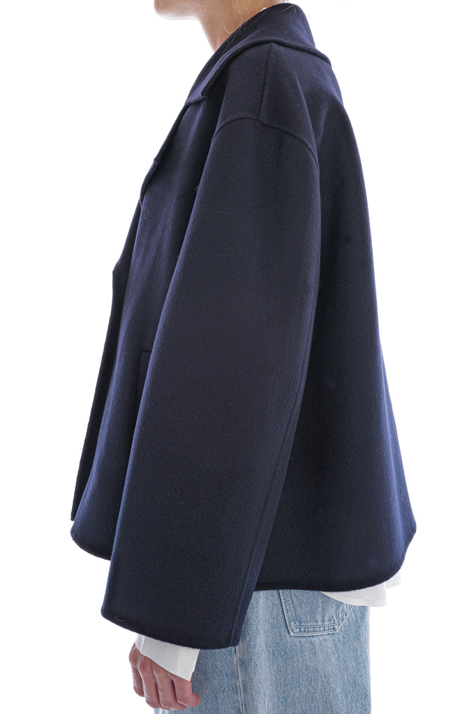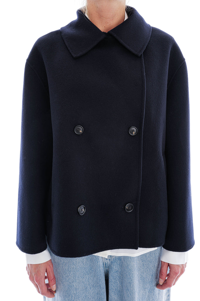Dank des feinen Stricks erhält sie eine fließende, ungefütterte Silhouette ohne feste Struktur. Die doppelt geknöpfte Vorderpartie mit edlen Hornknöpfen und das elegant fallende Revers verleihen dem Modell einen zeitlos-luxuriösen Charakter.