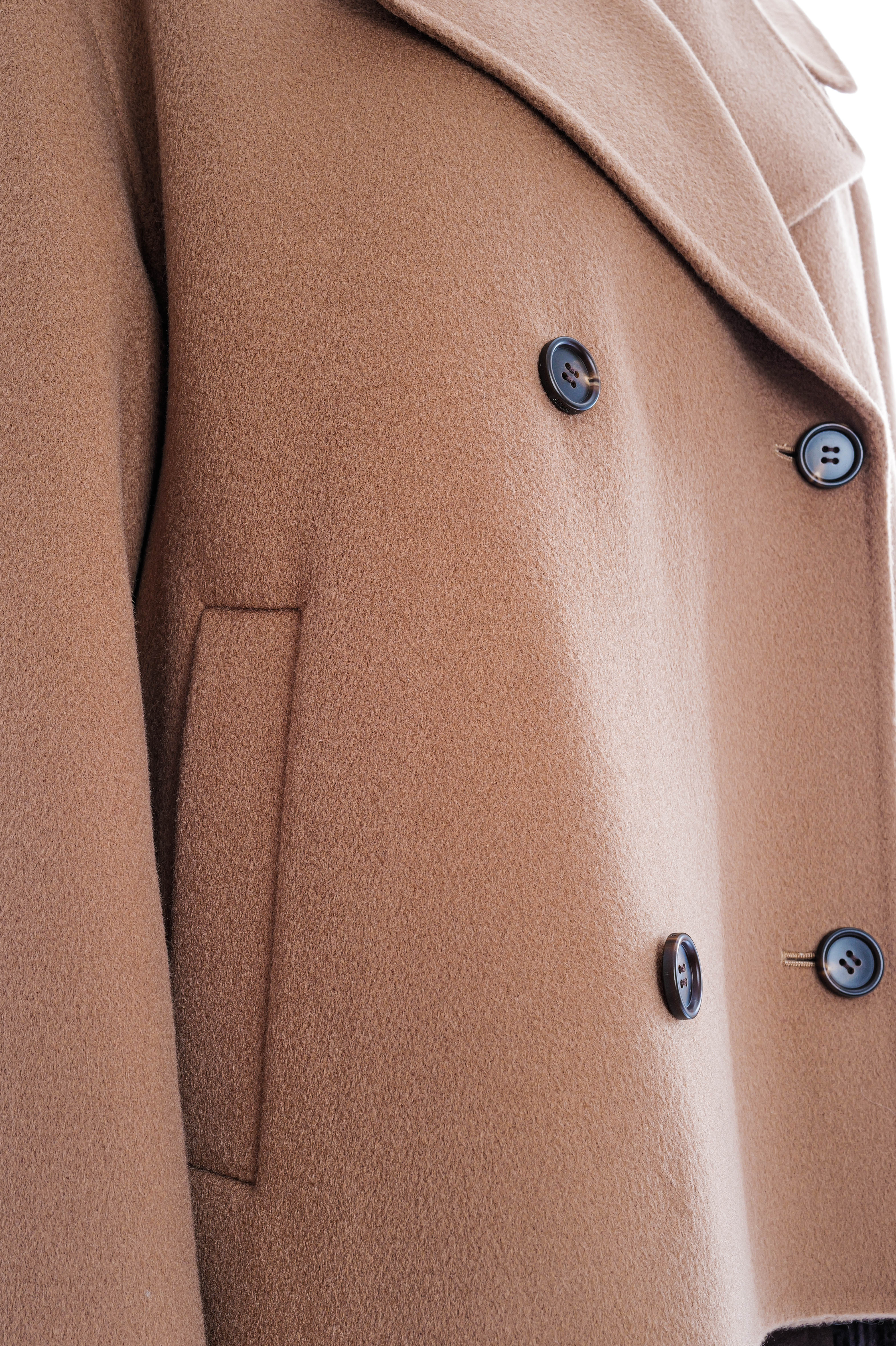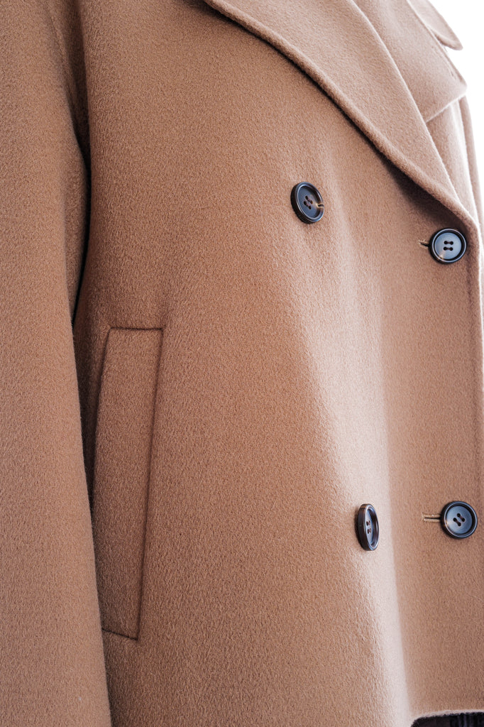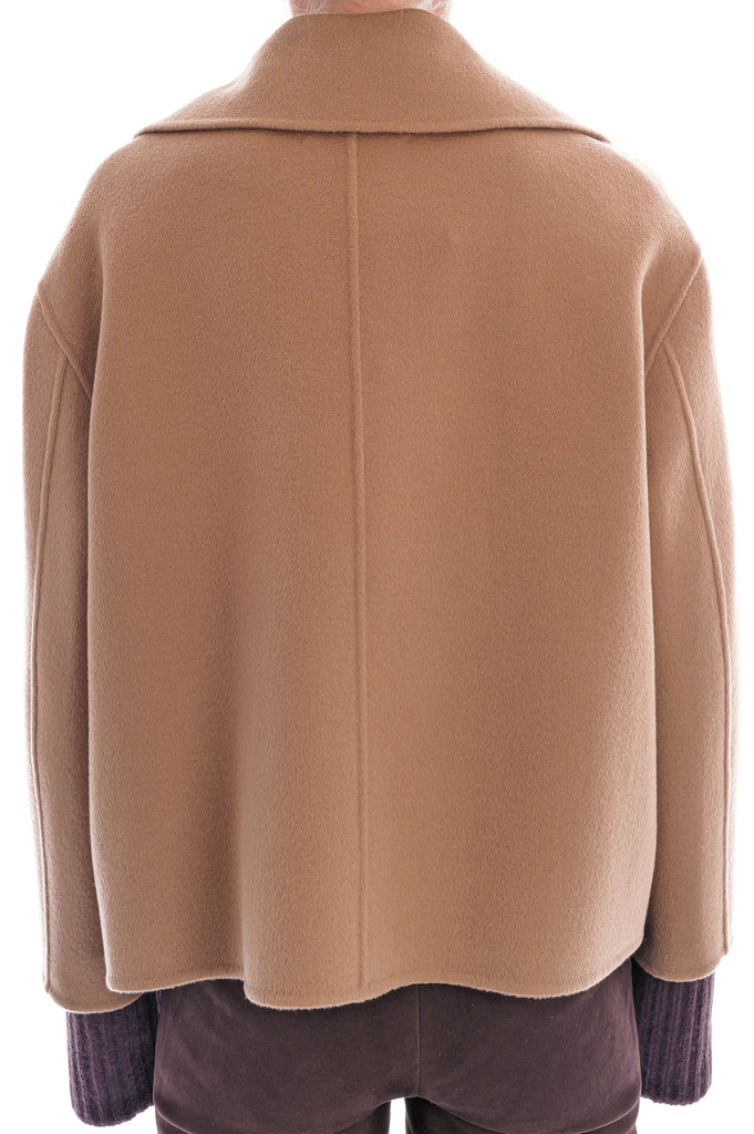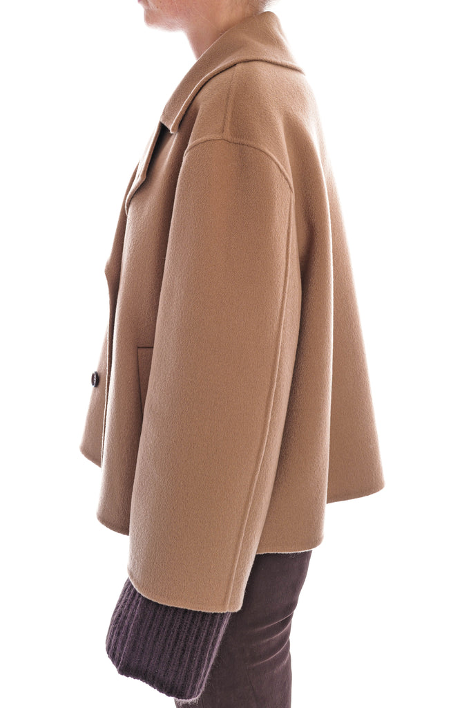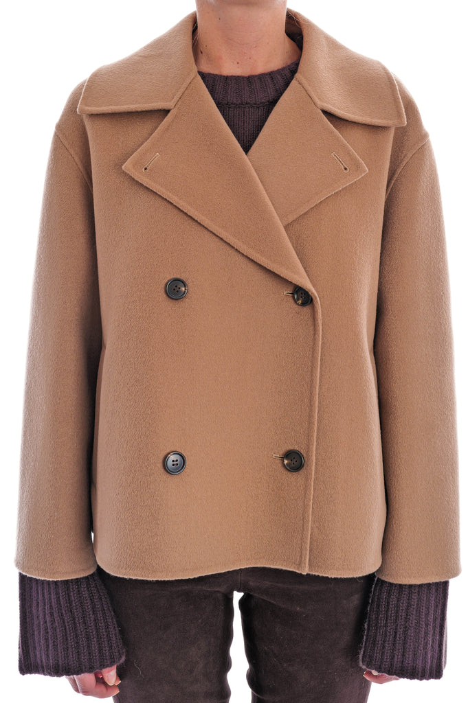 Dank des feinen Stricks erhält sie eine fließende, ungefütterte Silhouette ohne feste Struktur. Die doppelt geknöpfte Vorderpartie mit edlen Hornknöpfen und das elegant fallende Revers verleihen dem Modell einen zeitlos-luxuriösen Charakter.