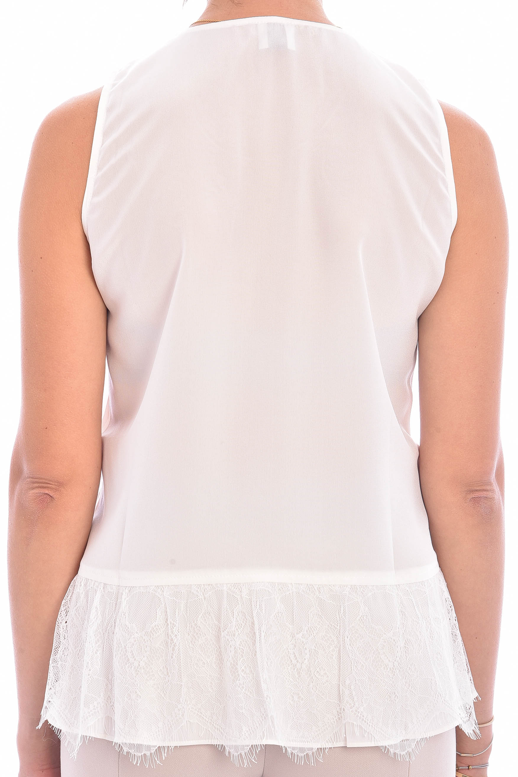 Beautiful silk top with lace edge in a classic white. This model can be easily combined and is an absolute favorite item in the wardrobe.