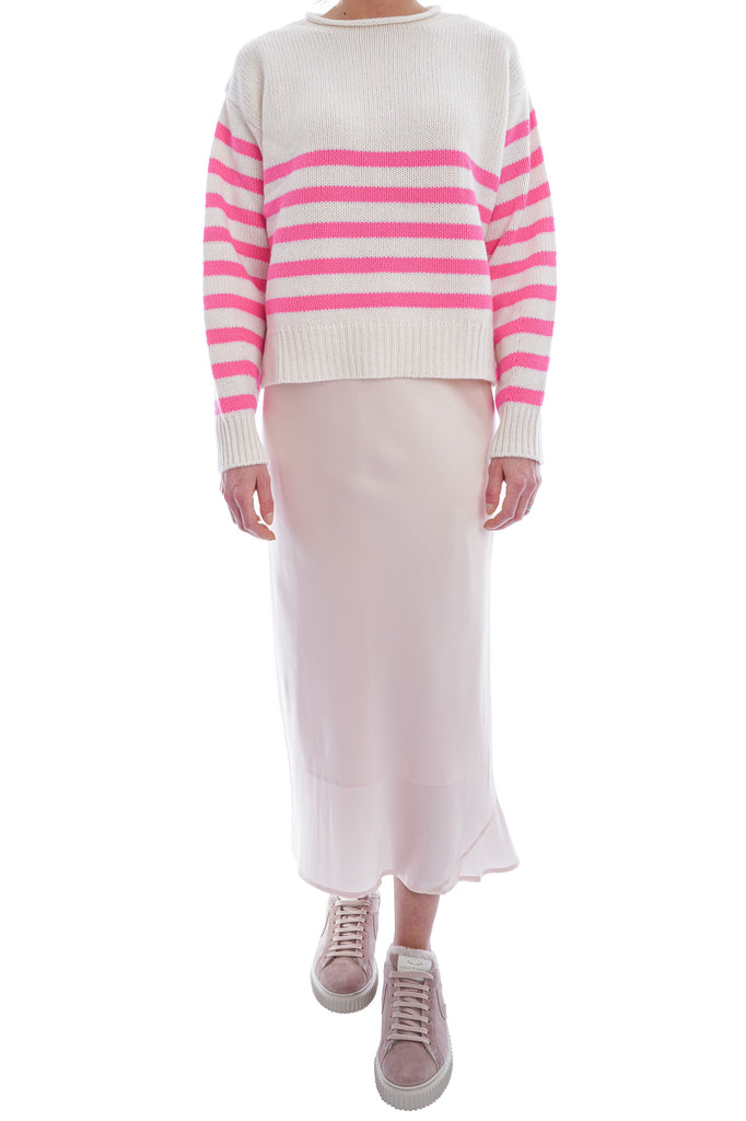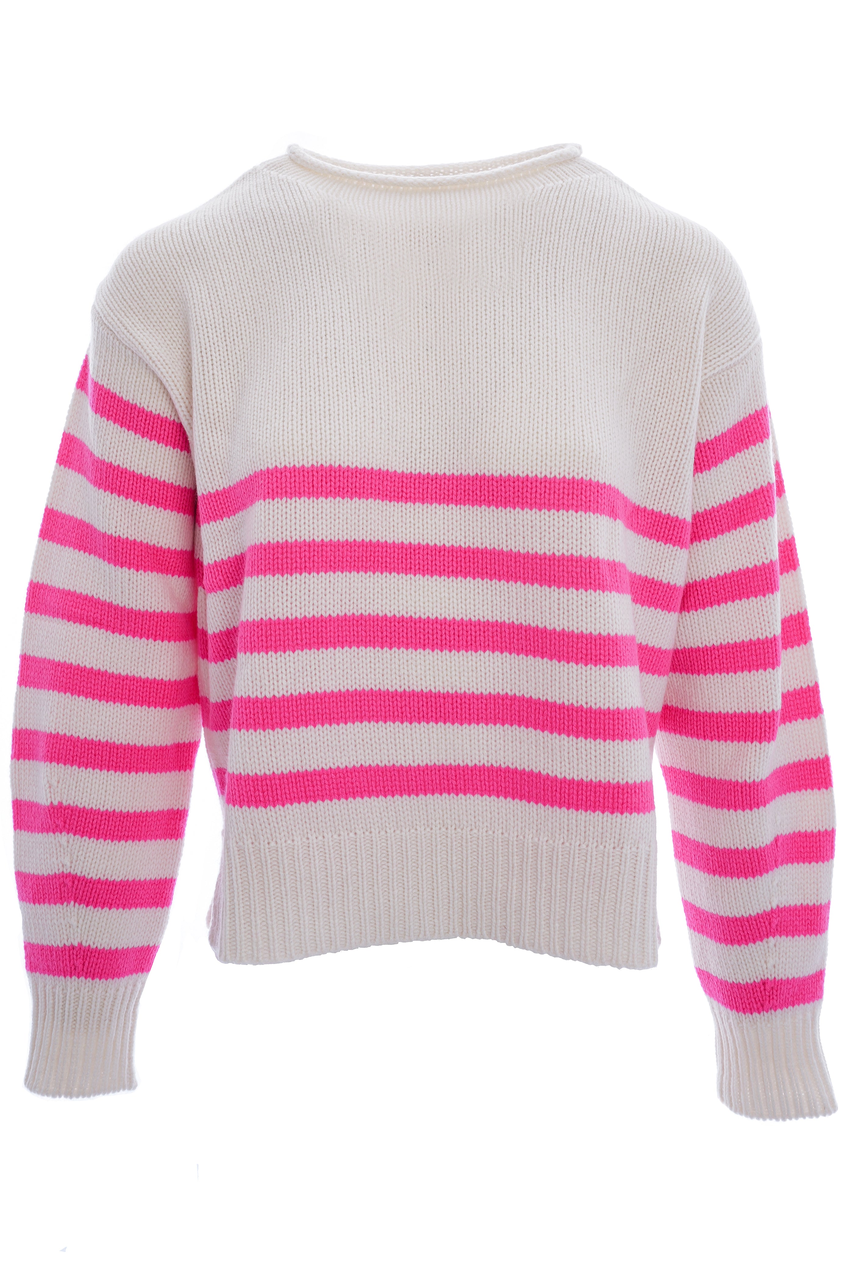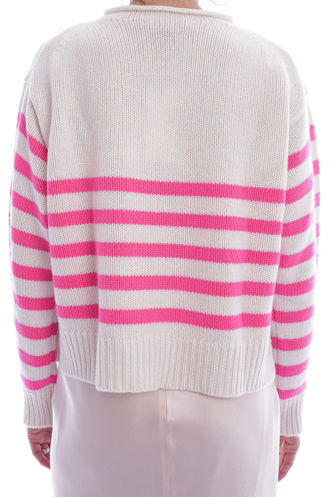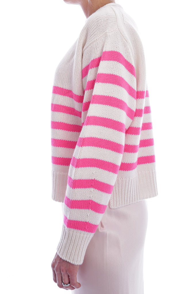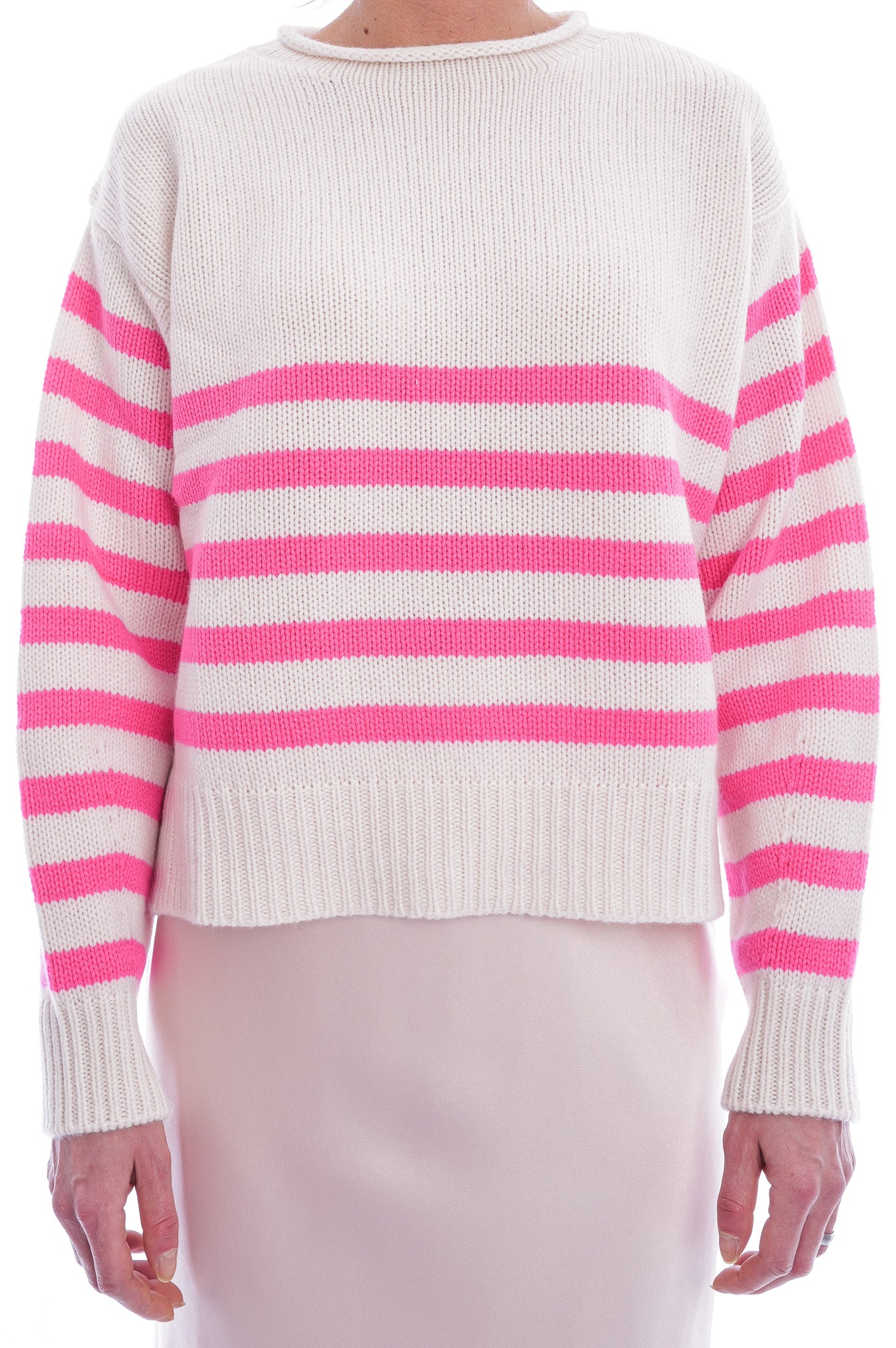 Der Kaschmirpullover besticht durch luxuriöse Qualität und außergewöhnlich weiche Haptik. Streifen in Neon-Pink setzen einen modernen, auffälligen Akzent. Ein hochwertiges Statement-Piece für stilbewusste Looks.