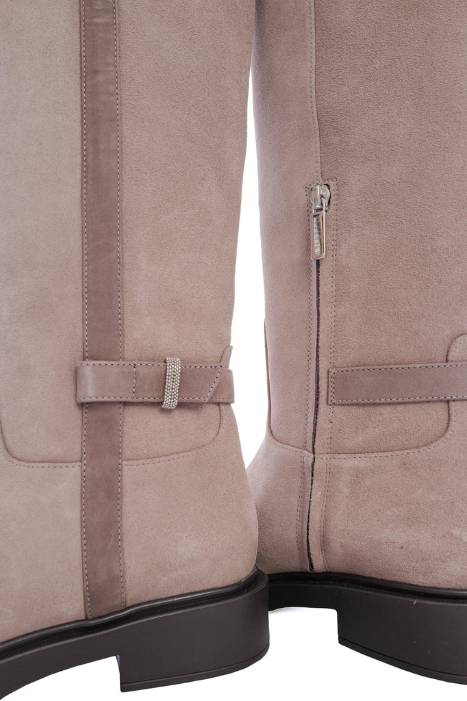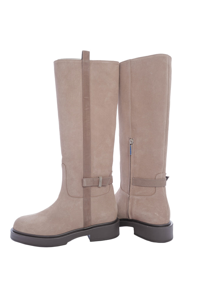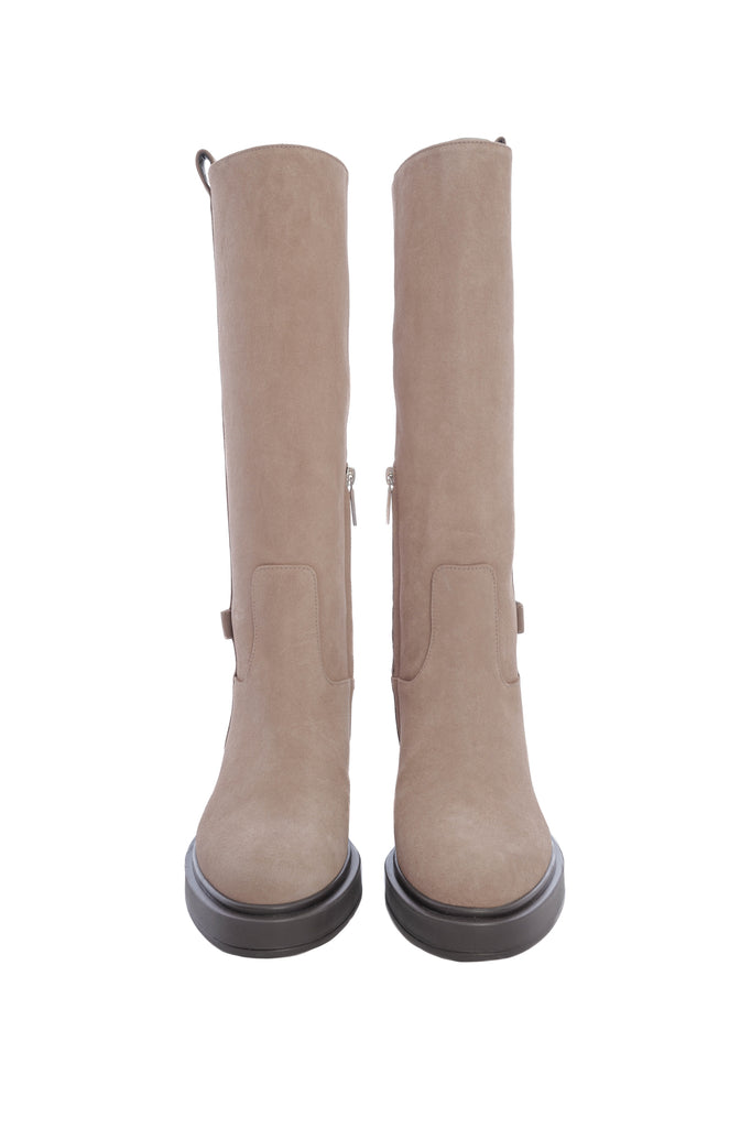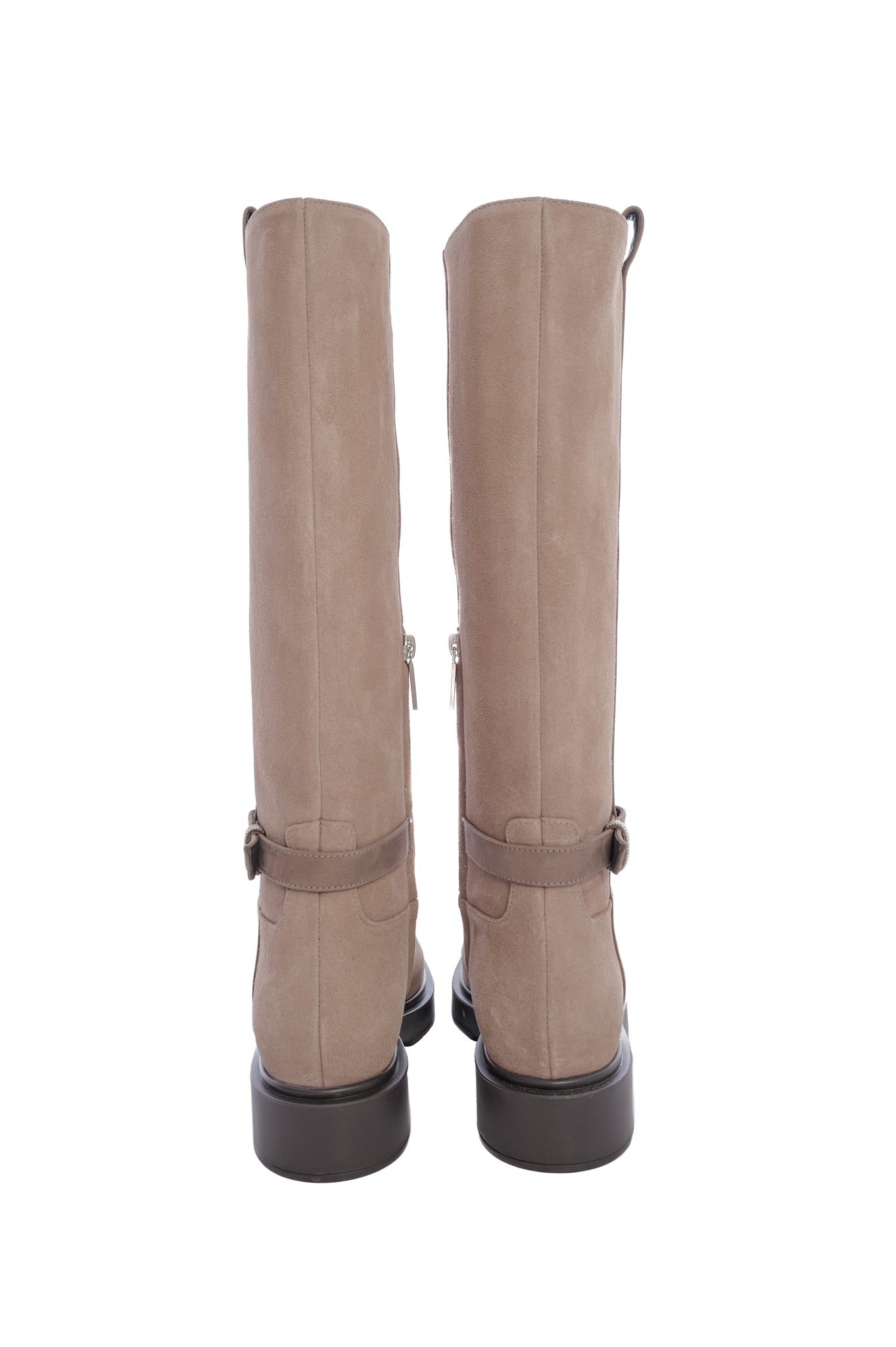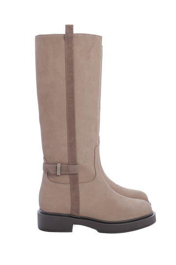 Die Knee-High Tube Boots aus feinem Wildleder bestechen durch Nubuk-Ledereinsätze, die das Design stilvoll akzentuieren. Mit Pull-Tab und ikonischem Punto-Luce-Detail, leichter, flexibler Gummisohle für ganztägigen Komfort und praktischem Seitenreißverschluss vereinen sie femininen Charme mit modernem Charakter – ideal zu Hosen, Röcken oder Kleidern.