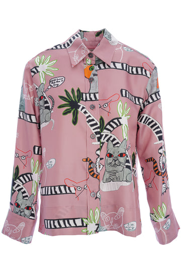 Seidenbluse mit Katzenmuster