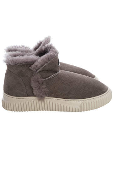 Diese gemütlichen Boots vereinen lässigen Sneaker-Charakter mit kuscheliger Wärme. Das Obermaterial aus softem Veloursleder wird durch eine weiche Innenfütterung aus Fell ergänzt, die für ein angenehmes Tragegefühl an kalten Tagen sorgt. Die markante Gummisohle mit griffigem Profil verleiht dem Modell einen modernen Look und bietet zugleich sicheren Halt. Perfekt für entspannte Winter-Outfits mit urbanem Touch.