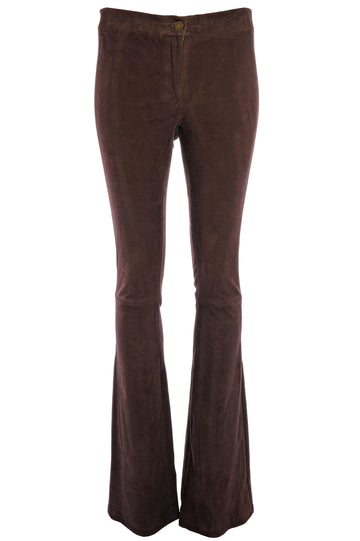 Velourslederhose mit modisch ausgestelltem Bein und elastischem Bund für maximalen Komfort im Alltag. Abgerundet wird das Design durch Paspeltaschen hinten und einen verdeckten Reißverschluss für einen cleanen Look.