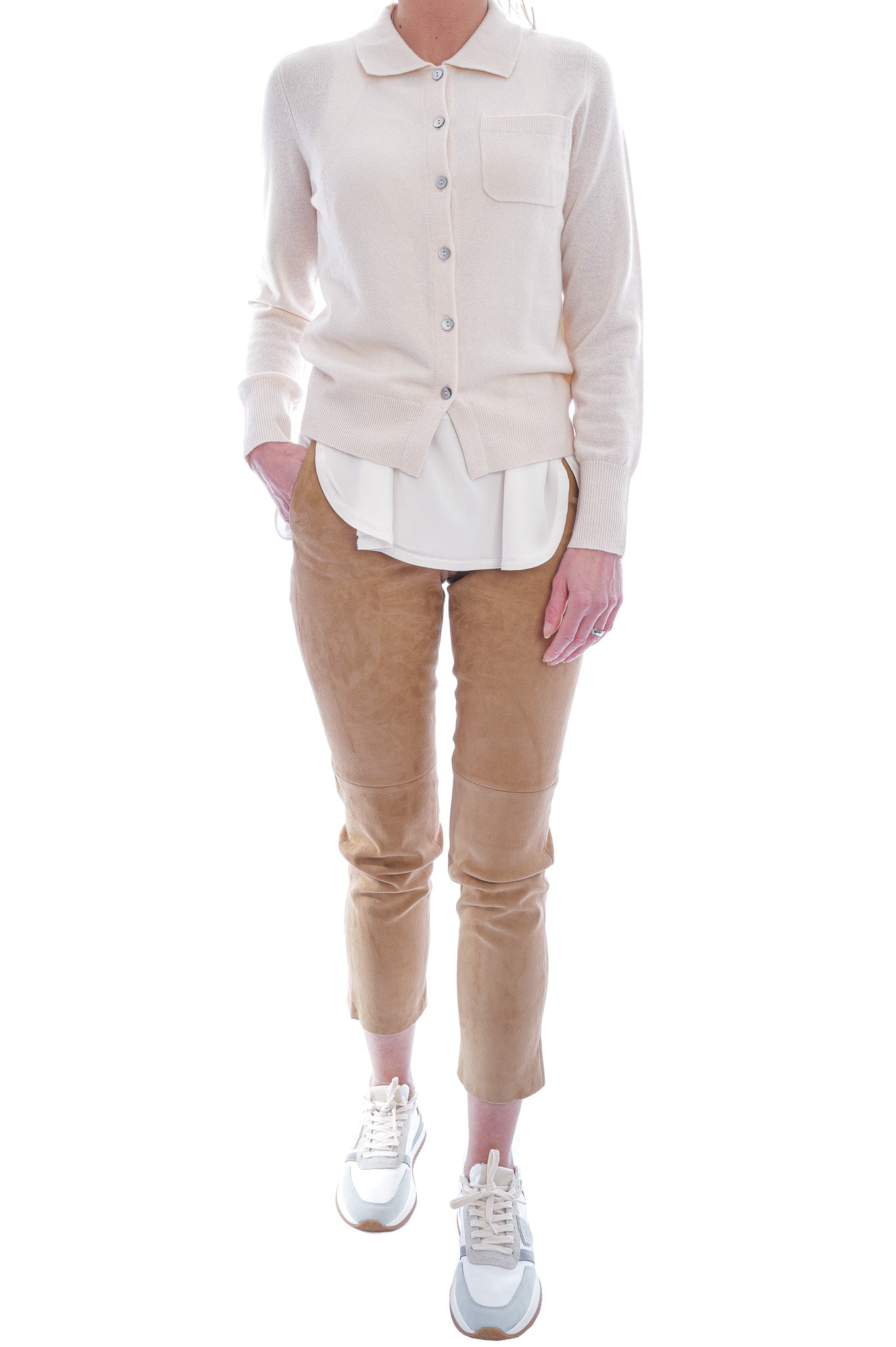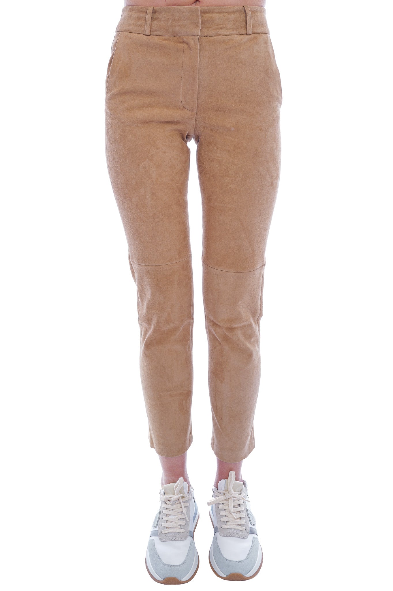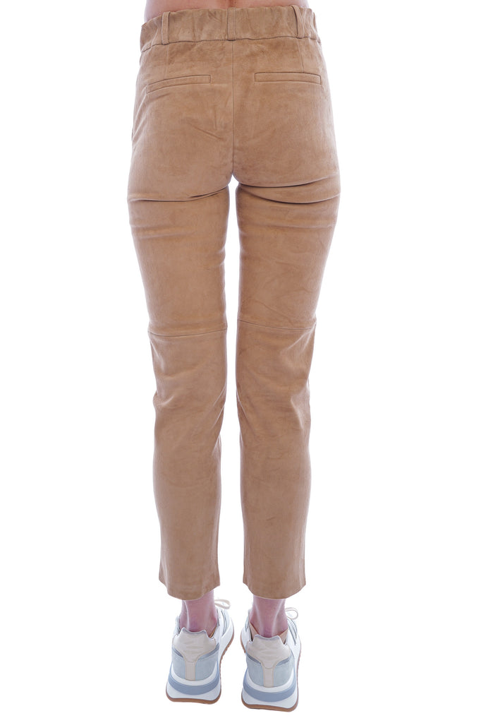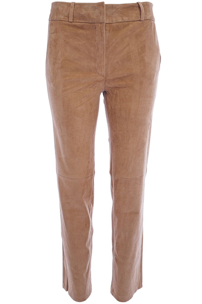 Diese Slim-Fit-Pantalonhose aus Wildleder hat eine normale Taille und ist leicht verkürzt. Die schmal zulaufenden Beine sorgen für eine schlanke Silhouette, während das Stretchmaterial für eine bequeme Passform sorgt.